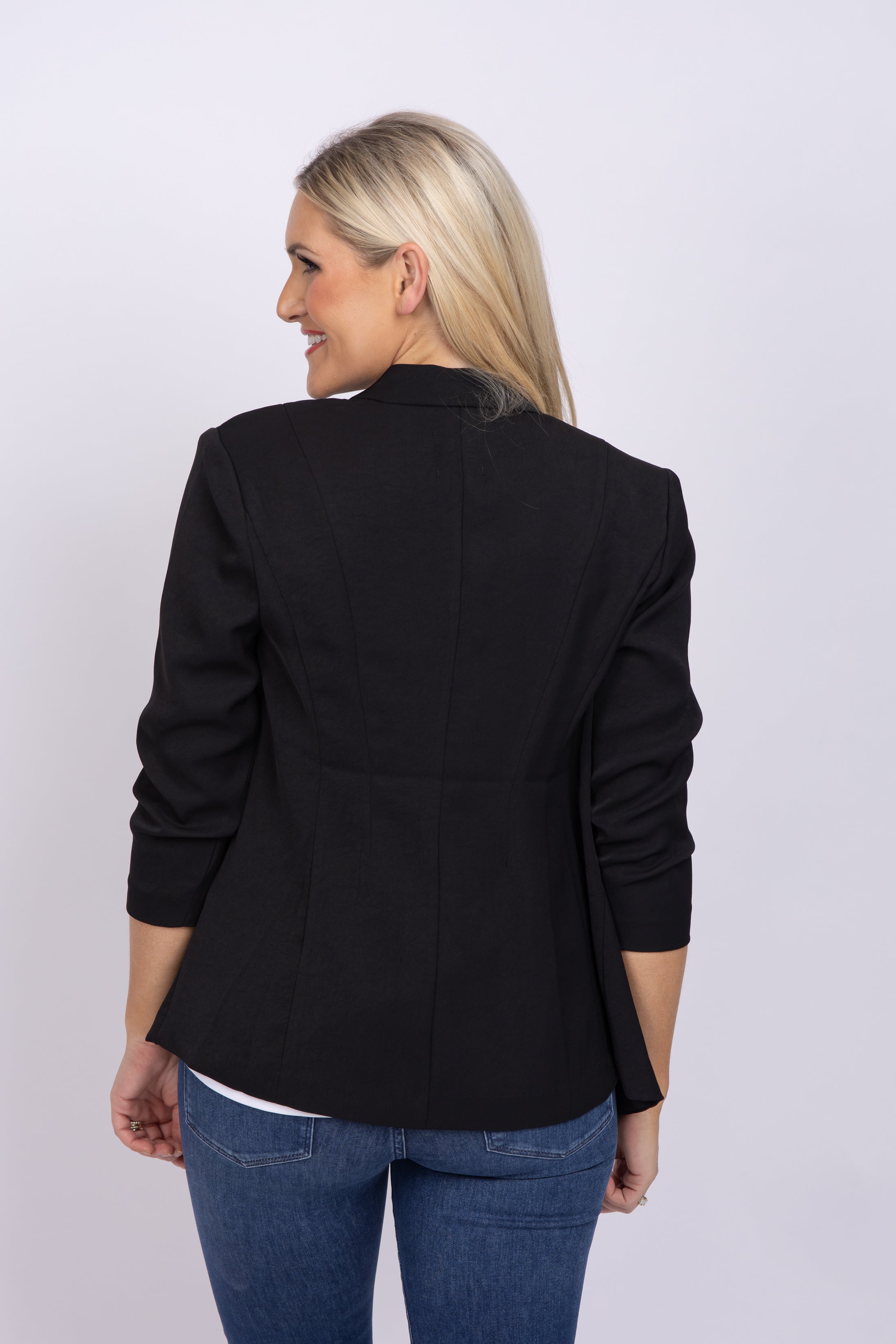 The Nic+Zoe Smart Look Blazer In Black Onyx is the perfect combination of style and comfort. With its lightweight construction and 3/4 bracelet sleeves, you can stay stylishly on-trend while enjoying the regular fit and open front that offers easy wardrobe changes! Experience fashion and ease combined.