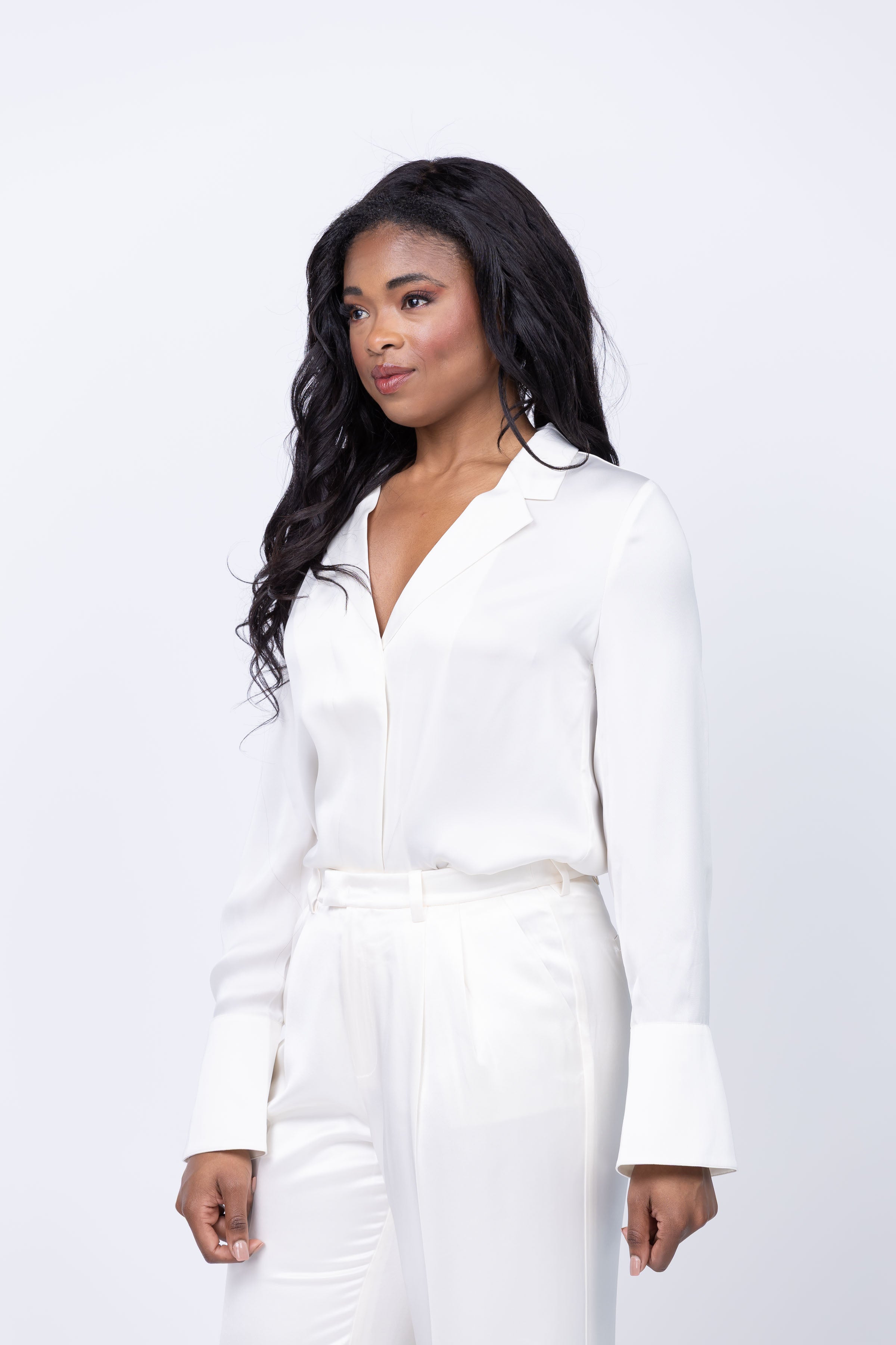 Introducing the must-have top for any fashionista. The Favorite Daughter Lily Top is crafted from luxurious satin, creating a delicate and timeless piece. With a pointed lapel collar and exaggerated cuffs, this top offers a modern twist on a classic style. (It might just become your new go-to!)