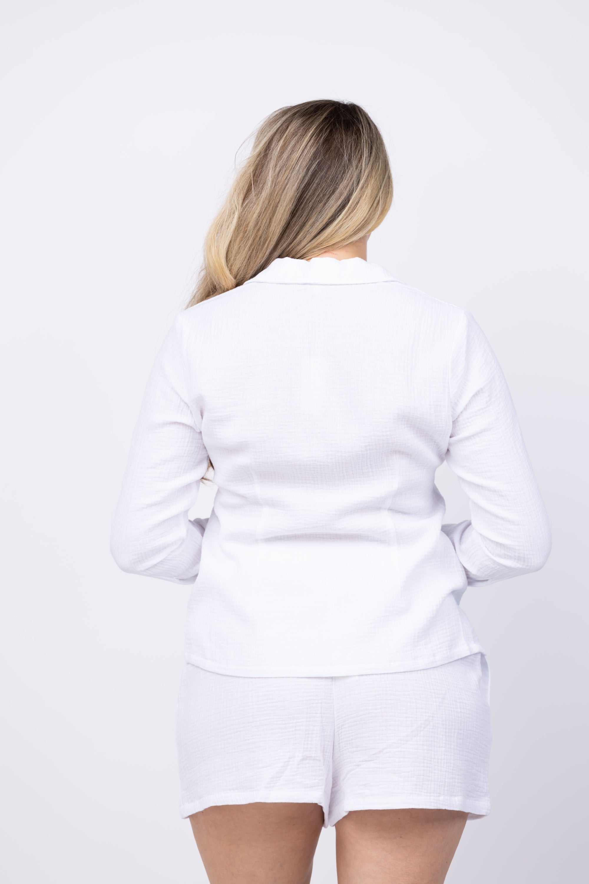 The Tied and True Top in Bright White is crafted from lightweight cotton gauze for breathable comfort and effortless style. Its relaxed fit, pointed collar, and long sleeves create a versatile silhouette, while the front ties add a charming touch. Perfect for layering or wearing on its own, this top easily elevates any outfit, making it your go-to piece for a fresh, easygoing look all season long.