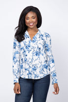 The L'Agence Holly Long Sleeve Blouse is a must-have for every wardrobe. With its timeless and elegant design, this polished button down adds a touch of sophistication to any outfit. The white and blue baroque swirl print adds a feminine and playful touch, perfect for elevating your weekday look.