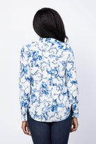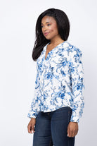 L'Agence Holly Long Sleeve Blouse in White/Blue Baroque Swirl