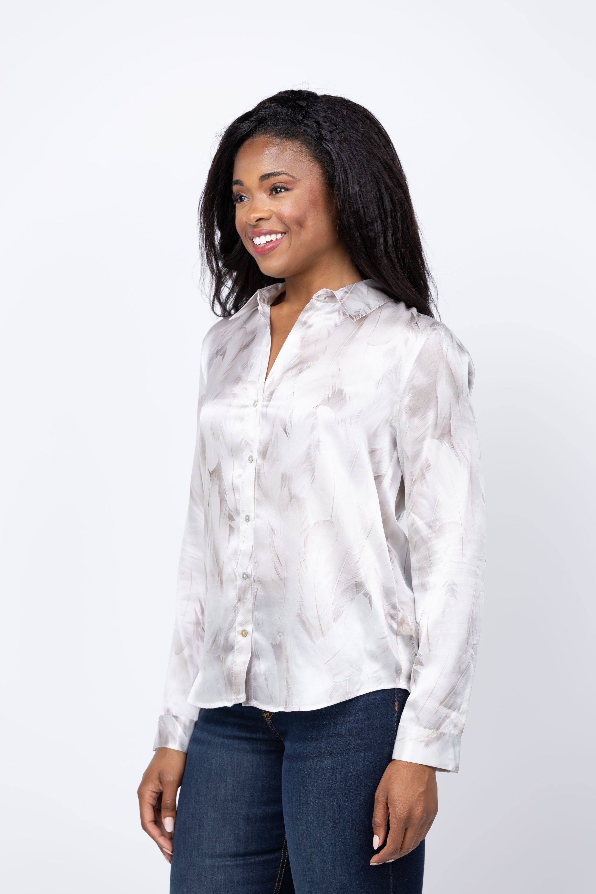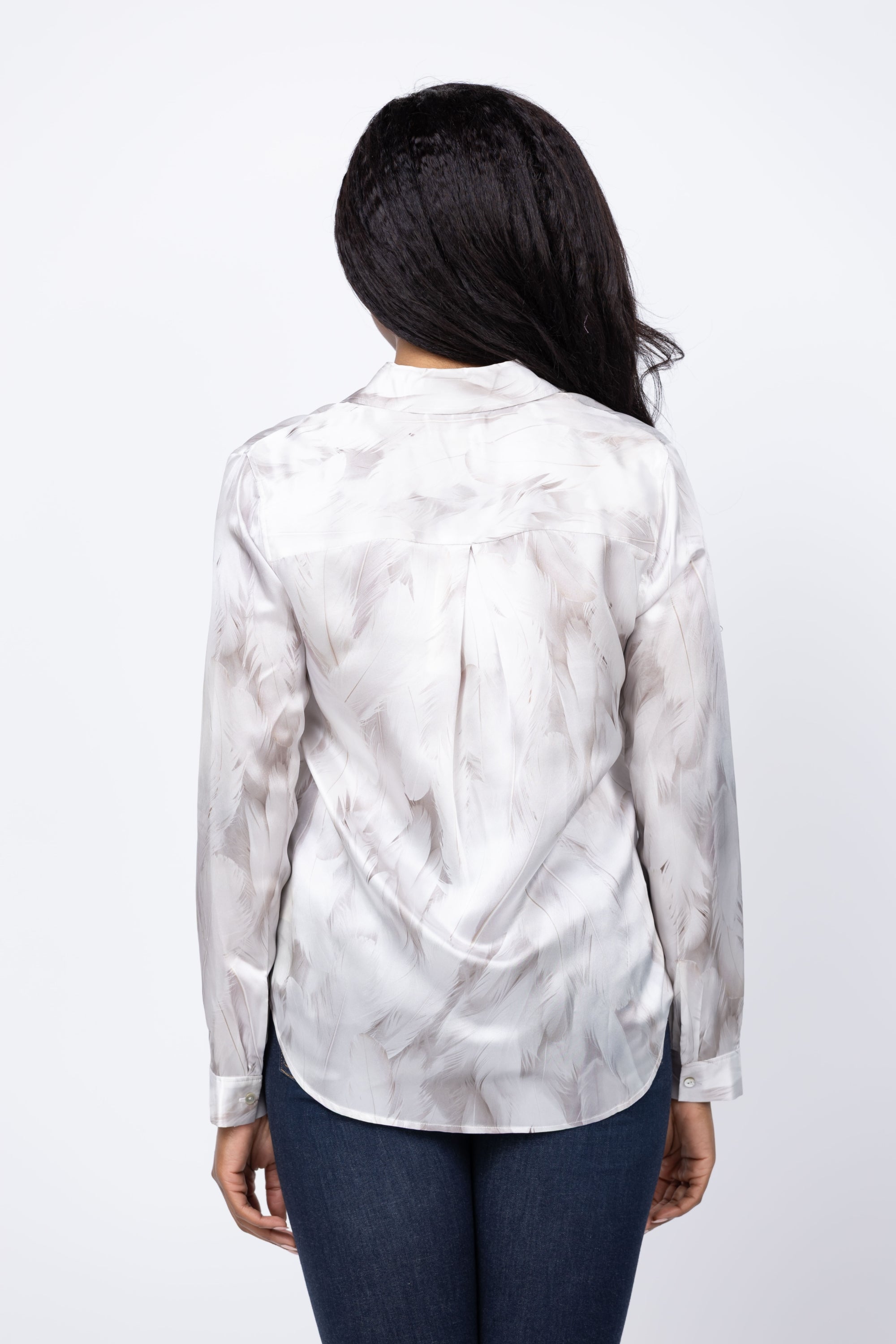 L'Agence Tyler Long Sleeve Blouse in White Feather Print
