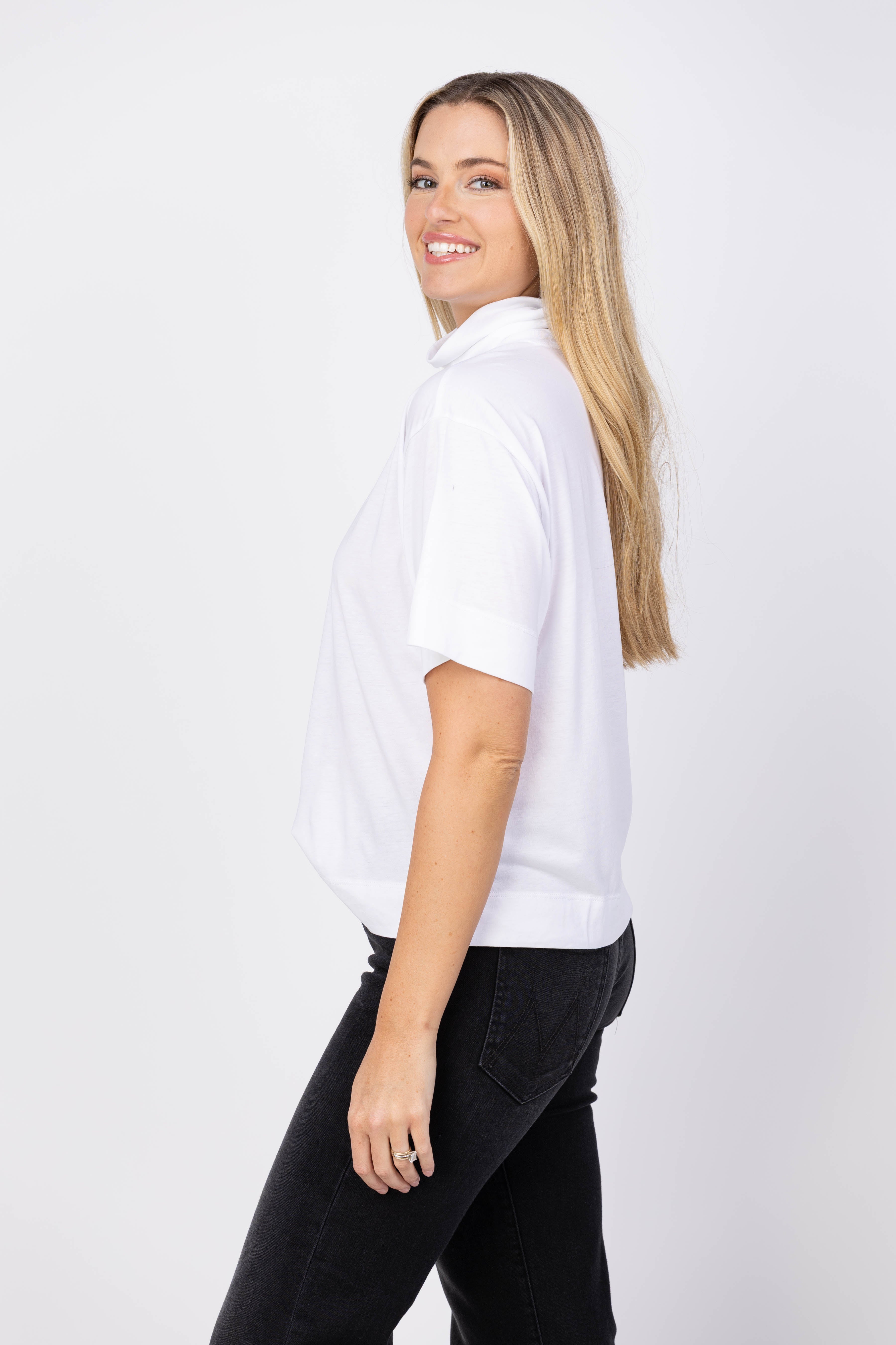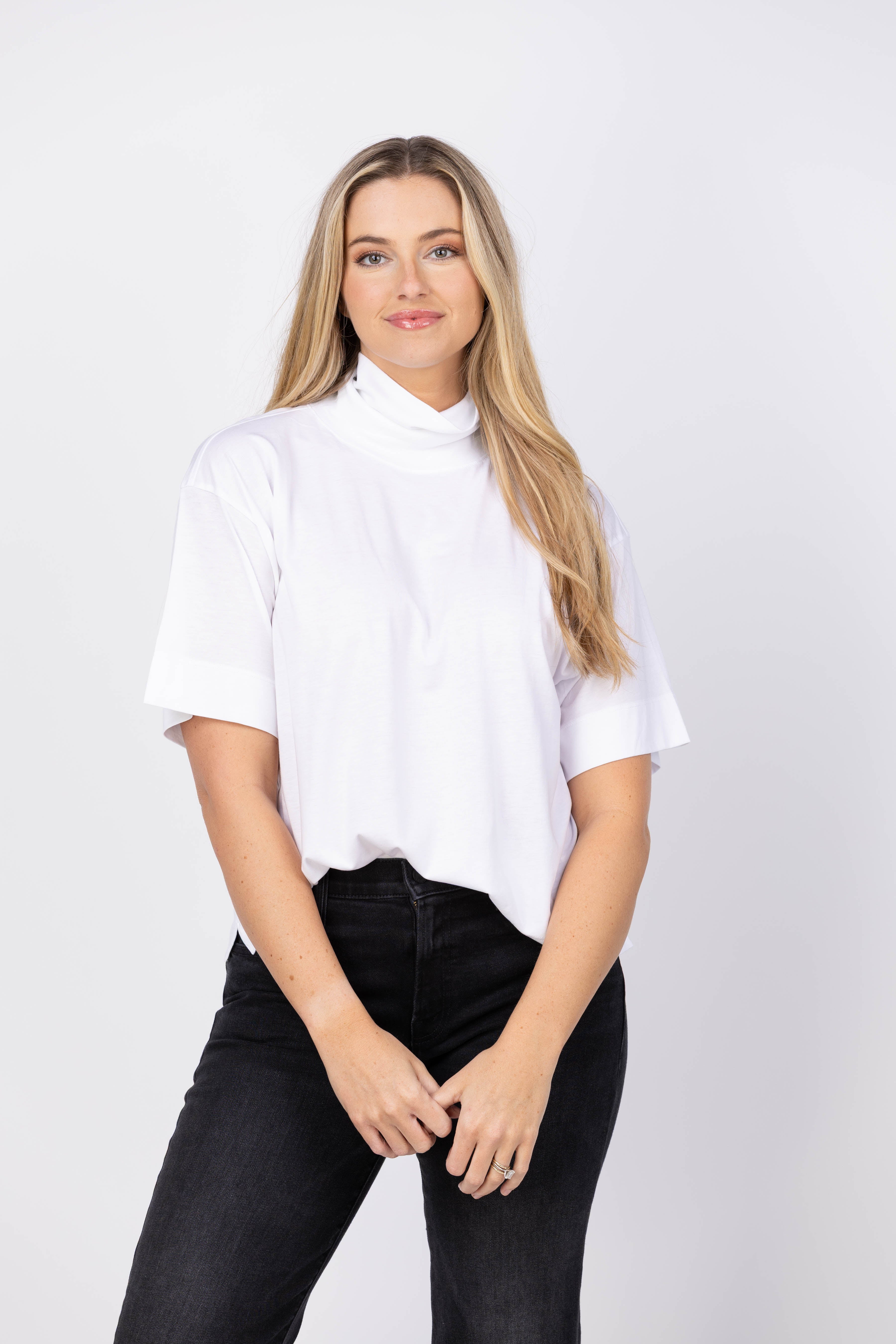 Get the best of both worlds with the NATION LTD Fable Turtleneck Tee! This versatile top combines the classic and sophisticated look of a turtleneck with the comfort and style of an oversized tee. Fashionable and functional, it's a must-have addition to your wardrobe. Available in Jet Black.
