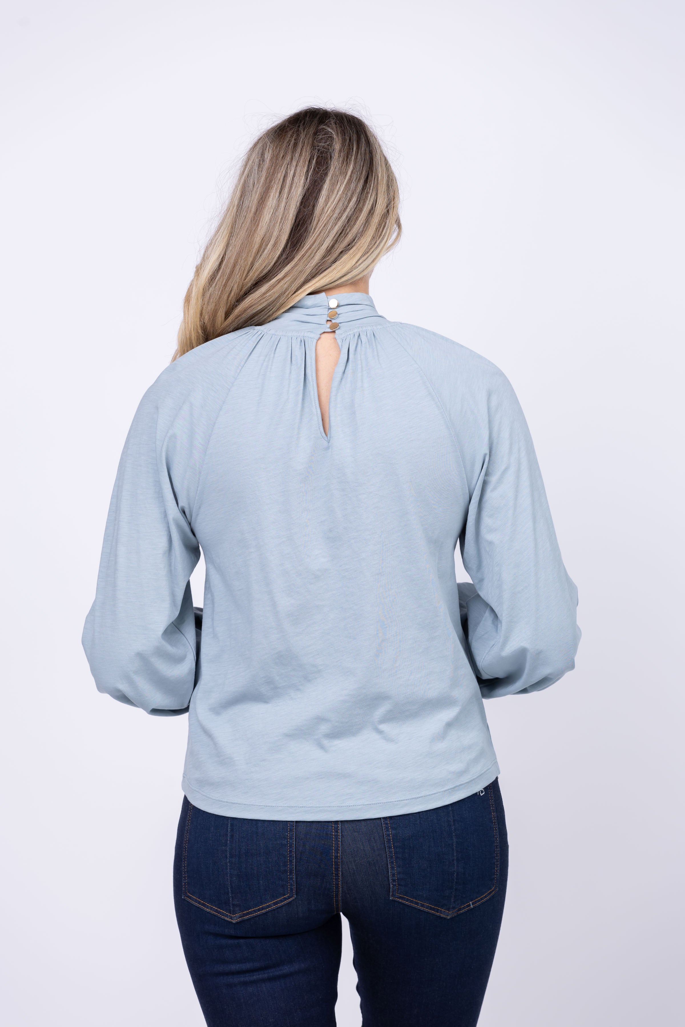 Nation Ltd Rosalie Keyhole Blouse in Sea Frost