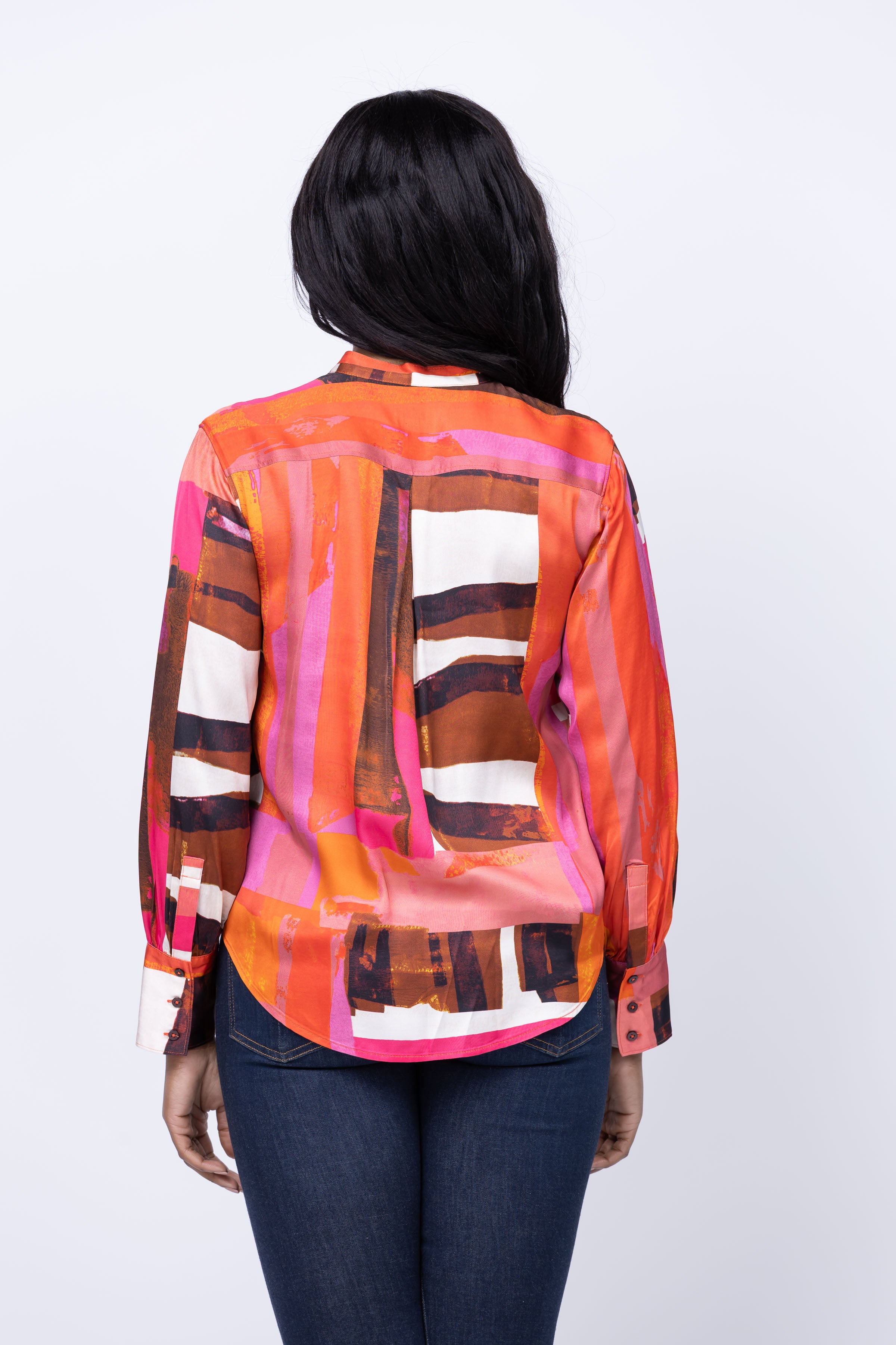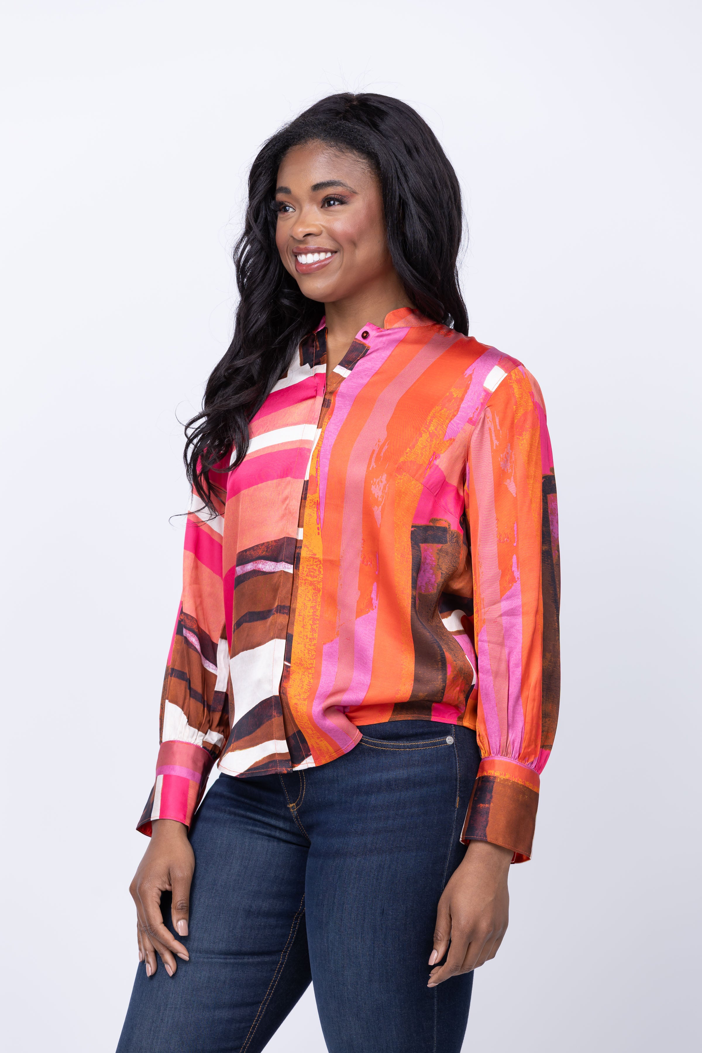 Nic + Zoe Artful Blocks Glossy Blouse in Orange Multi