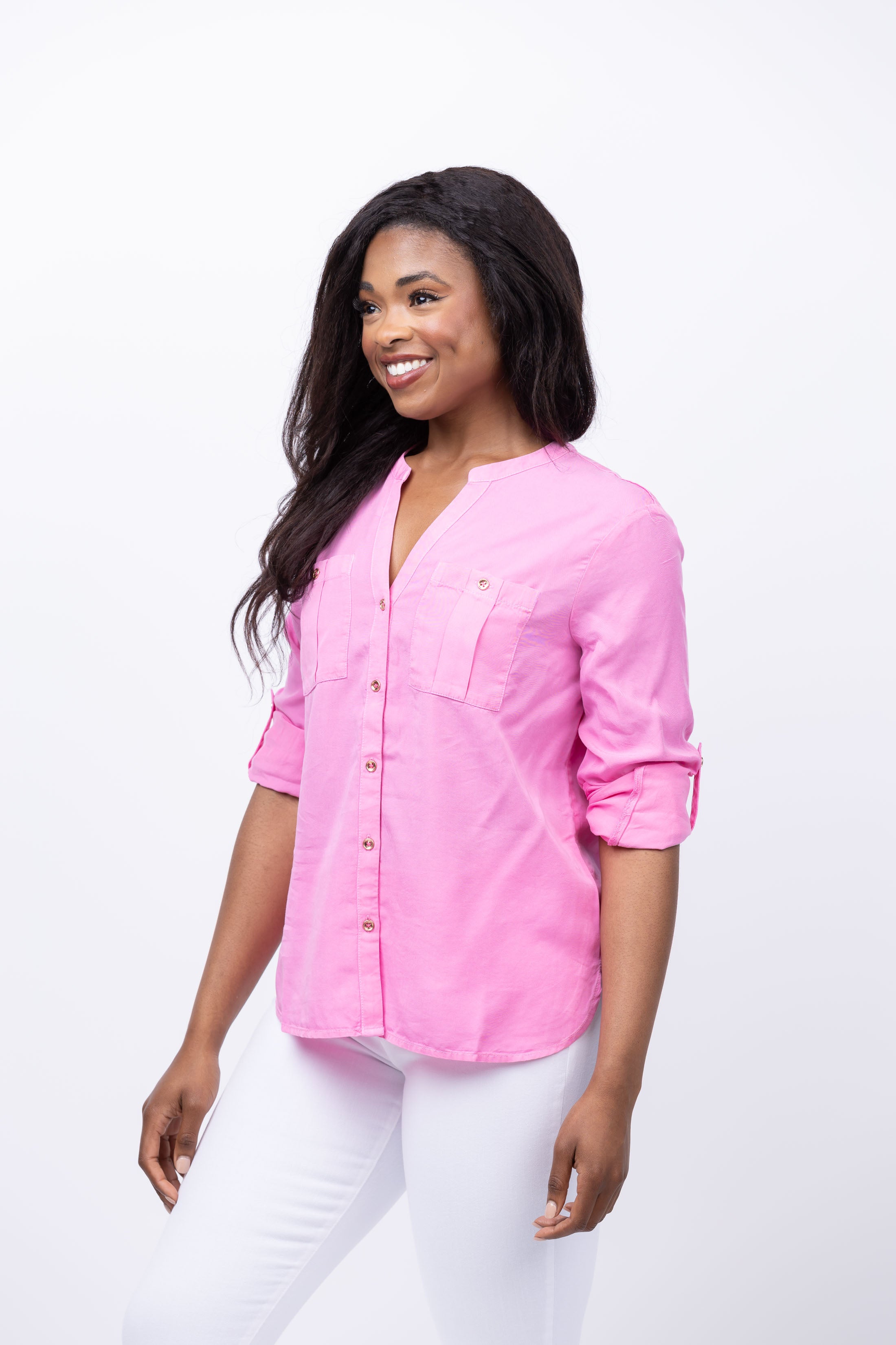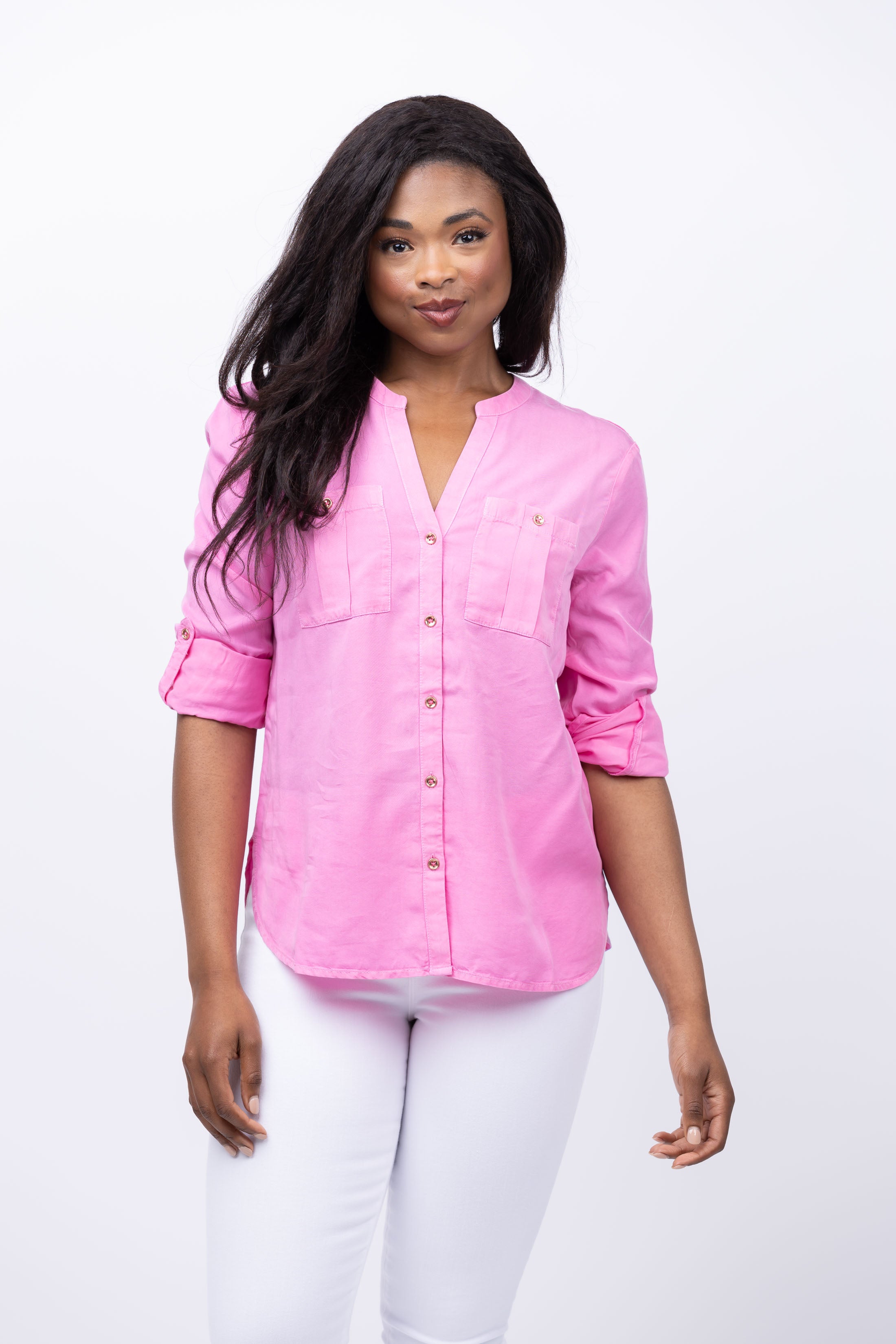 Nic & Zoe Drapey Utility Shirt in Pink Lotus