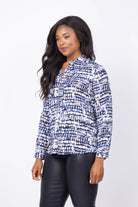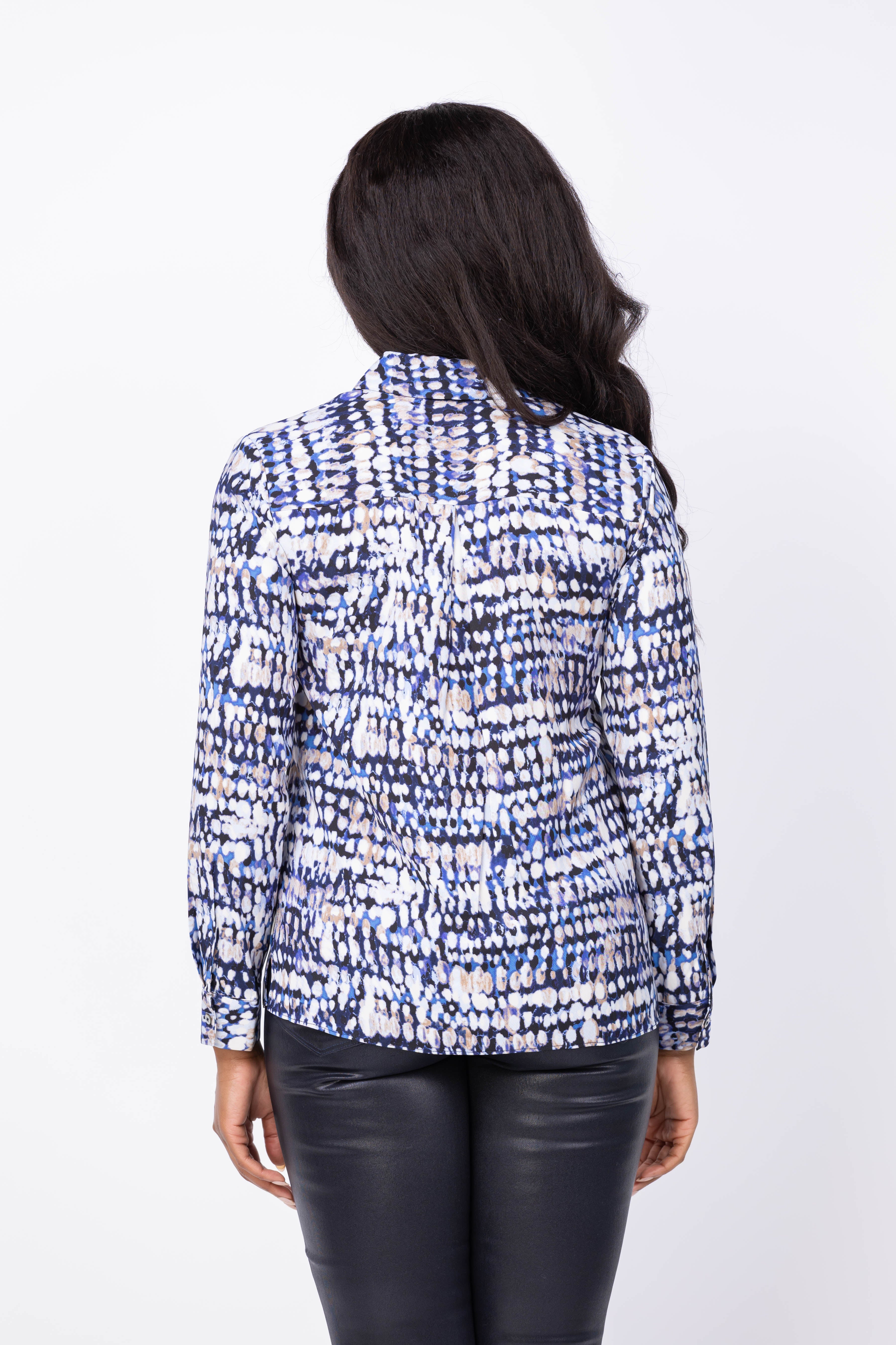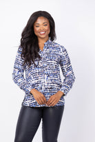 The Nic + Zoe Harvest Dot Top in Blue Multi updates a timeless pattern with a fresh blue hue. Its regular fit and traditional shirt collar create a flattering, polished silhouette, while long sleeves and a button-front design add refined elegance. Sitting just below the hip, this versatile top offers comfort and style, perfect for transitioning from workdays to casual moments with denim. Embrace effortless sophistication with a piece designed for all seasons and occasions.