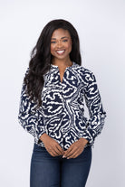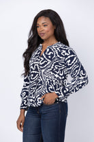 NIC + ZOE Indigo Leaf Crepe Top in Indigo Multi