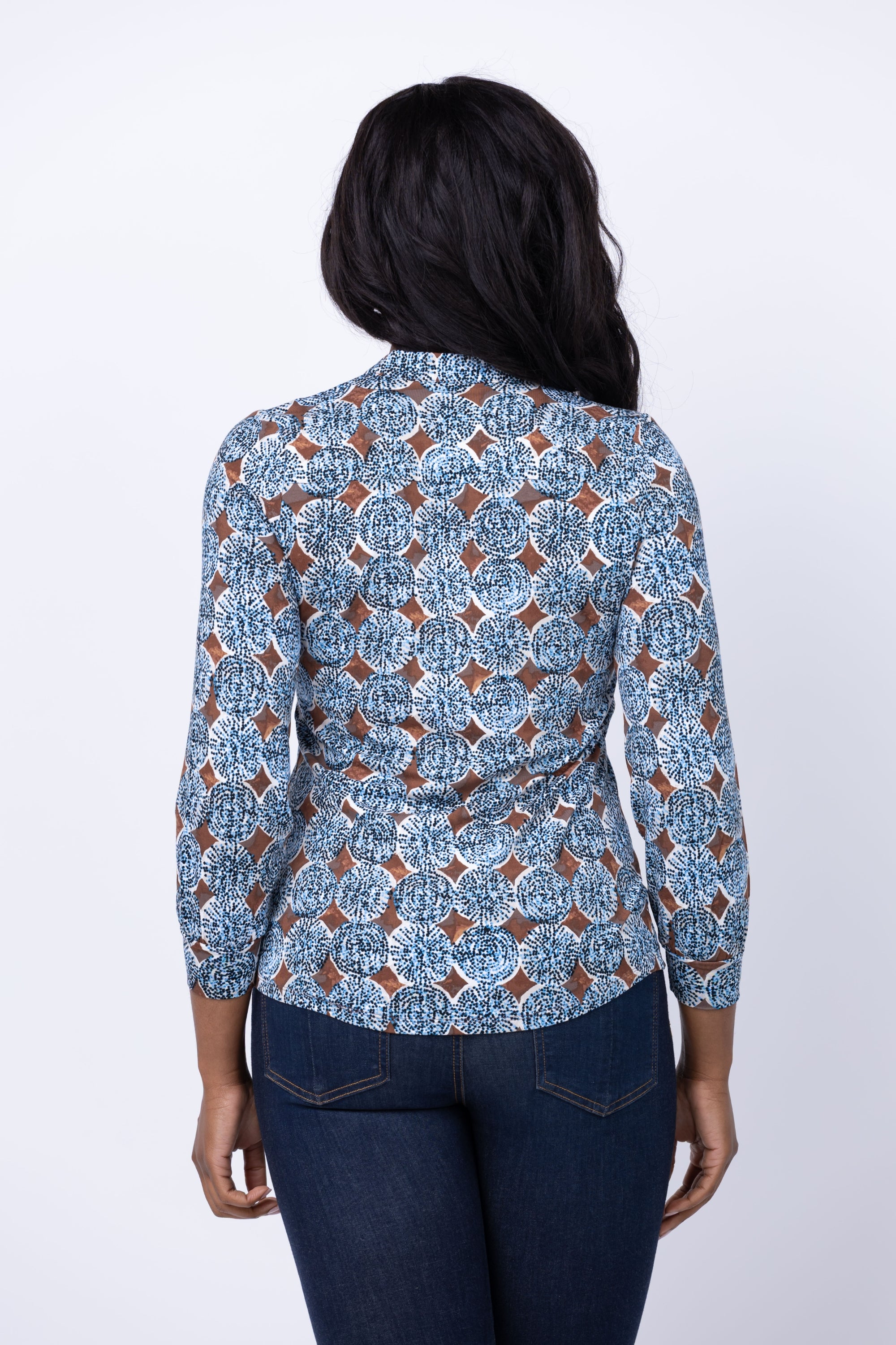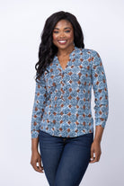 Discover your next must-have beach essential with the Nic + Zoe Sand Dollar Top in Blue Multi. Featuring an intricate indigo print, split button placket, and flattering long sleeves, this top is perfect for both casual and professional looks. Crafted from 95% drapey viscose, with a touch of added stretch, it offers both style and comfort for a day at the beach.