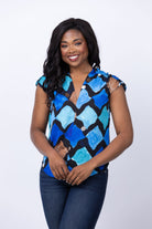 Nic + Zoe Sea Glass Ruched Woven Top in Blue Multi