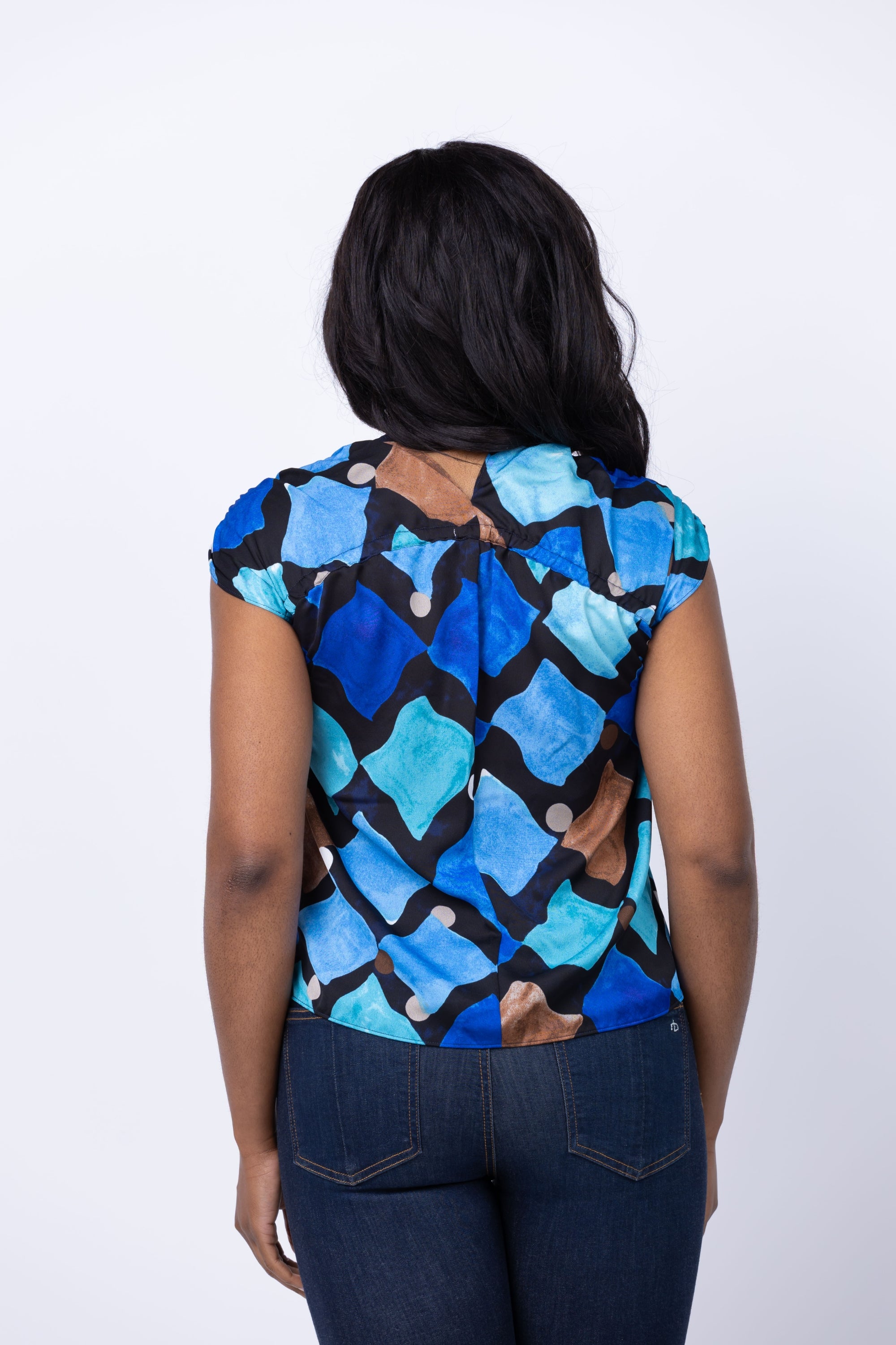 Elevate your wardrobe with the Nic + Zoe Sea Glass Ruched Woven Top! This vibrant blouse features a flattering v-neck and a playful print, adding a touch of fun to any outfit. Perfect for brightening up your day and making a statement.