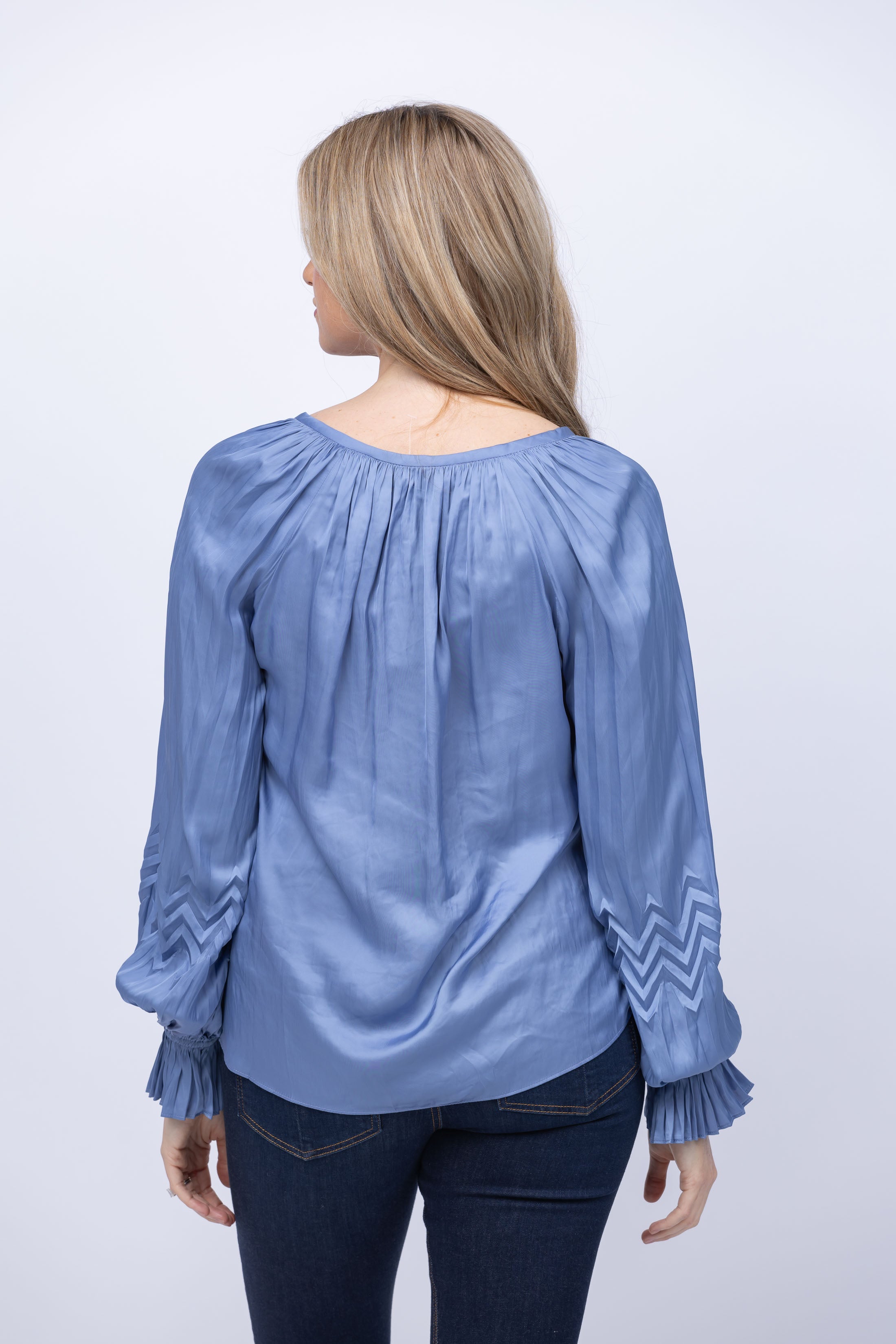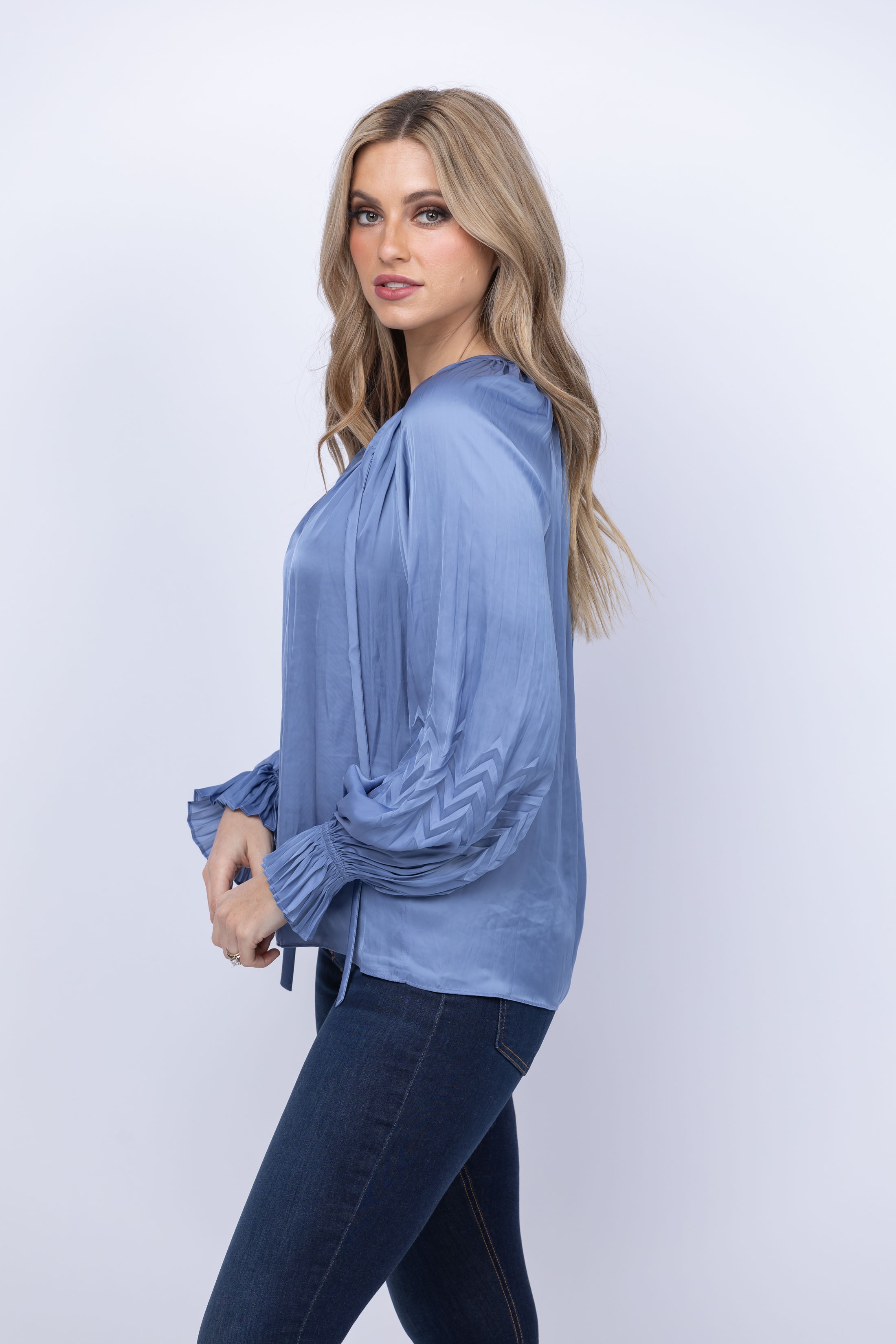 Introducing the must-have piece for your spring wardrobe: the Ramy Brook Blake Blouse. Crafted from beautiful crepe de chine fabric, it features a v-neck silhouette and stylish contemporary sleeves. Perfect for taking your look from day to night, it's sure to be a staple you'll reach for on repeat!