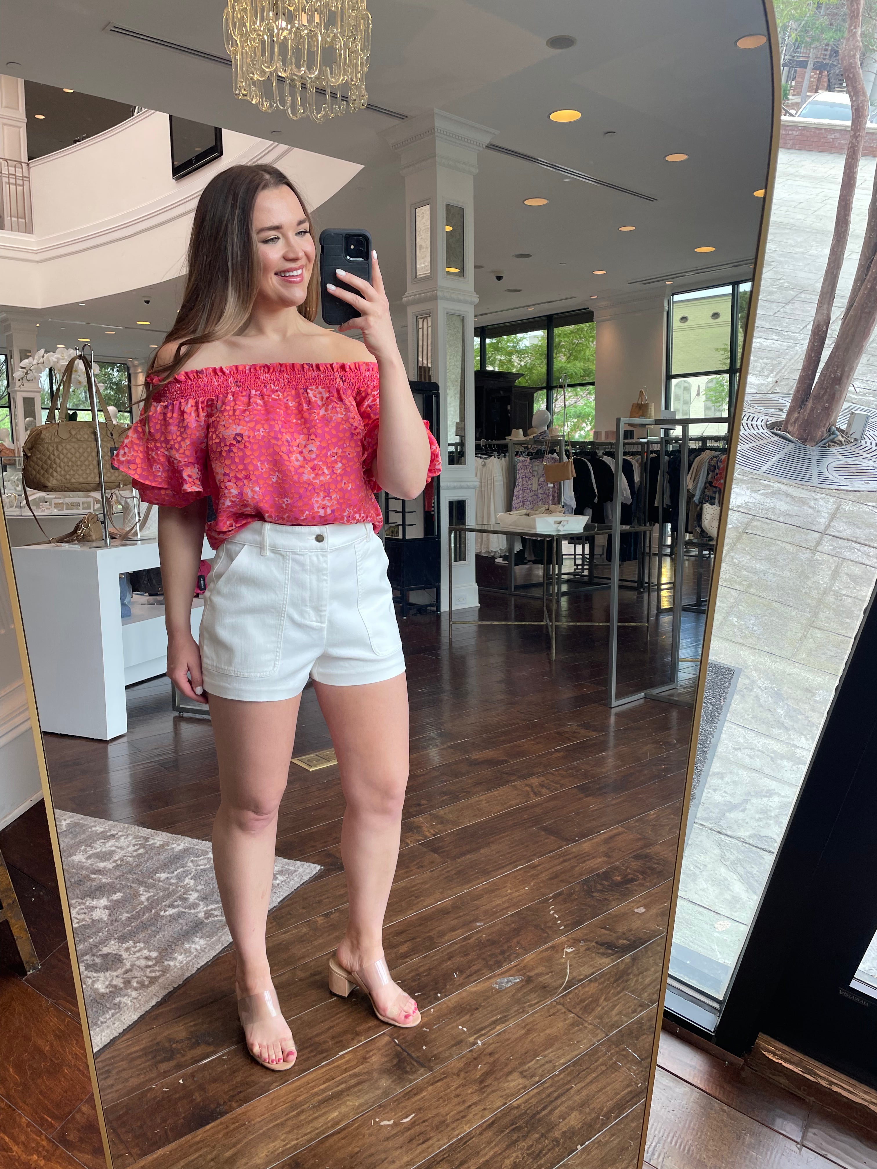 Experience effortless style with Ramy Brook's Fiona top! Crafted from floral georgette, this off-the-shoulder top features elegant layered flutter sleeves that add a touch of whimsy to any outfit. Perfect for any occasion, this top will make you feel confident and stylish.