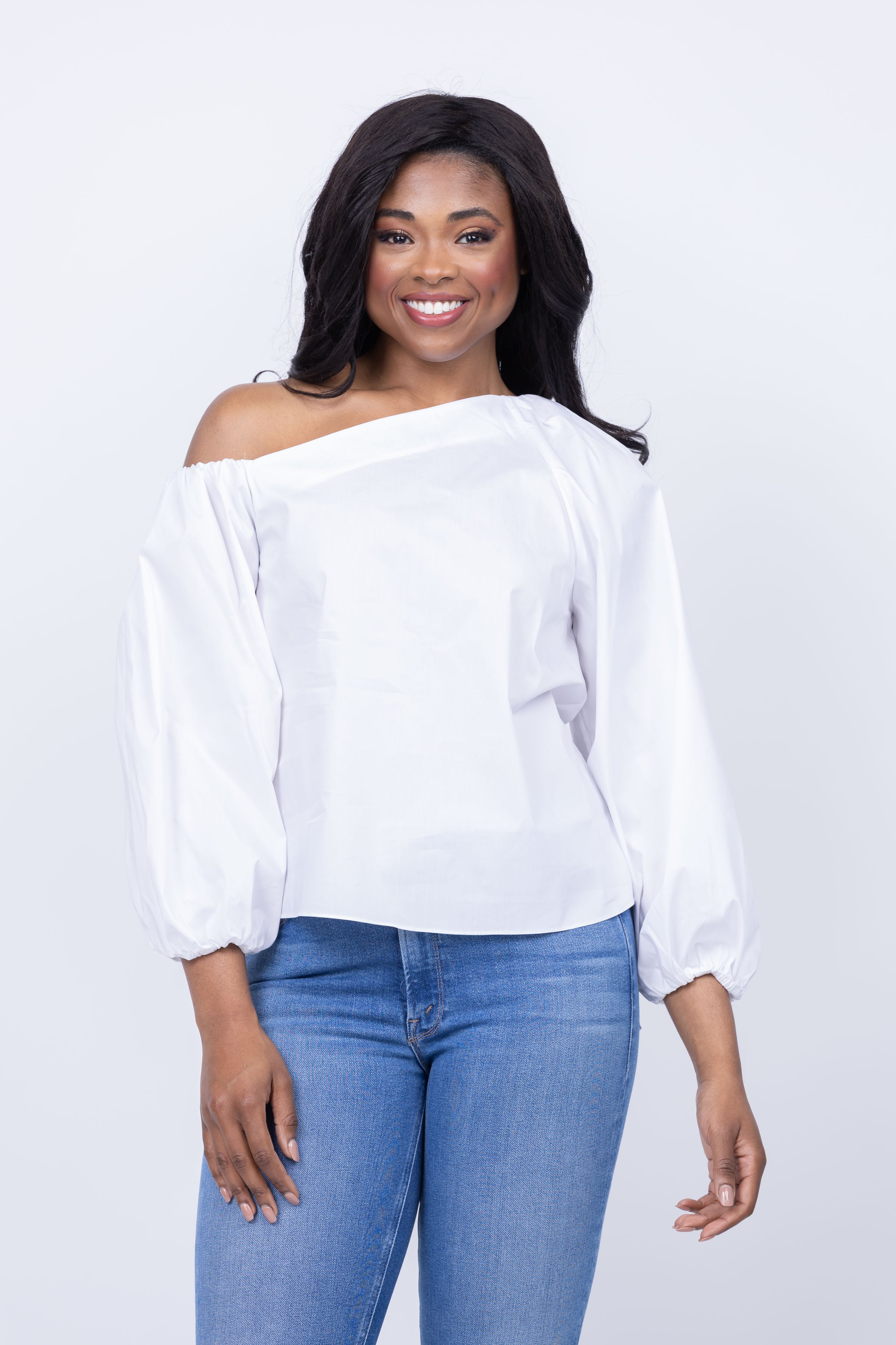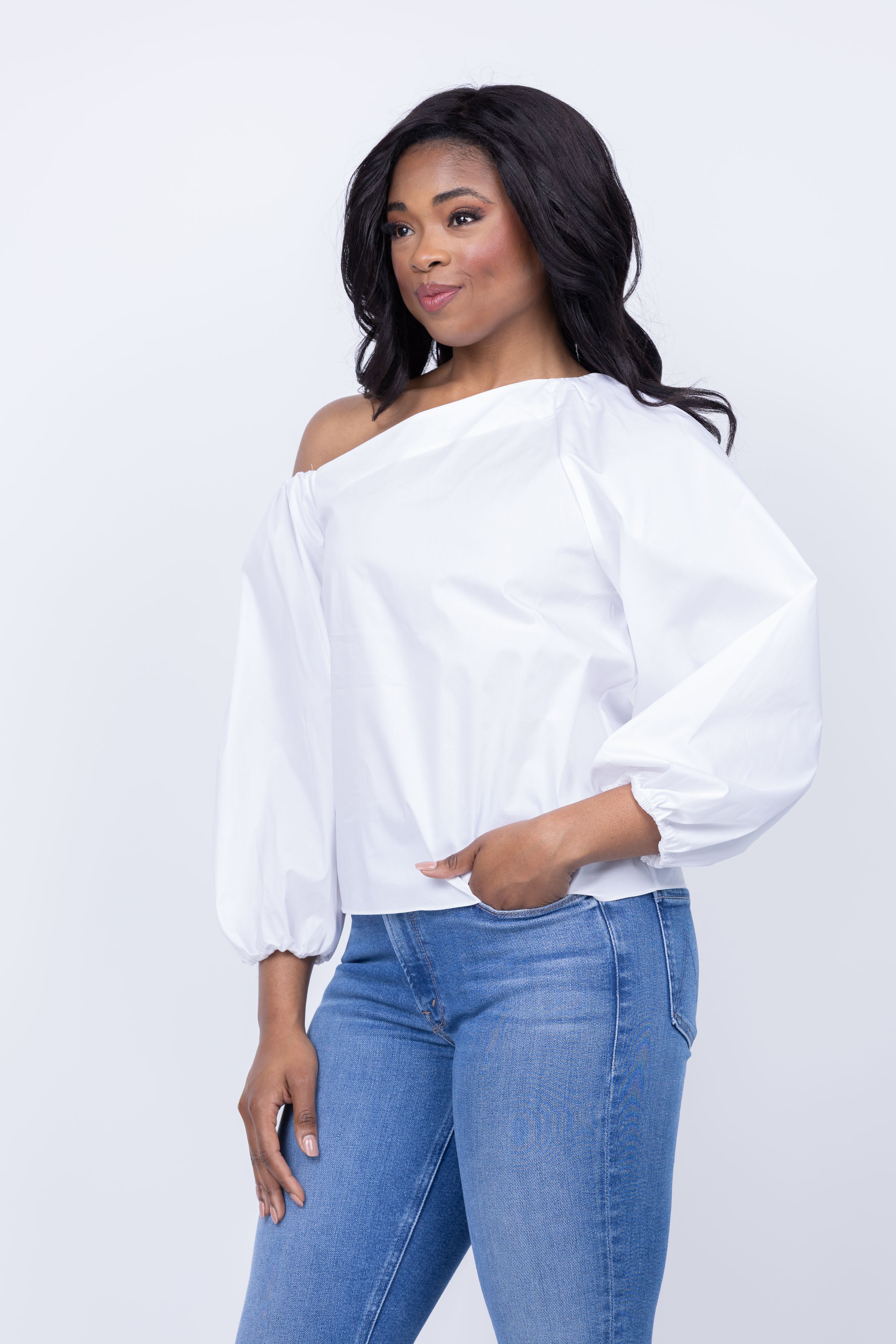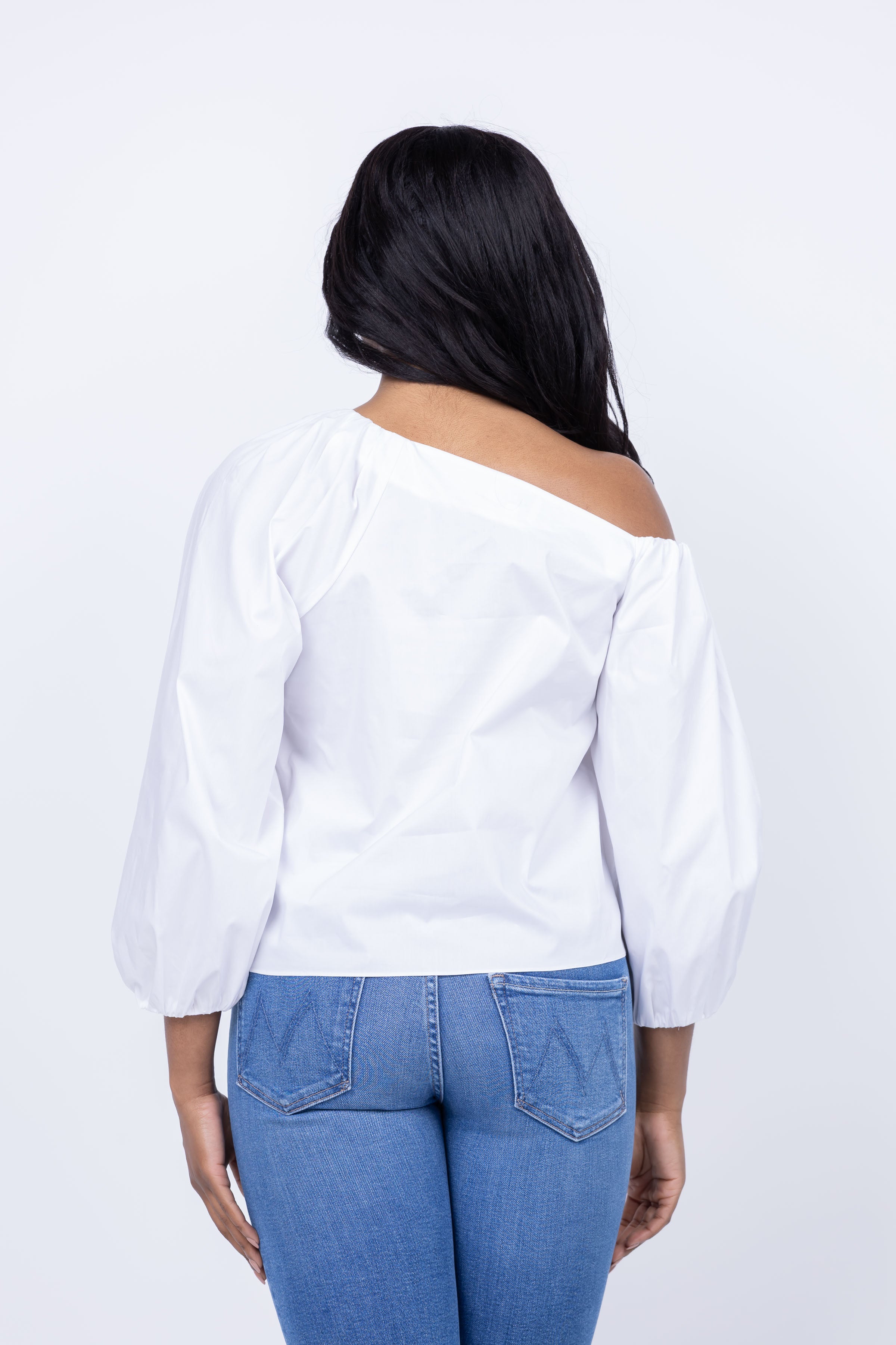 Embody bold femininity with the Tanya Taylor Tabitha Top. Designed in luxe cotton poplin, this statement piece features an asymmetrical off-the-shoulder neckline, voluminous lantern sleeves, and delicate shoulder pleating. Perfect for day-to-night allure, channel confident elegance this Spring.