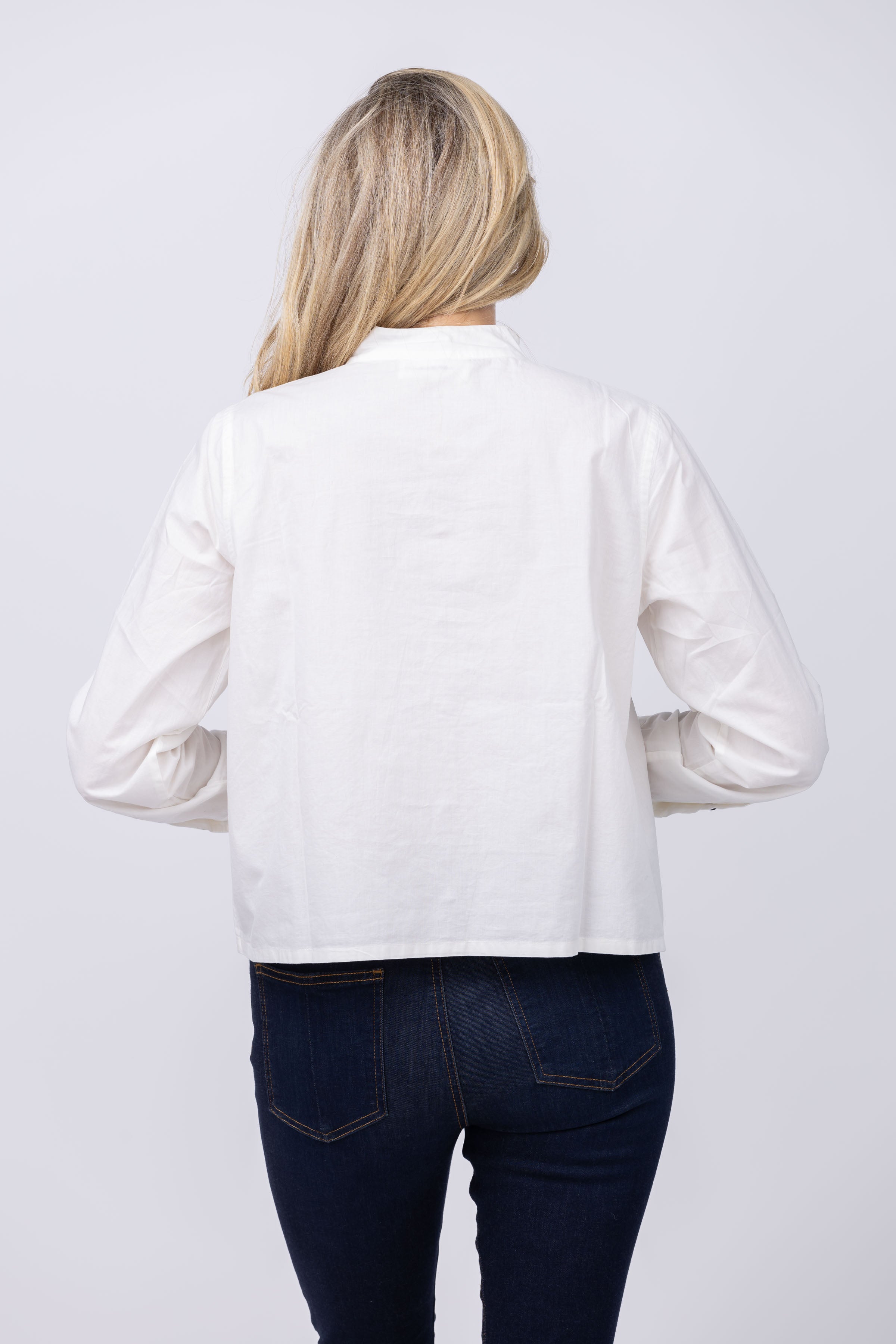 Transform the classic button down into a statement piece with The Great.'s Pleated Tux Top. The western-inspired twist adds flair to any outfit. Pair with a denim skirt and suede boots for a stylish, yet casual look.