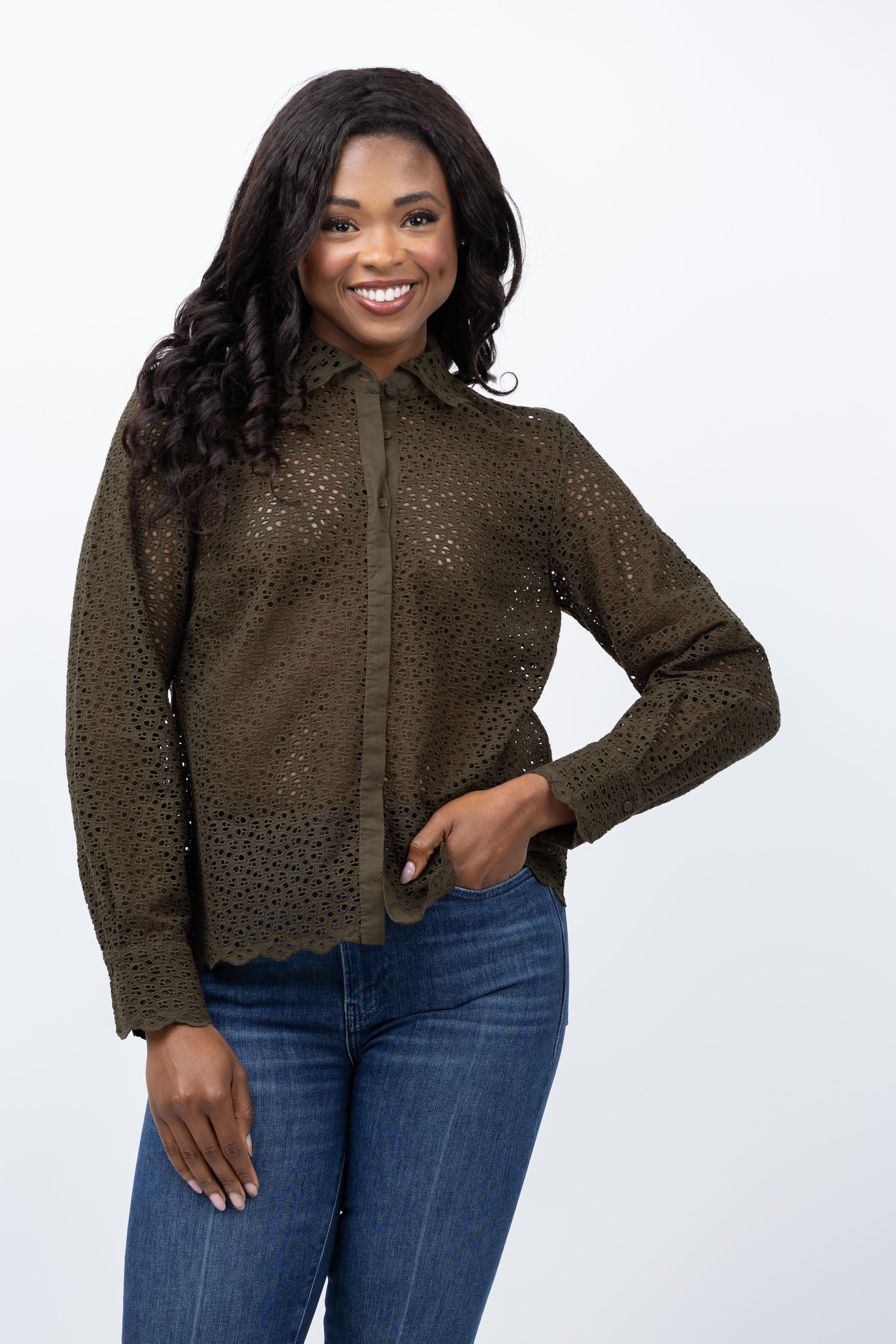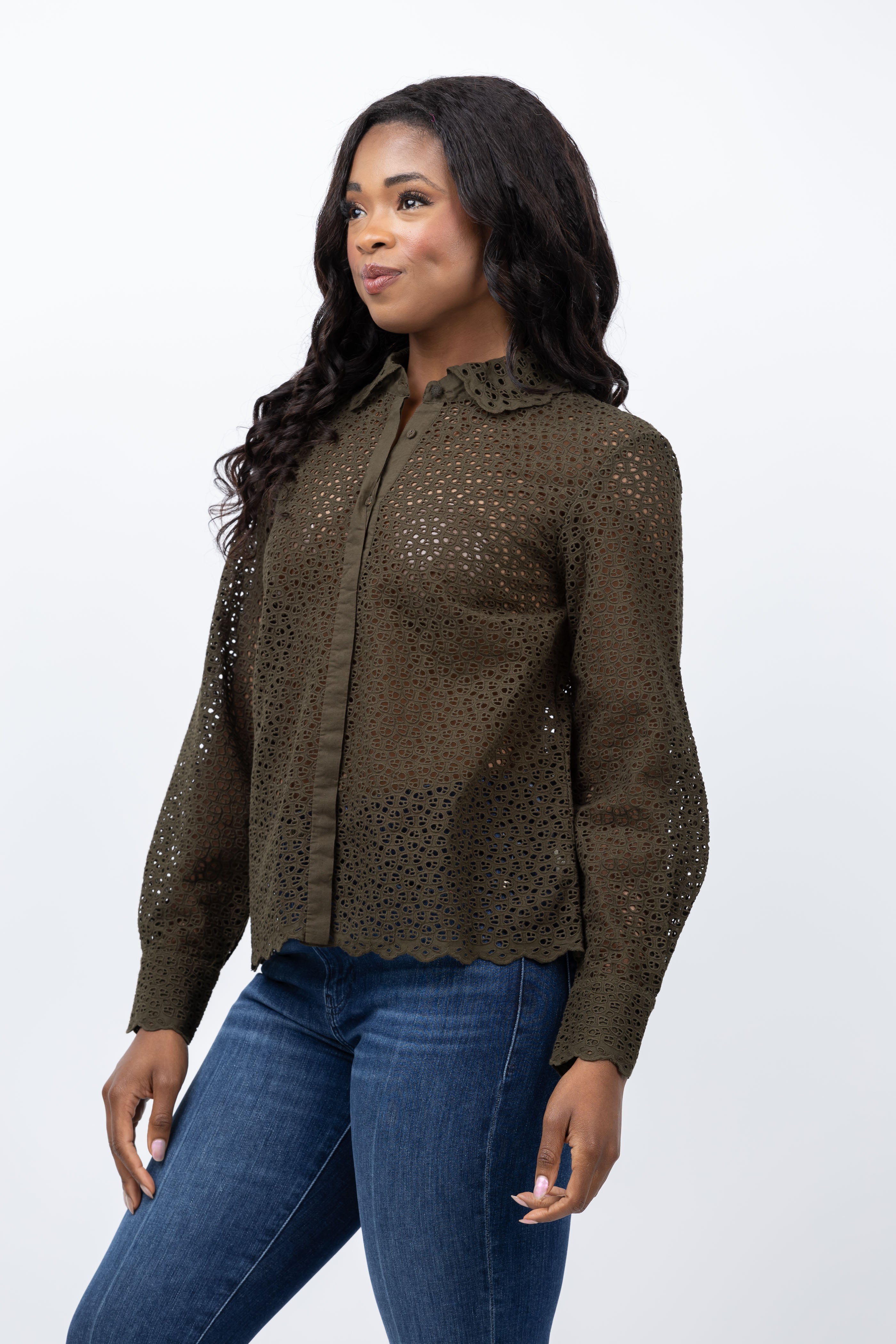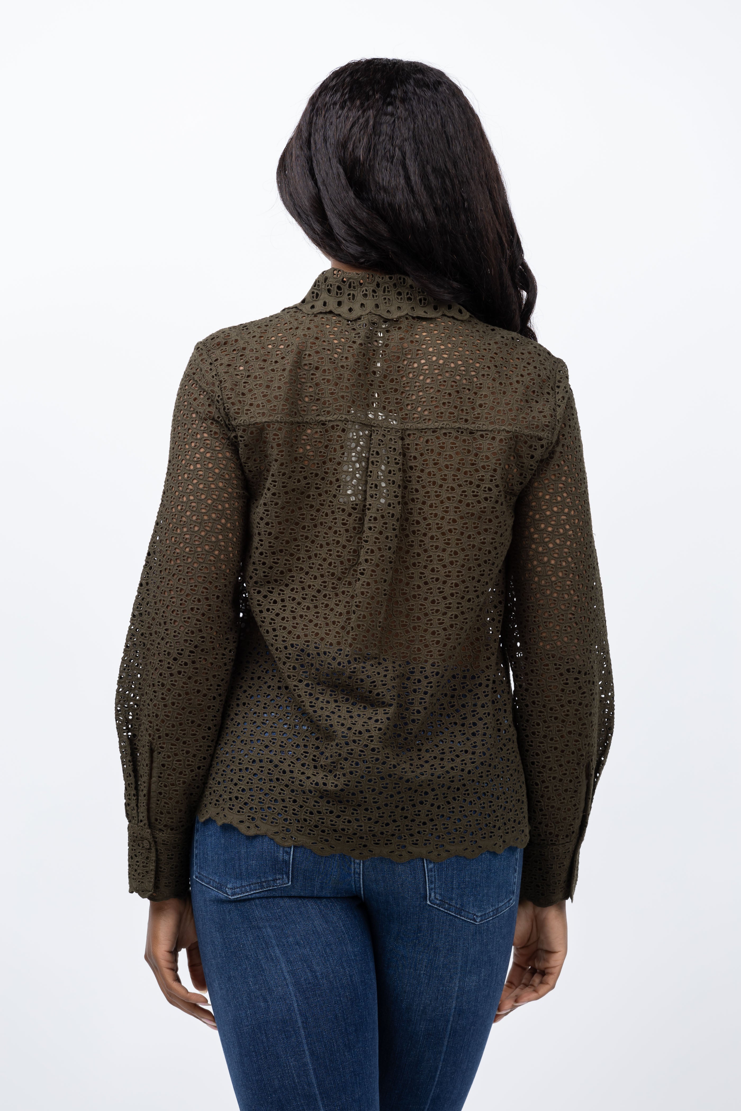 Elevate your pre-fall wardrobe with the Ulla Johnson Abbott Blouse in Militaire. This army green button down is the perfect choice for fall, especially when paired with cream jeans. The eyelet detailing adds a touch of delicate charm to this striking piece. Revamp your style with the Abbott Blouse!