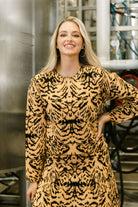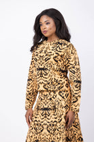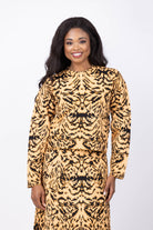 The Ulla Johnson Cade Pullover combines bold style with cozy comfort. Crafted from stretch jacquard knit, it features a vibrant animal-inspired Bengal pattern in light gold and black that makes a striking statement. The classic crewneck and voluminous long sleeves add elegance while keeping you warm, making it a perfect choice for cooler days when you want to stand out effortlessly.