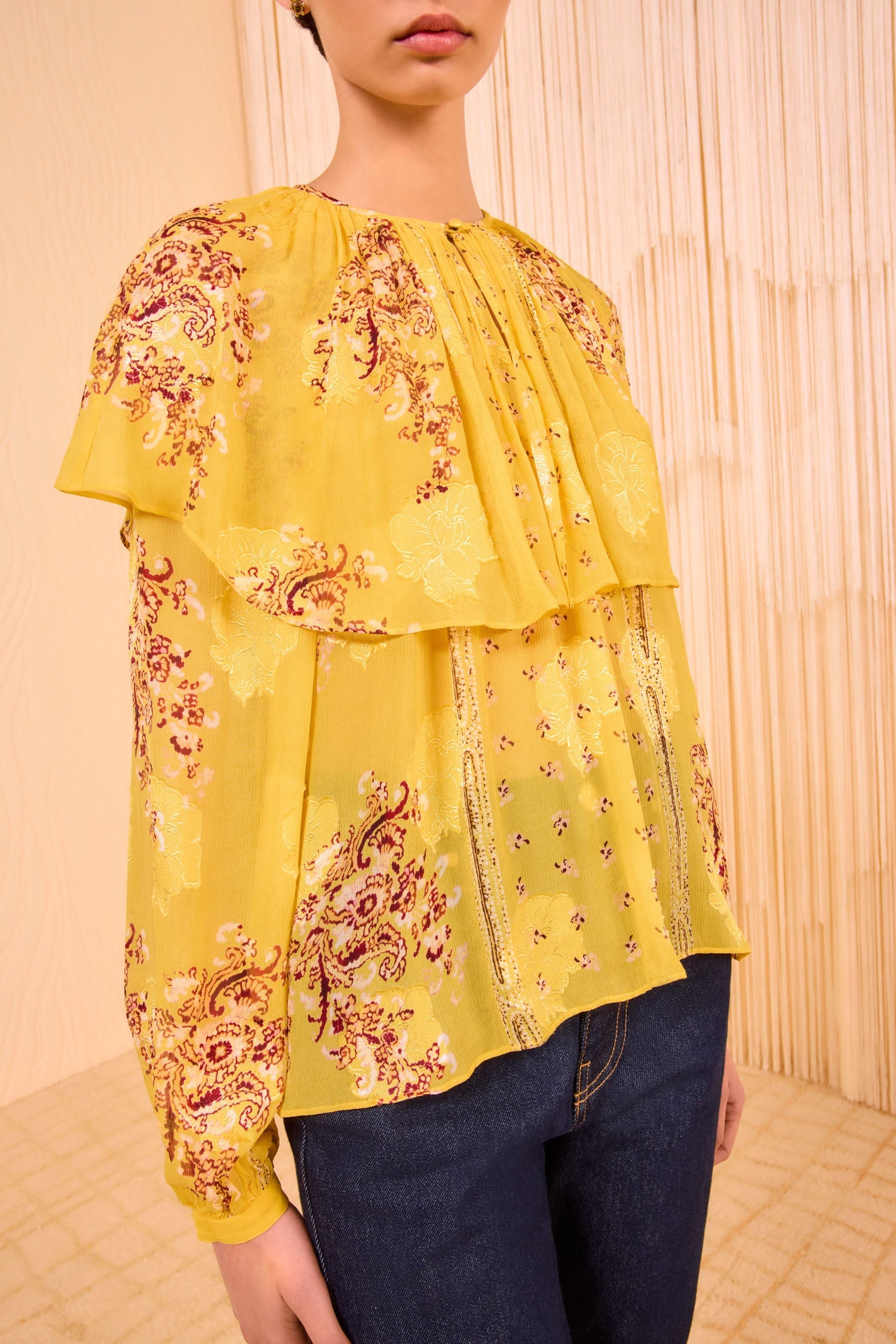 Ulla Johnson Elissa Cape Layer Long Sleeve Blouse in Soleil