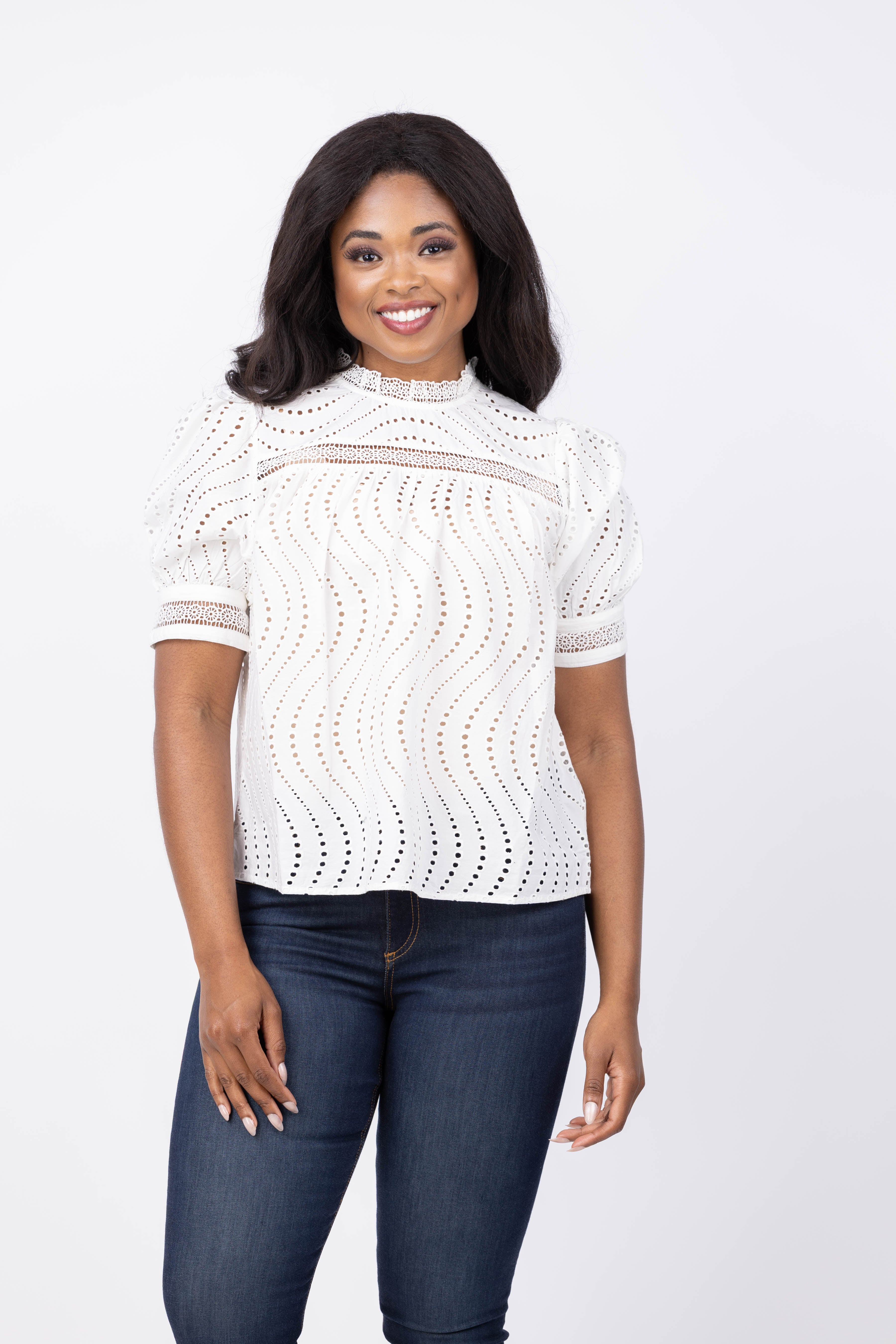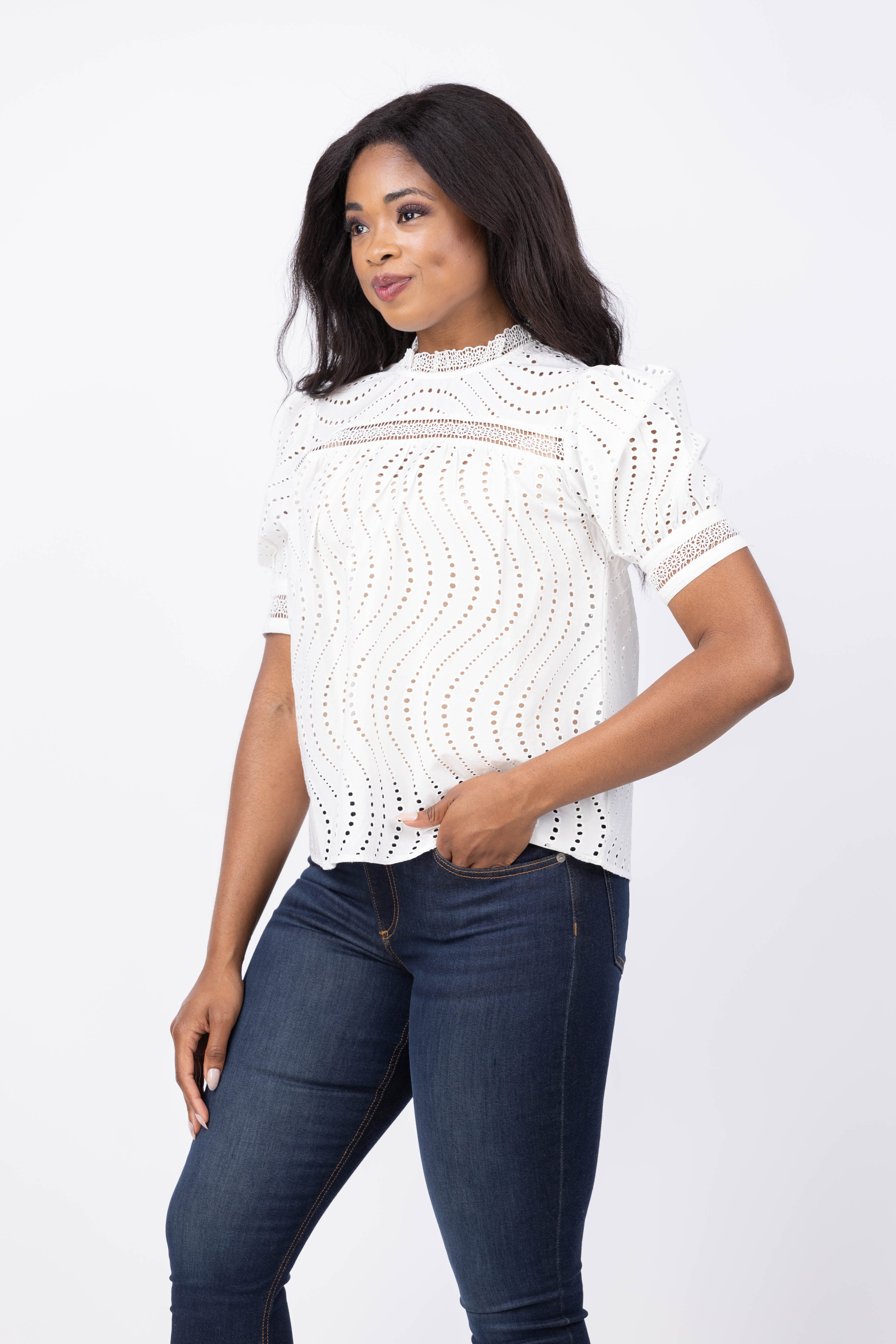 The Ulla Johnson Virginia Lace Collar Short Sleeve Blouse in Pristine blends delicate design with refined comfort. Crafted from soft, water-washed poplin, it features a graceful degradé eyelet pattern that subtly reveals and conceals, enhancing its elegant appeal. The blouse’s signature silhouette is accentuated by artfully puffed sleeves and detailed lace trims, creating a timeless piece that elevates any wardrobe with effortless sophistication.