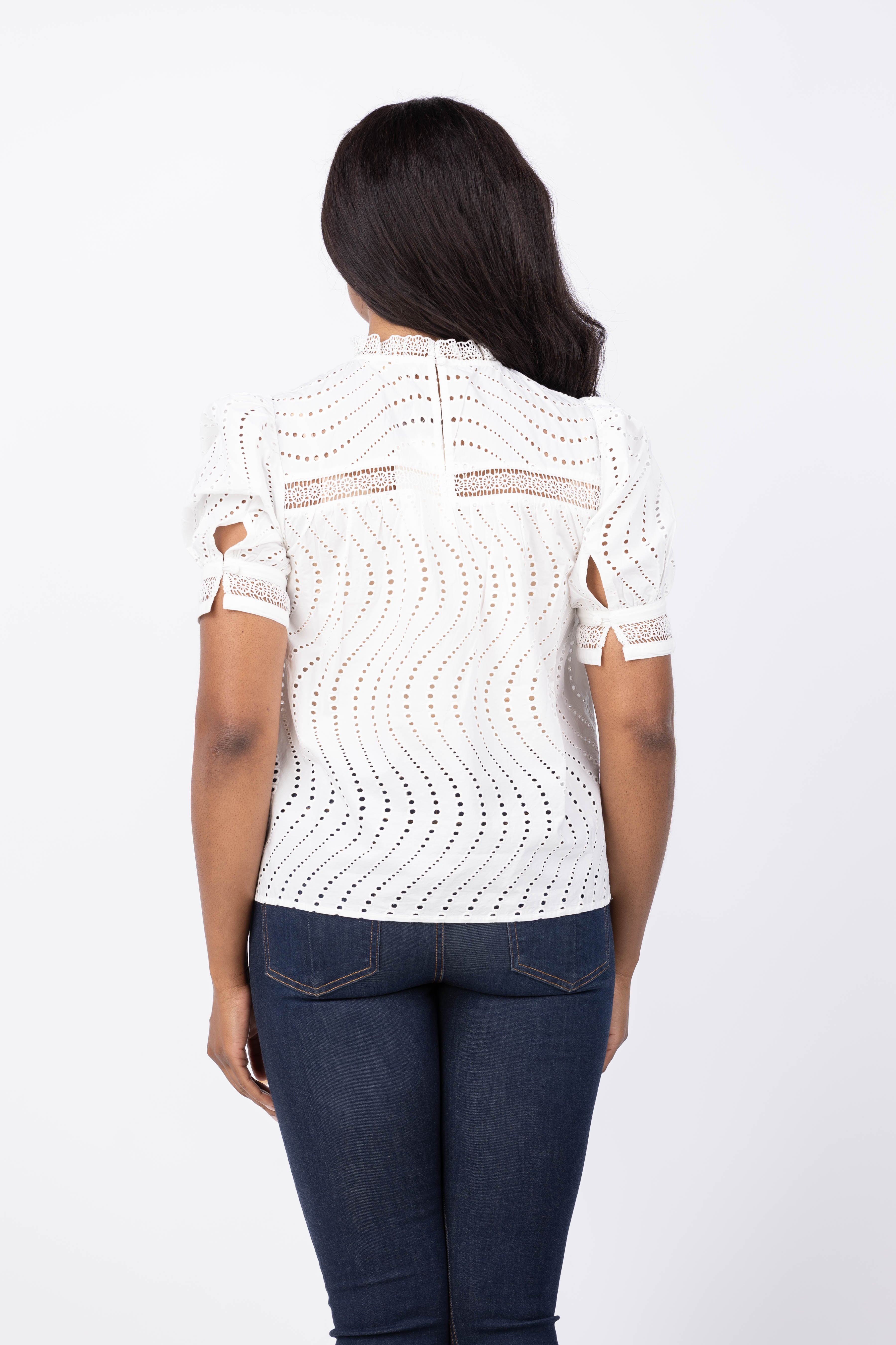 Ulla Johnson Virginia Lace Collar Short Sleeve Blouse in Pristine