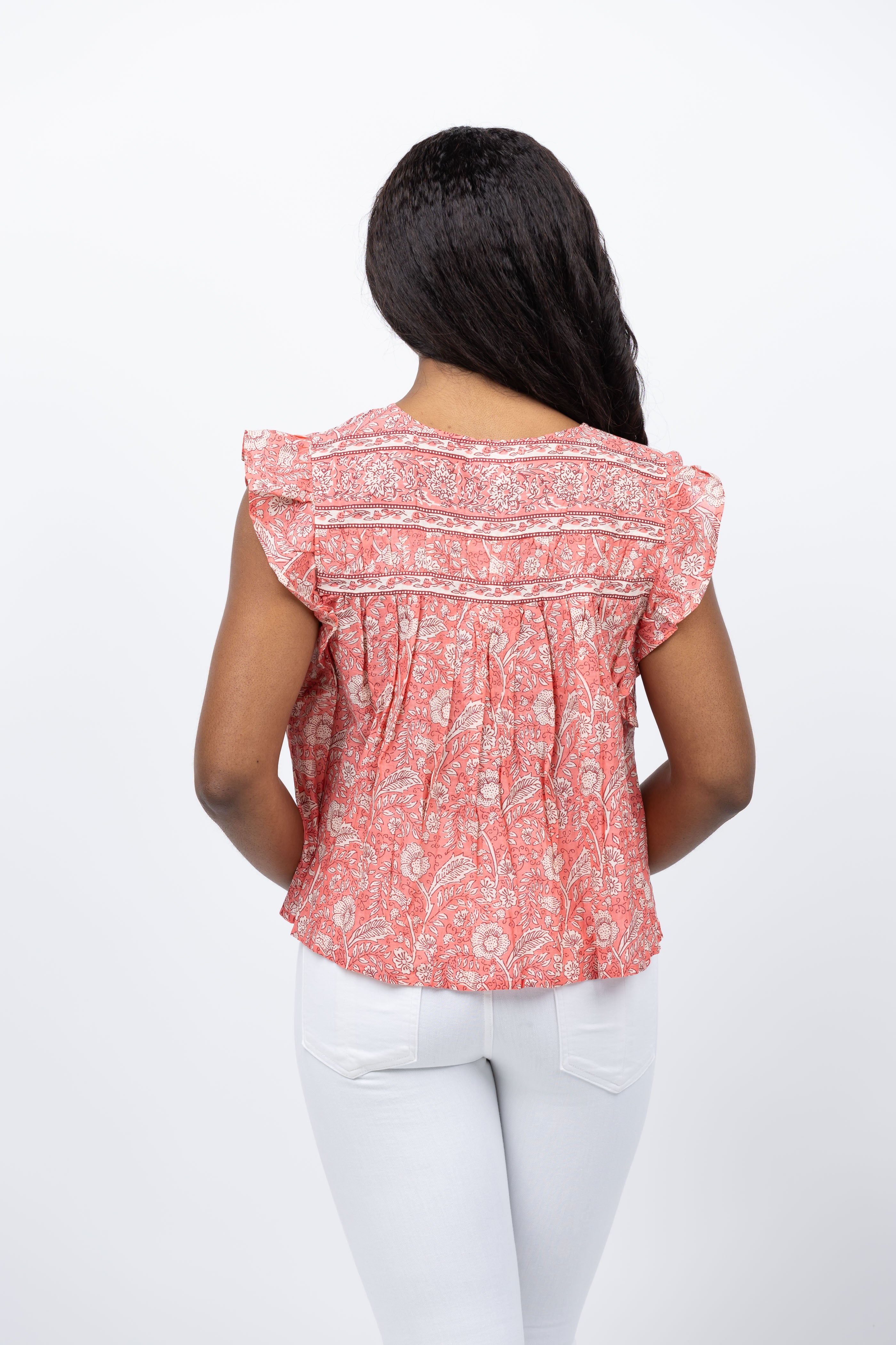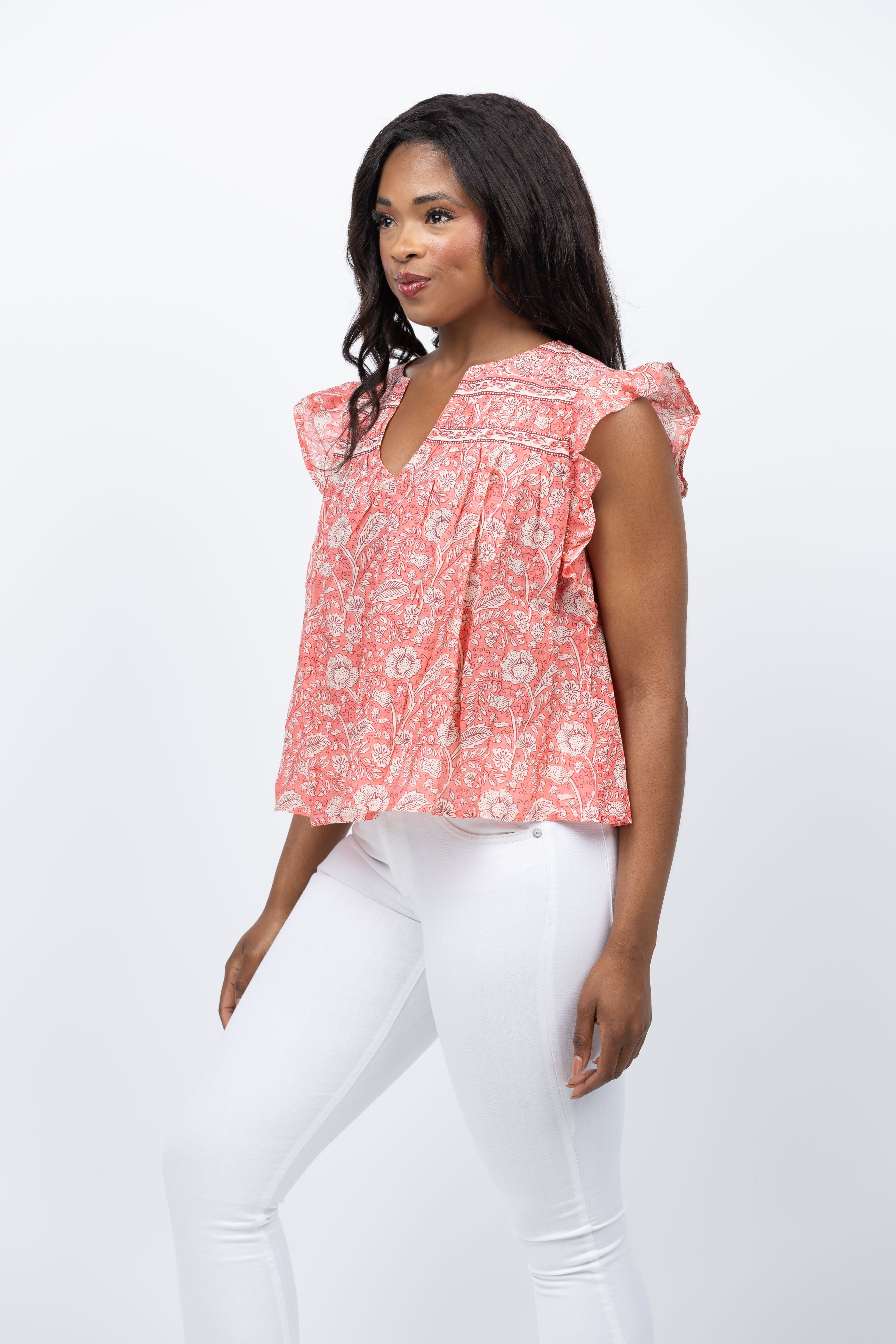 Experience the luxurious comfort of our Velvet Kenzie Top in Rouge! This stunning top features a split neck, flutter cap sleeves, and a beautiful allover floral print. Made in India, it's the perfect addition to your wardrobe. Indulge in style and sophistication with this must-have top.