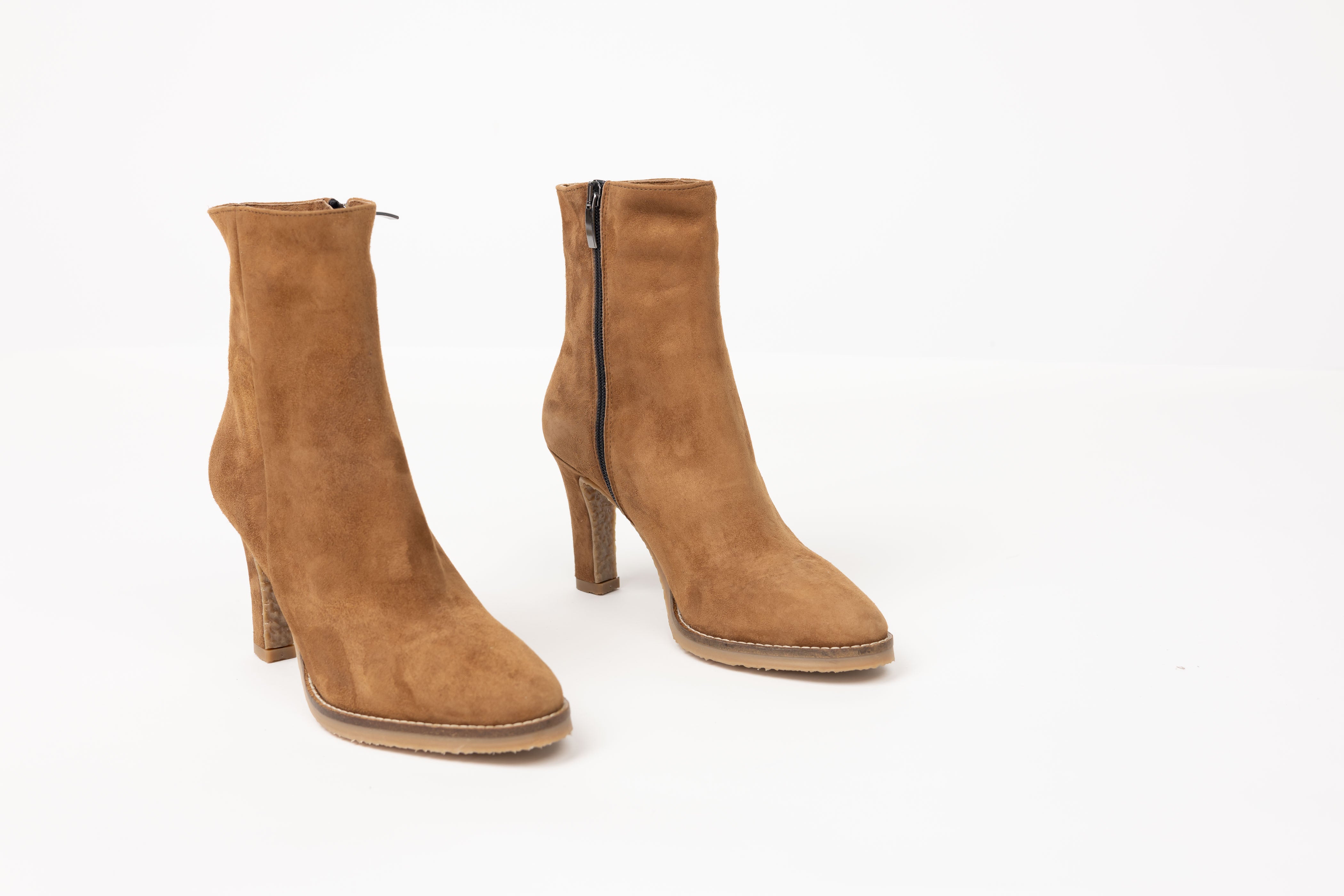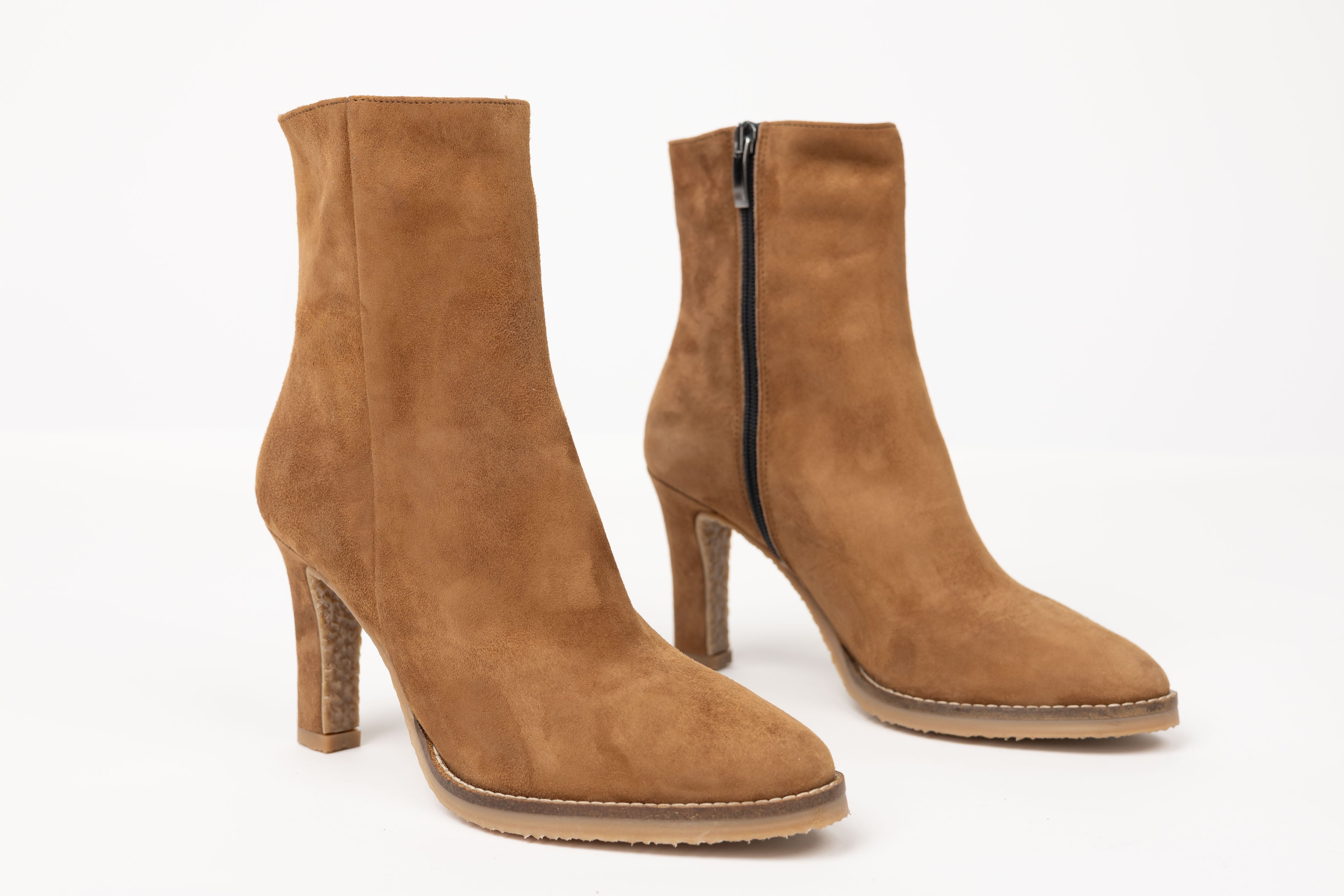 Step into effortless style with the Cordani Novah Boot in Canapa Suede. This ankle bootie features a sleek suede design with a wrapped tapered heel for a touch of sophistication. The western-inspired outer sole stitch detail adds a unique flair, while the leather lining and crepe outsole provide comfort and durability. Made in Italy for a true luxurious feel.