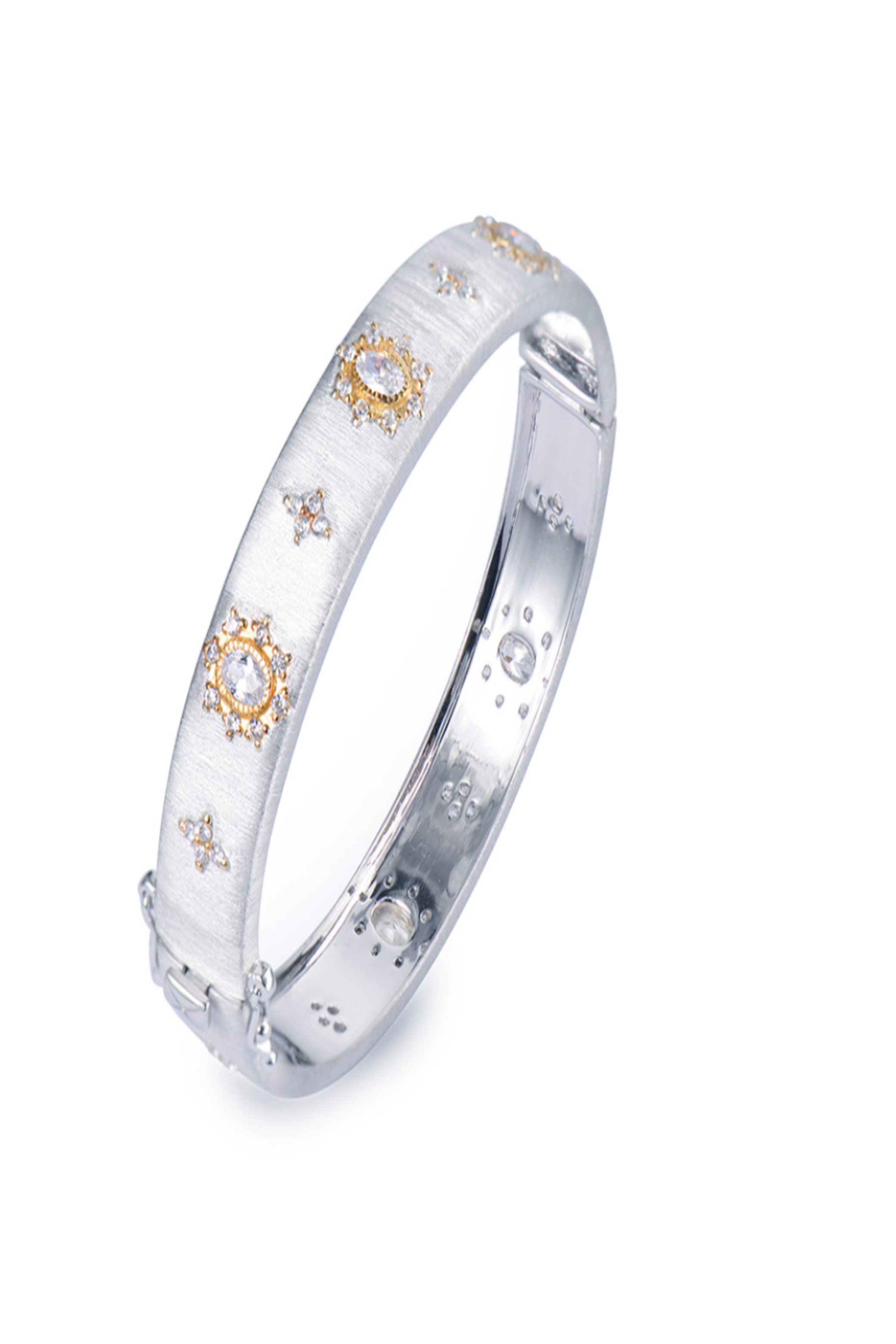 Bijoux Num Flower-pattern Two-Tone Narrow Bangle Bracelet