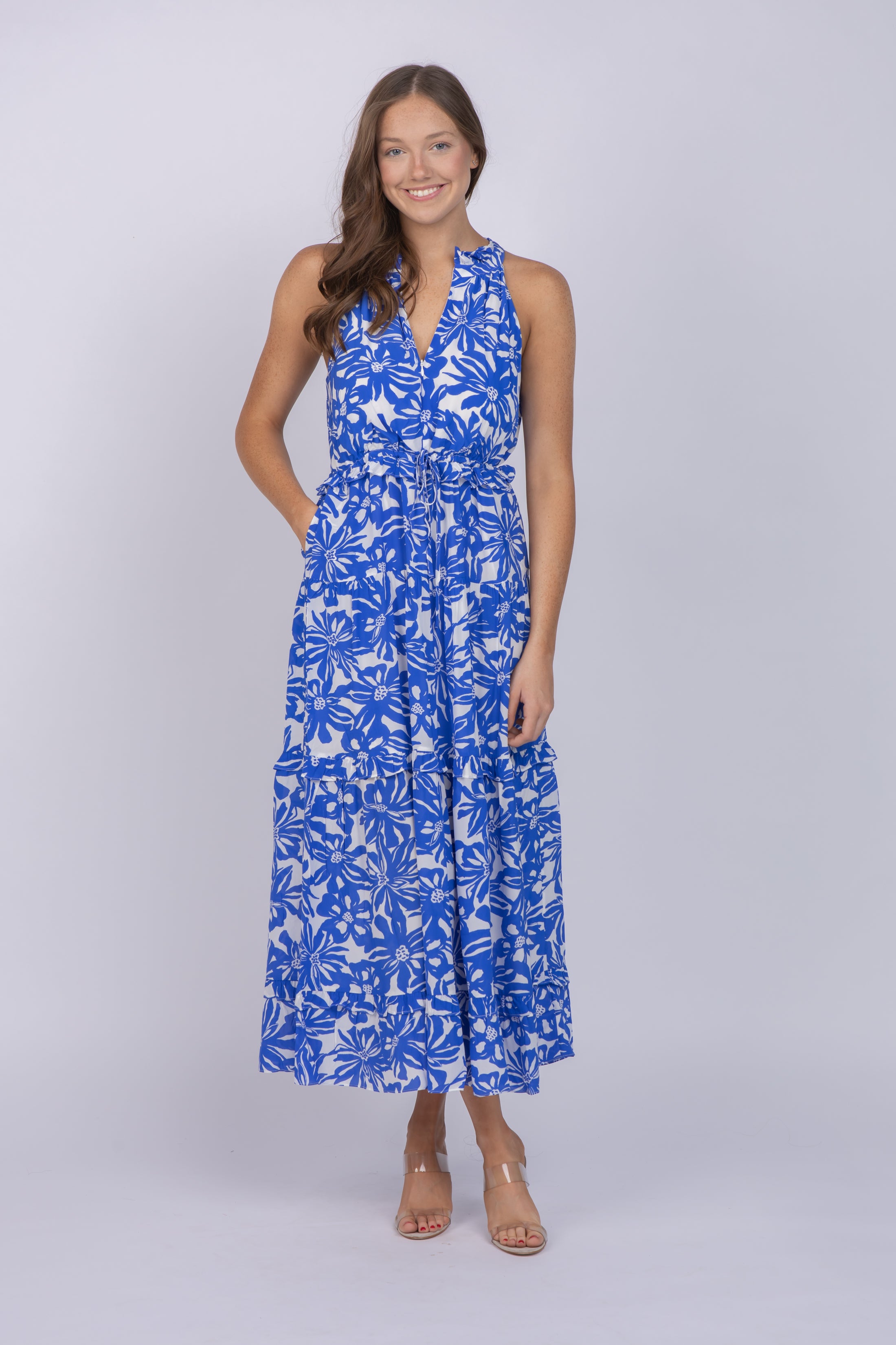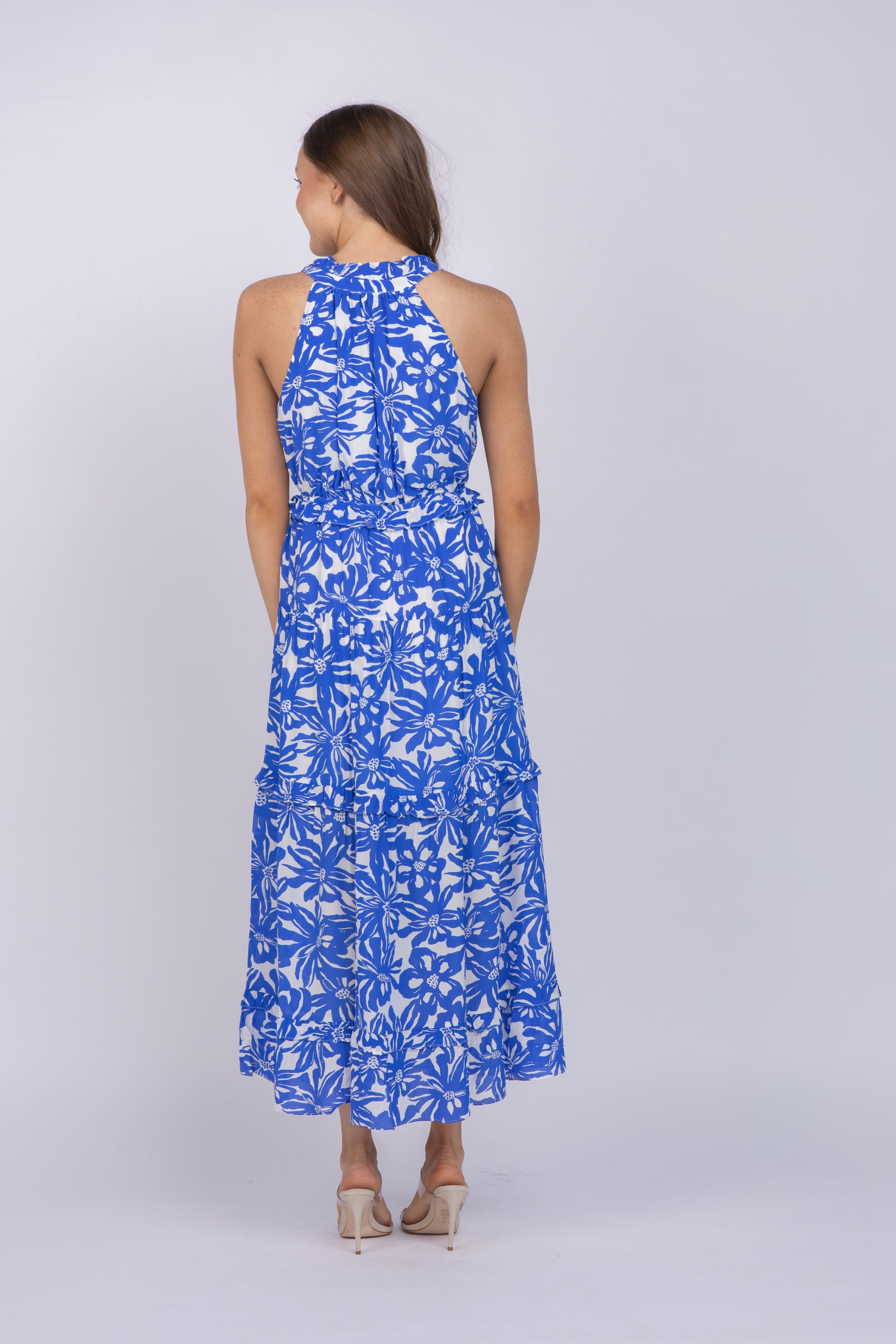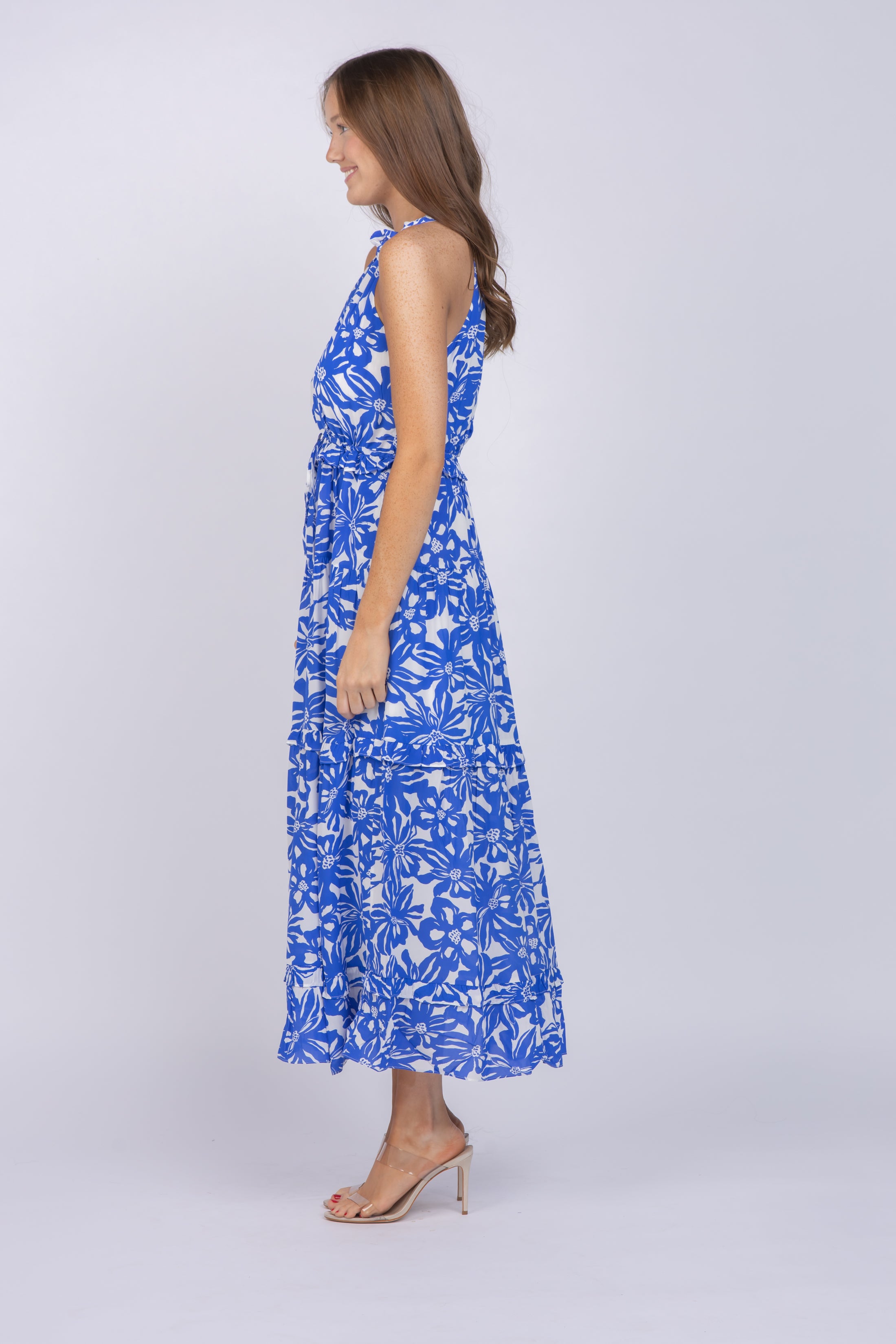 Showcase your shoulders in the stunning Hollie dress! This super soft viscose fabric in the Coastal Blue print is sure to turn heads. The halter neckline and ruffle details bring a touch of femininity and style that won't sacrifice comfort - plus, you can adjust the waist for extra ease with the self tie at back.