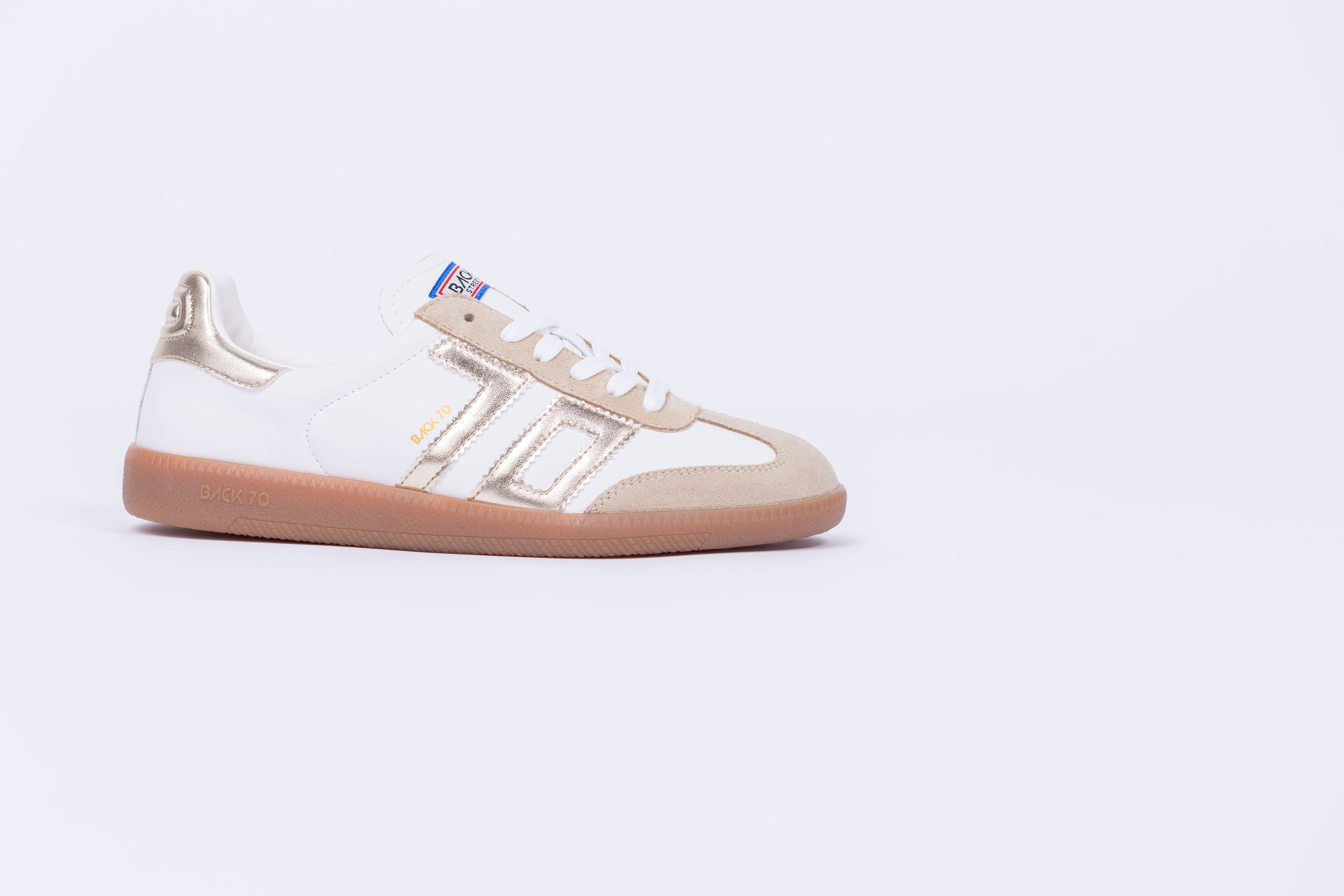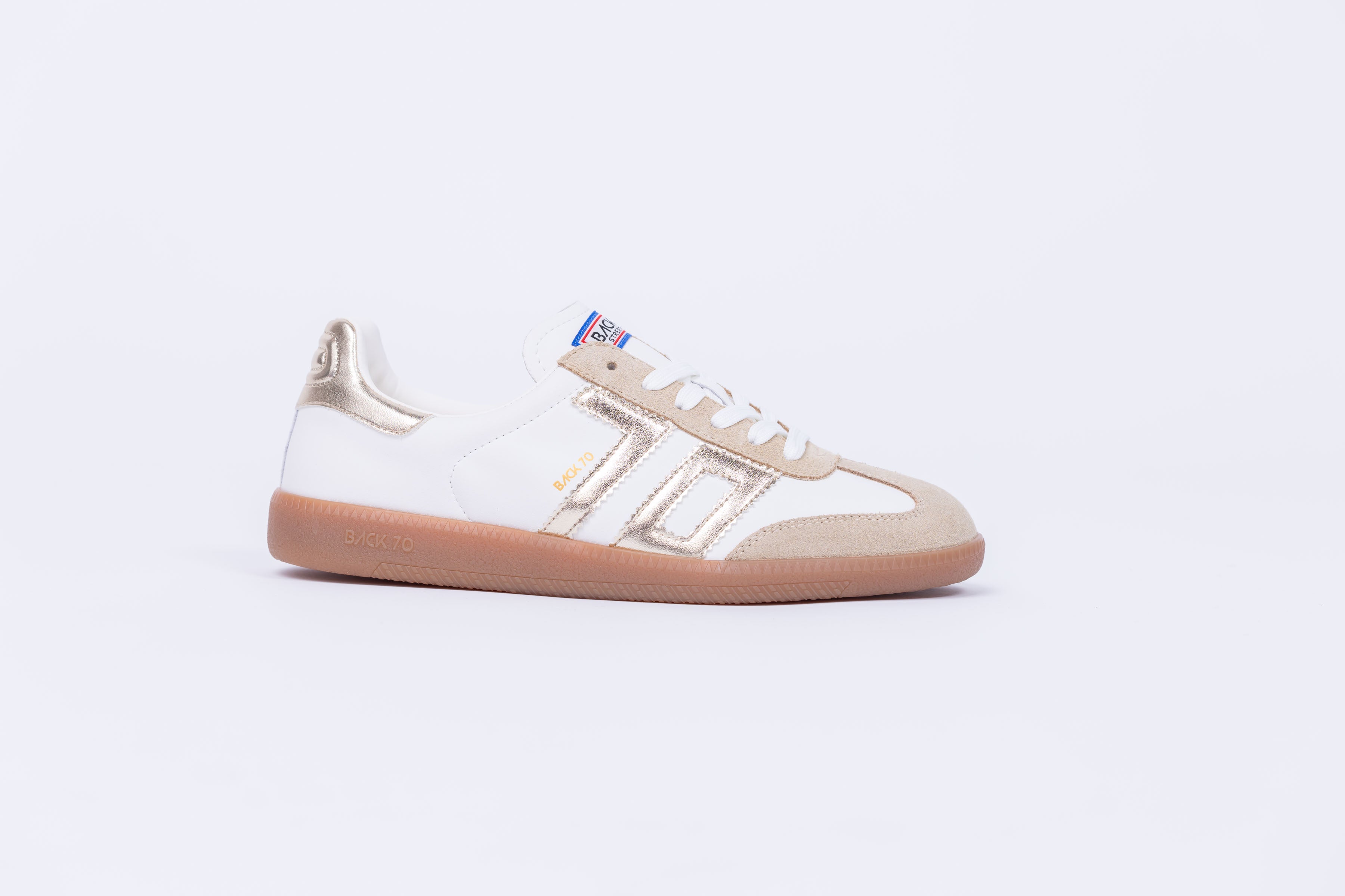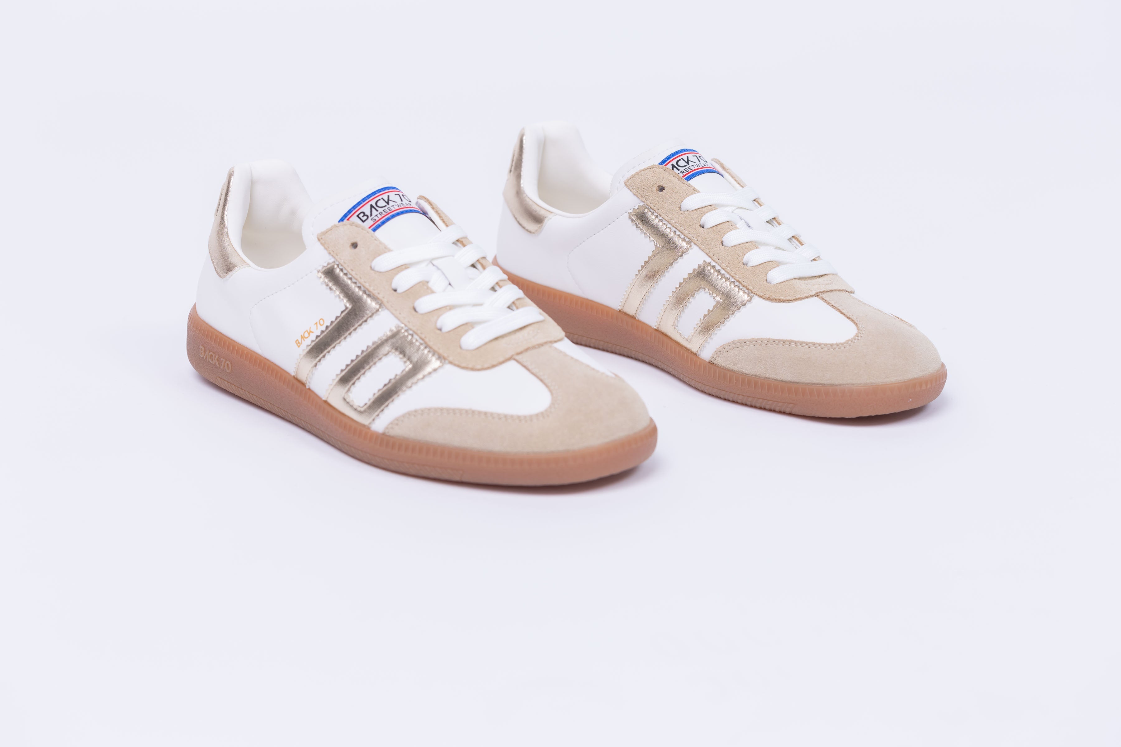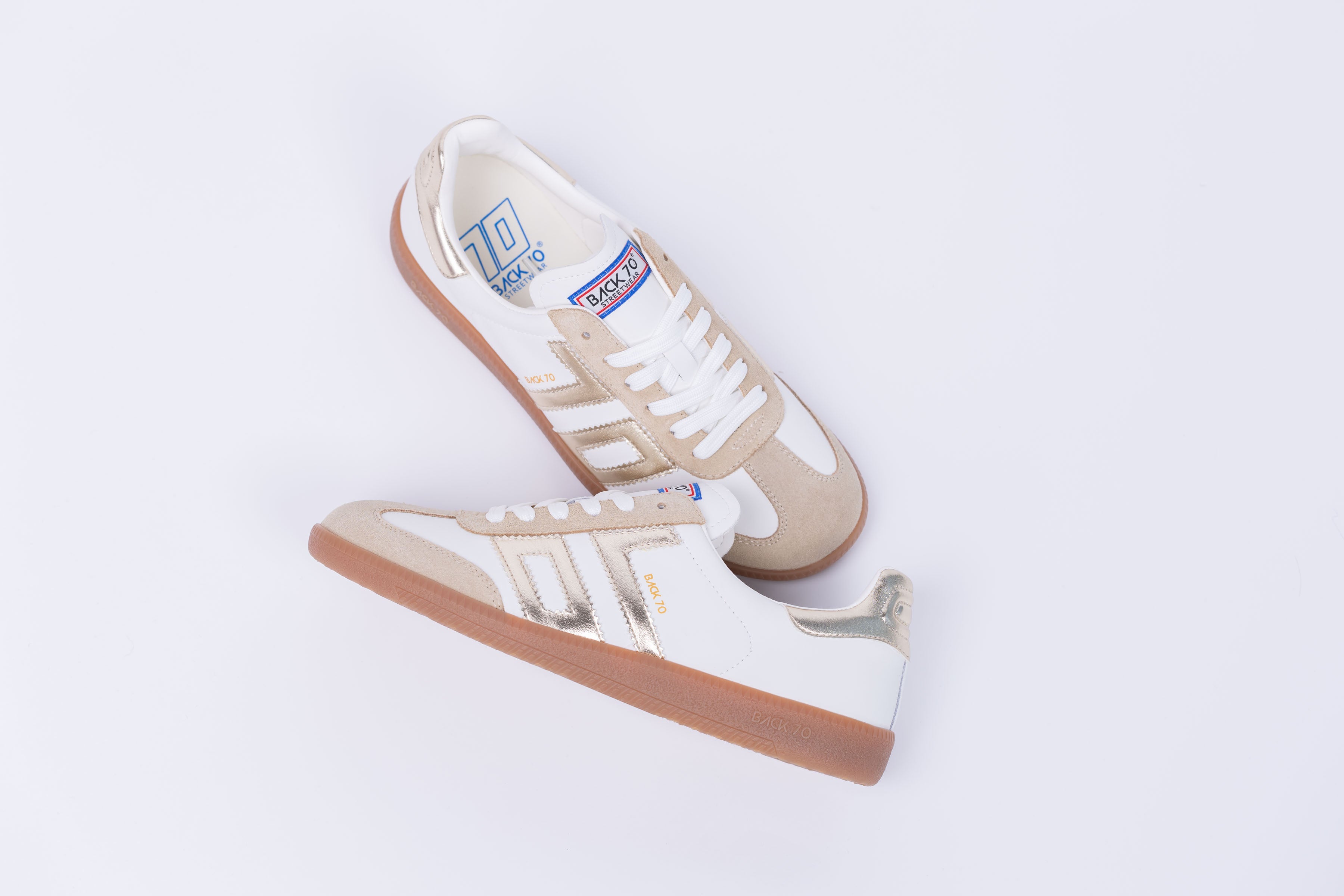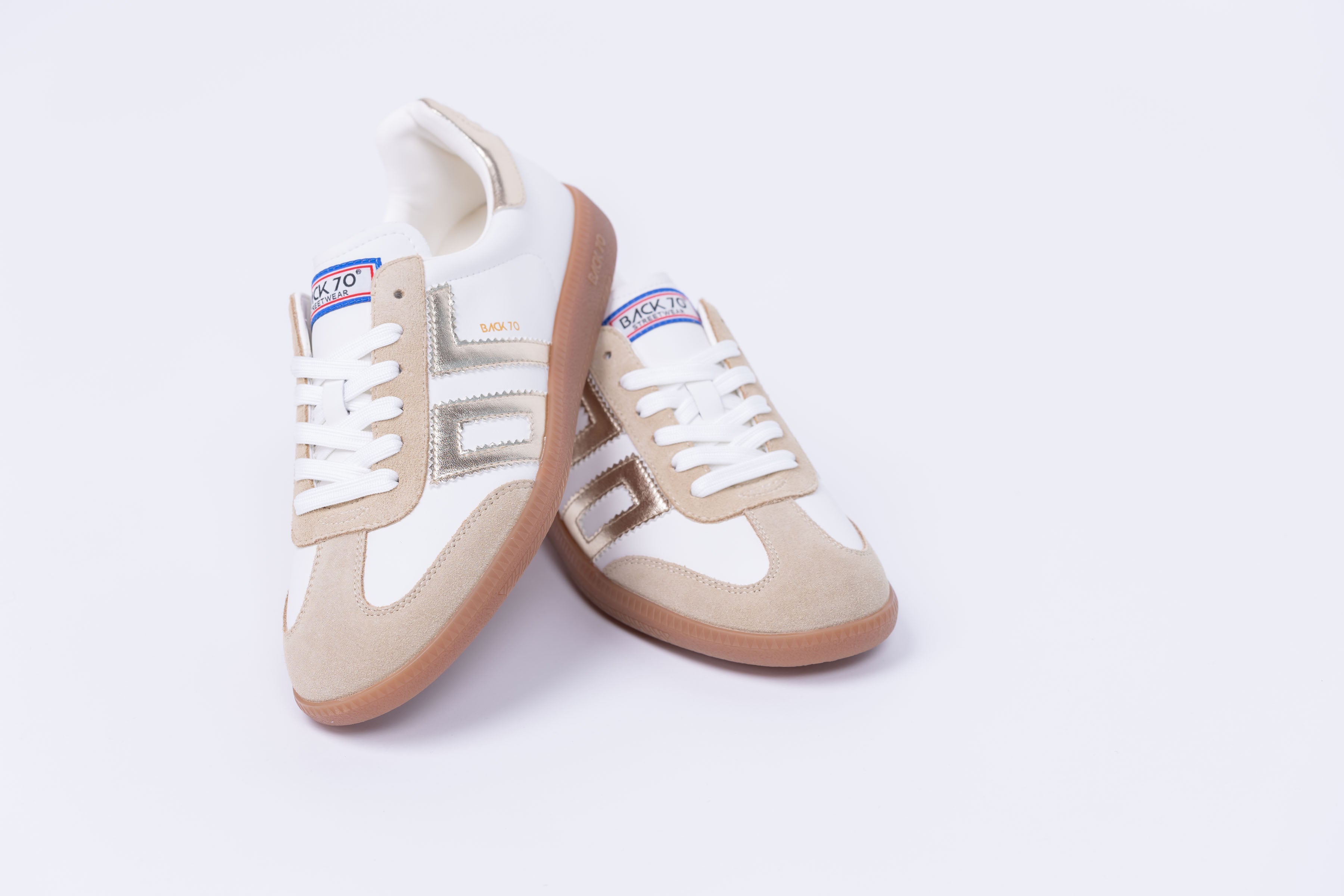 Elevate your street style game with Back 70 Ghost Sneakers in Metallic Beige. Inspired by Italian designs, these retro statement sneakers embody a perfect balance of heritage and modern design. The fresh color palette is sure to redefine your look with a bold, energetic vibe. Don't limit yourself to just one pair!