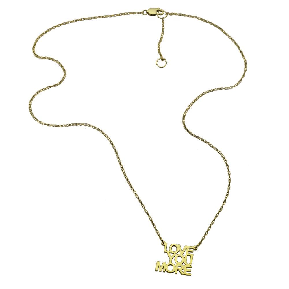 Show your love with the Jennifer Zuener Love You More Mini Necklace. Made with gold and featuring uppercase lettering on an Italian rope chain, this chic pendant is the perfect daily accessory or gift for a loved one. Wear it close to your heart and feel the sentiment every day.