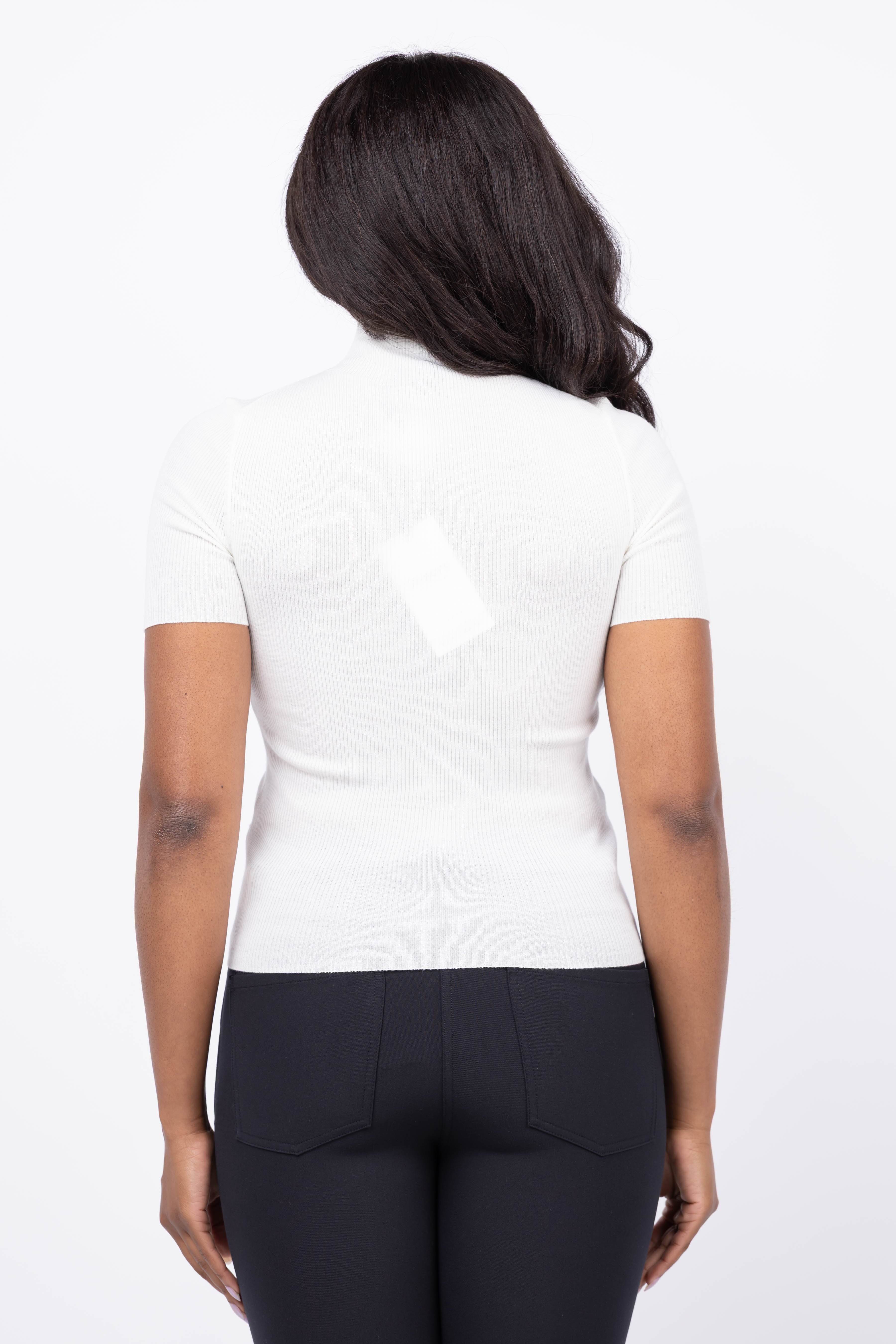 Experience timeless elegance with the Theory Leenda Solid Top in White. Made from soft merino wool, this fitted knit top features a mock neckline and short sleeves, offering a sleek silhouette that enhances your natural shape. Its hip-length cut and pullover style make it an easy staple for effortless layering or standalone wear. Perfect for elevating both casual and polished looks with enduring comfort and style.