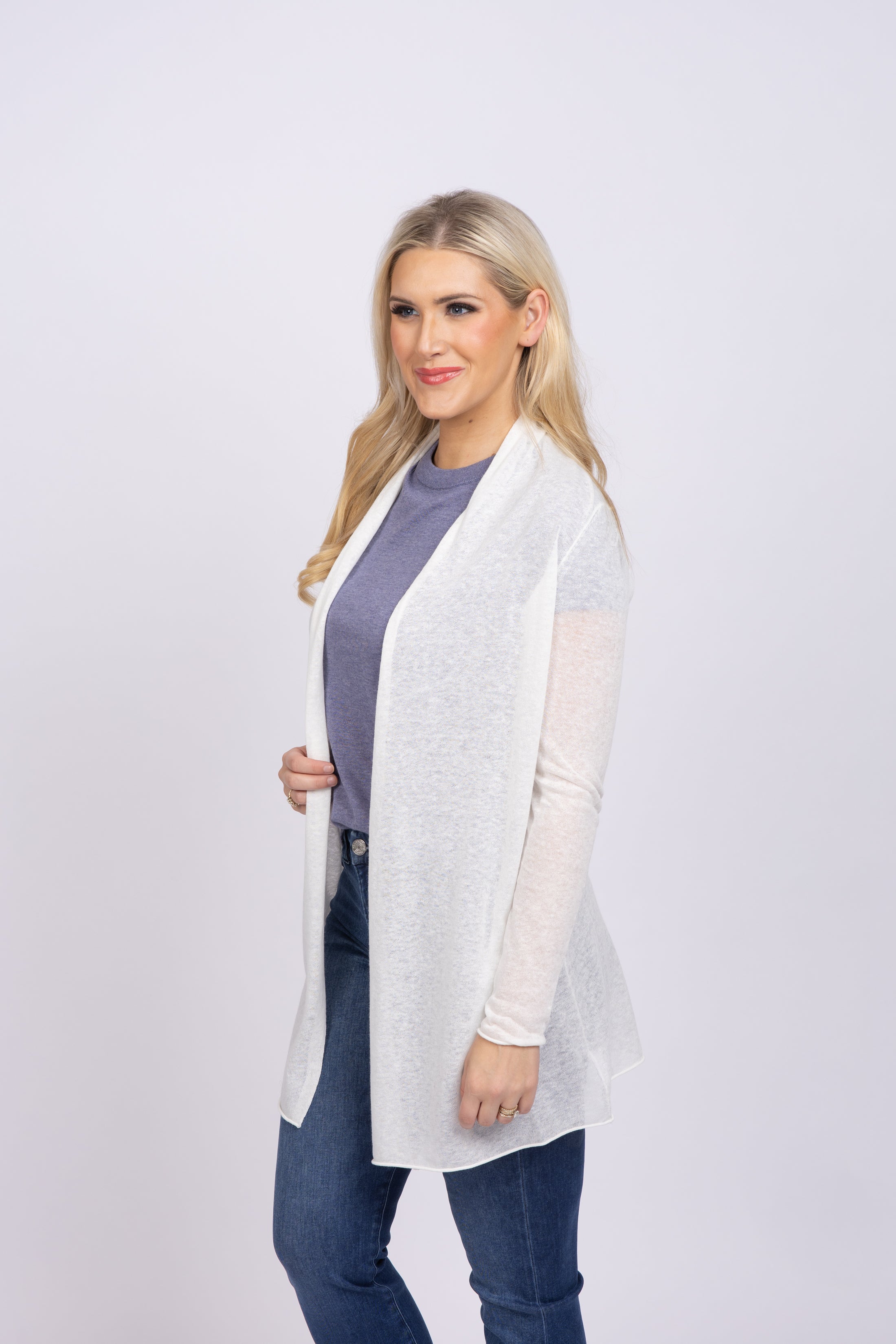 White + Warren Linen Blend Trapeze Cardigan in White