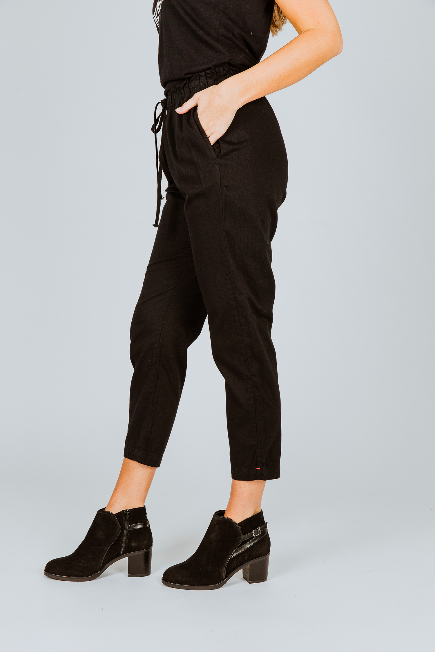 Wear the pants. High-waisted pants from XiRENA, a contemporary line known for its casual, classic pieces. The Rex pant is made from lightweight 100% cotton in black and features a straight, loose leg, side slit pockets and a gathered elastic waist with ruffled trim.