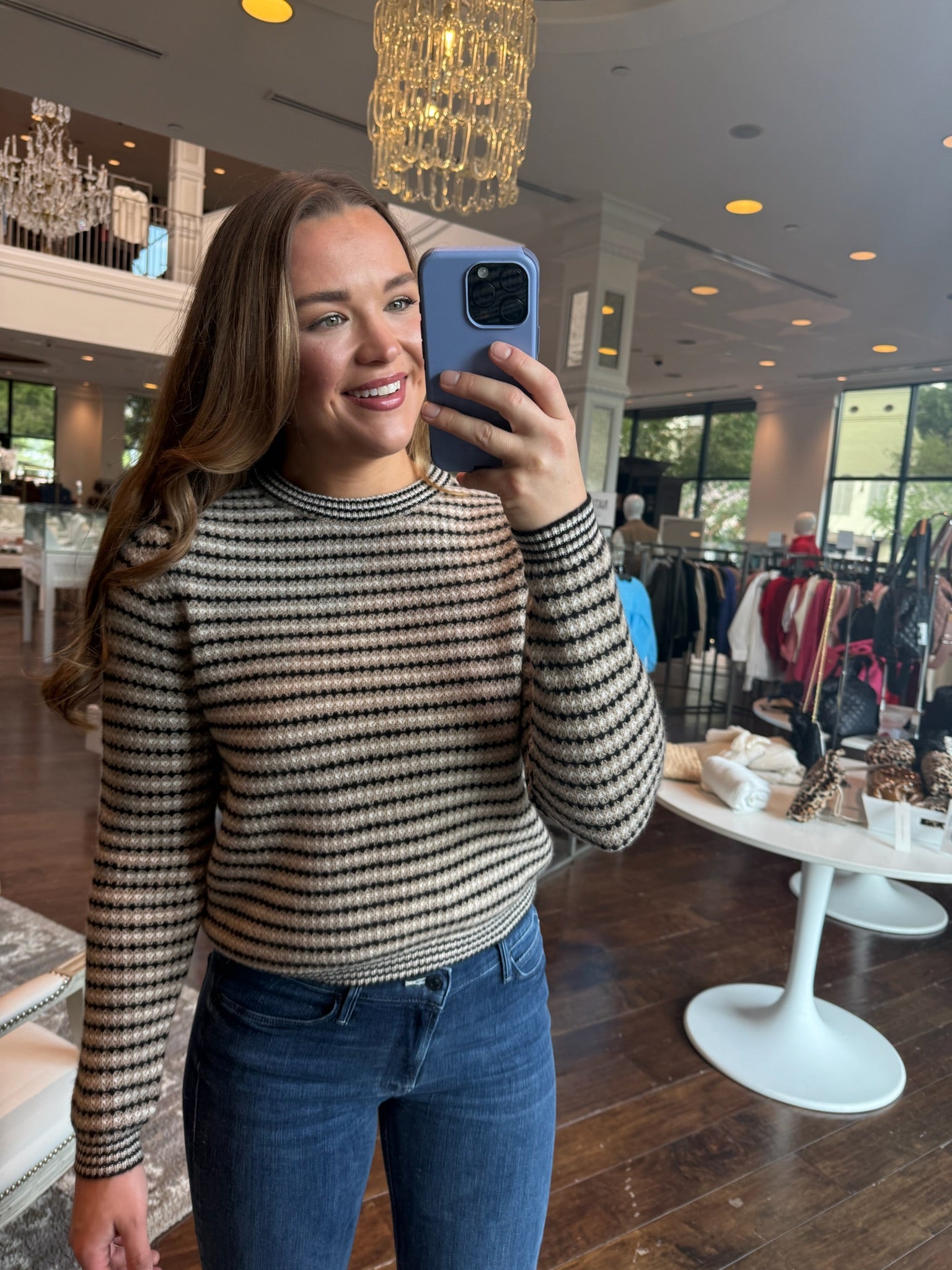 Experience timeless comfort with the White + Warren Cashmere Textured Stripe Crew in Neutral Combo. Crafted from luxurious cashmere, this sweater offers a soft, breathable feel perfect for layering or wearing alone. Its subtle striped texture and neutral tones make it a versatile wardrobe staple that complements any outfit. Loved by many, this piece blends effortless style with enduring quality, making it everyone's favorite go-to sweater brand. Elevate your everyday look with unmatched warmth and sophistication.