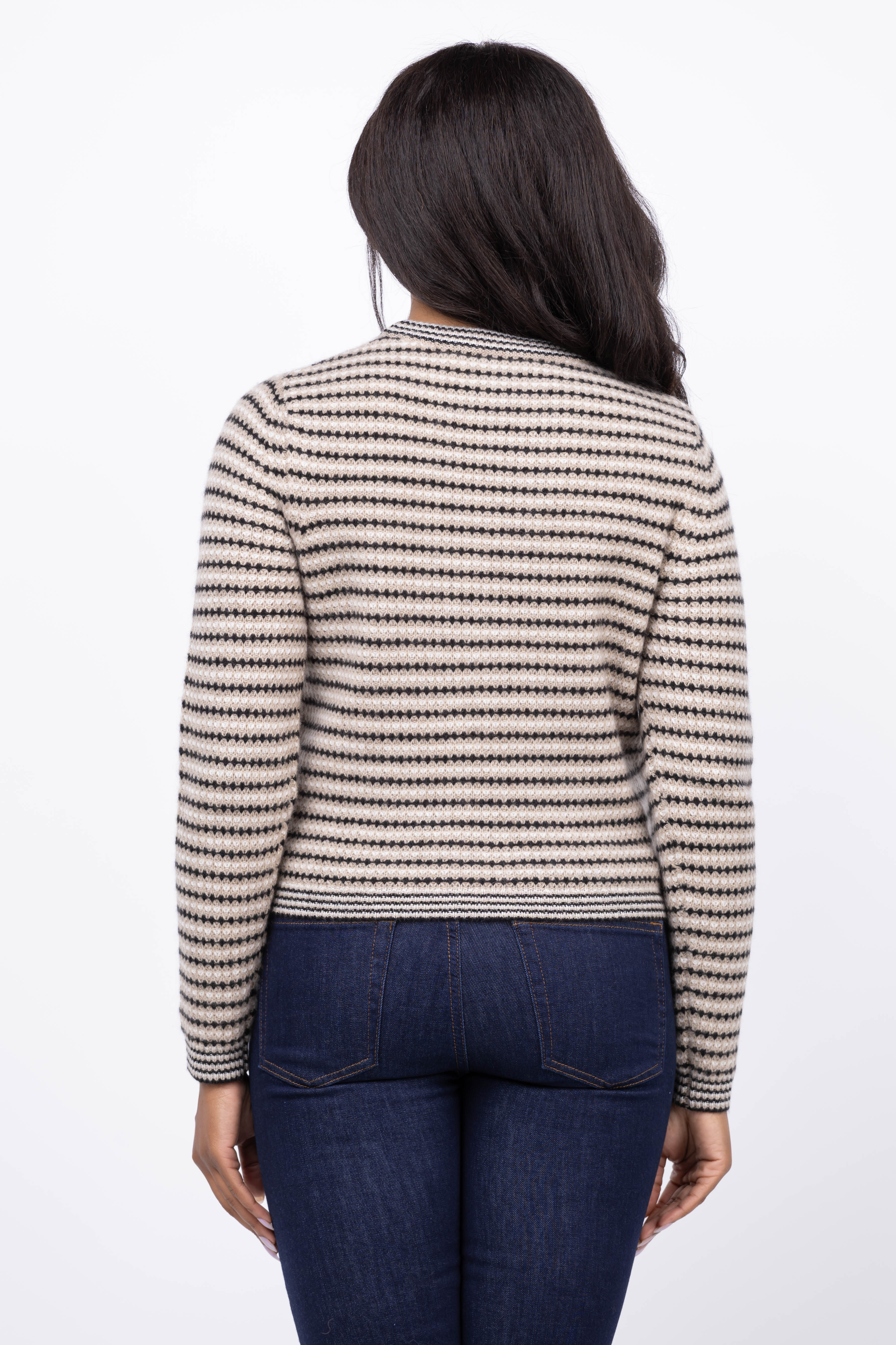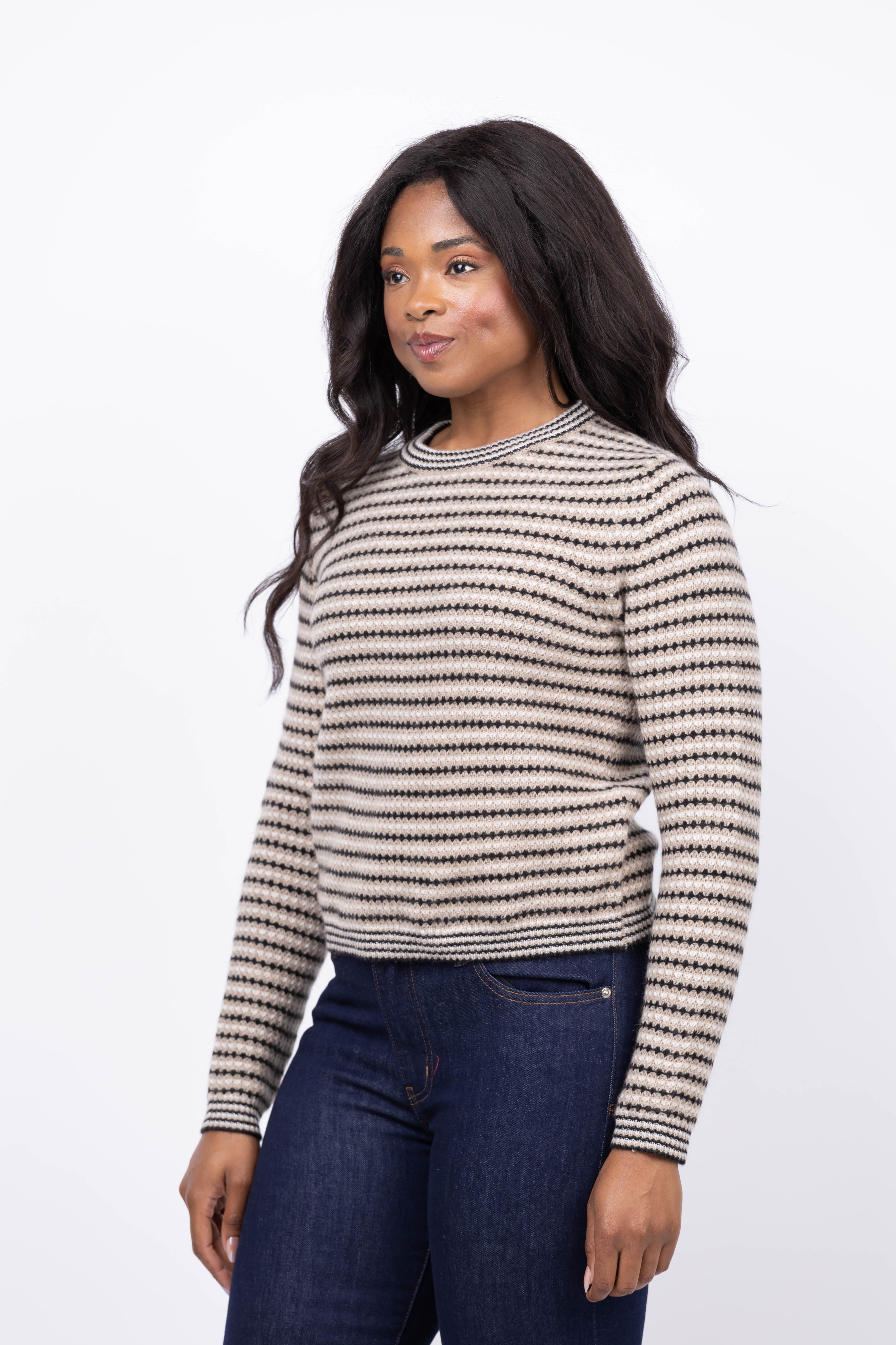 White + Warren Cashmere Textured Stripe Crew in Neutral Combo