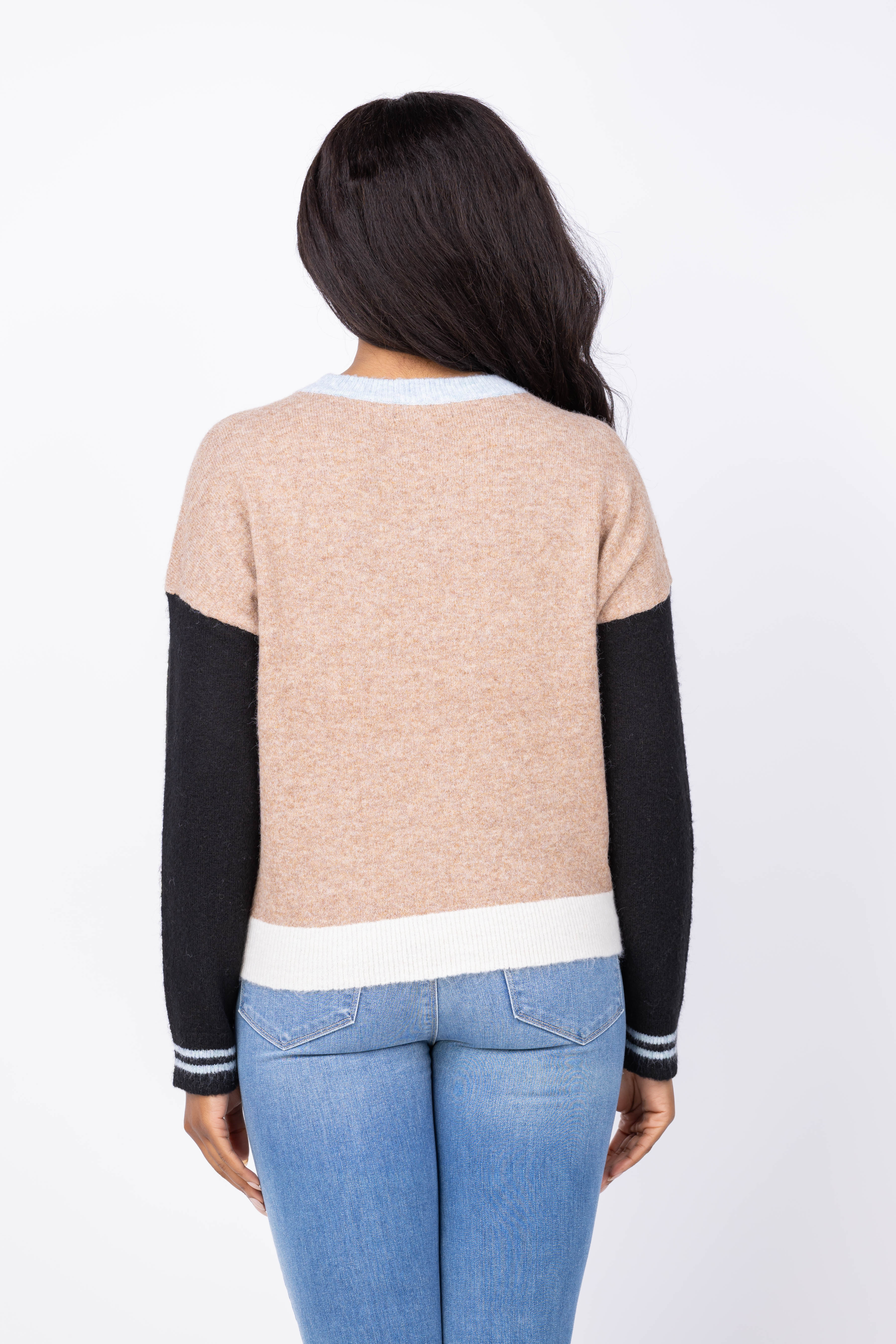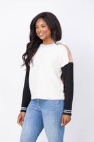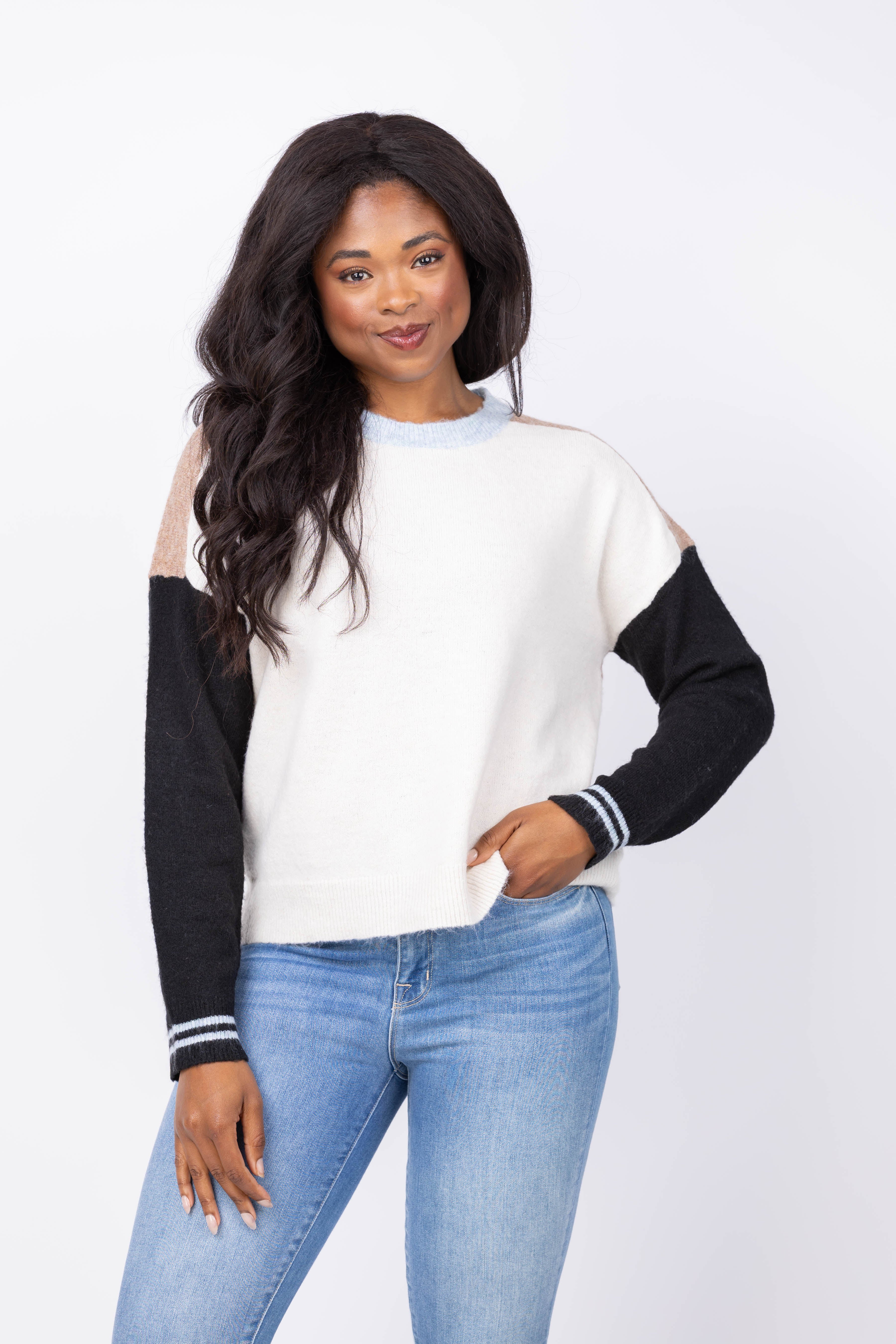 Central Park West Ash Color Blocked Crewneck in Ivory Multi