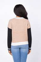 Elevate your wardrobe with the Central Park West Ash Color Blocked Crewneck in Ivory Multi. This sweater's eye-catching color-block design pairs perfectly with its cozy knit fabric, delivering comfort without sacrificing style. The crew neckline and long sleeves with striped cuffs create a clean, modern silhouette, making it an effortless addition that revitalizes any outfit with a fresh, trendy edge.