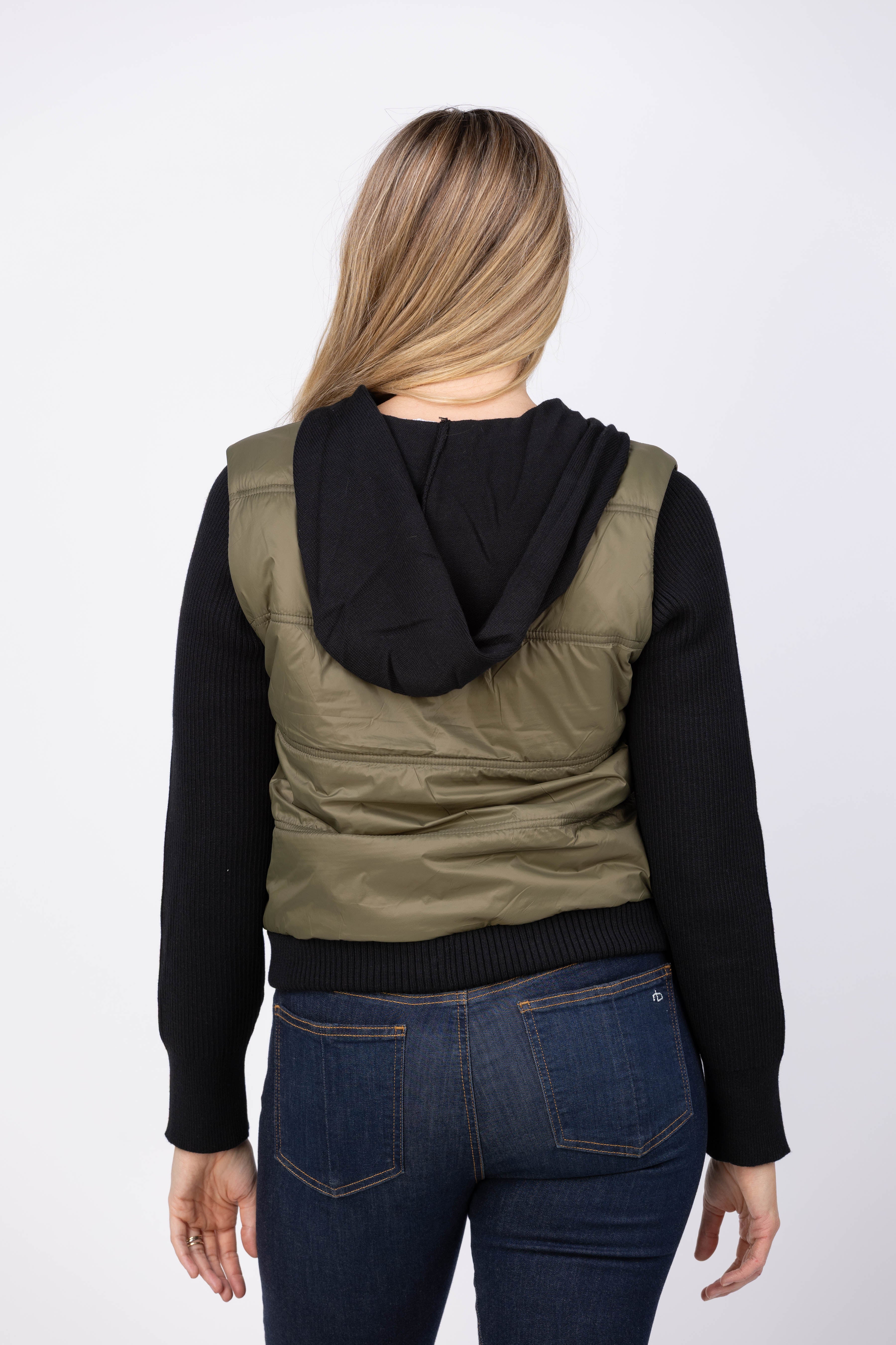 Central Park West Brady Hooded Sweater Sleeve Jacket in Fatigue Green