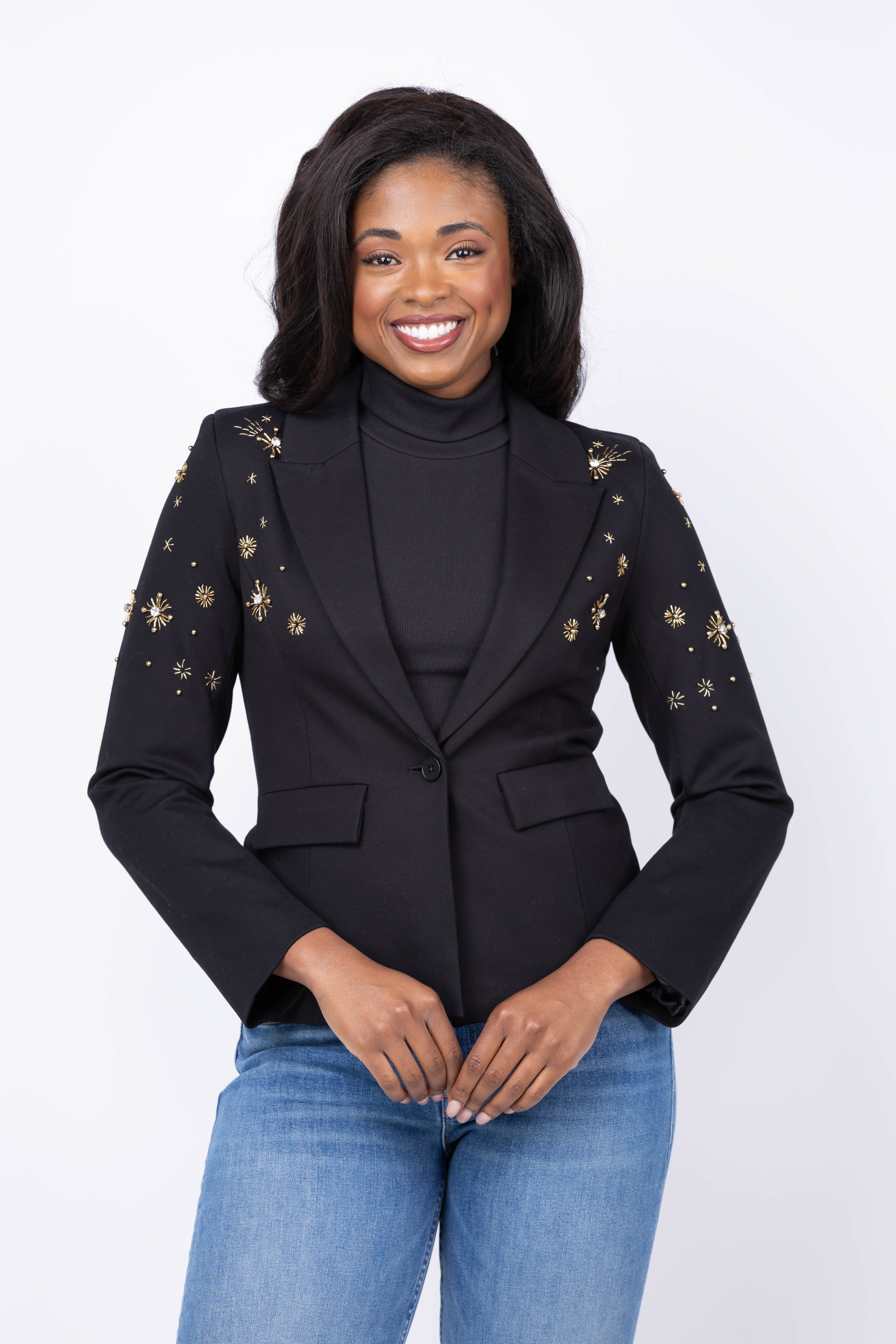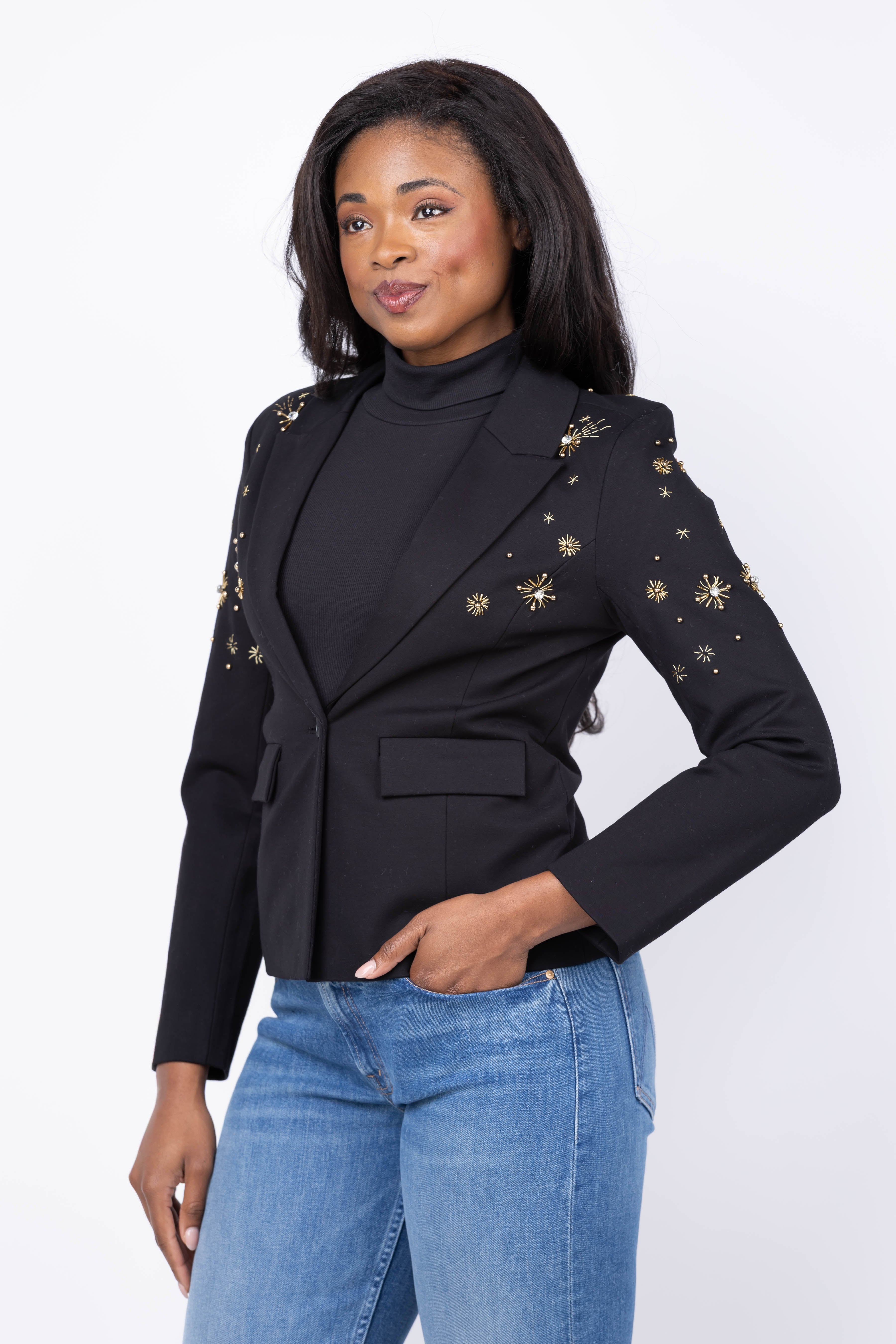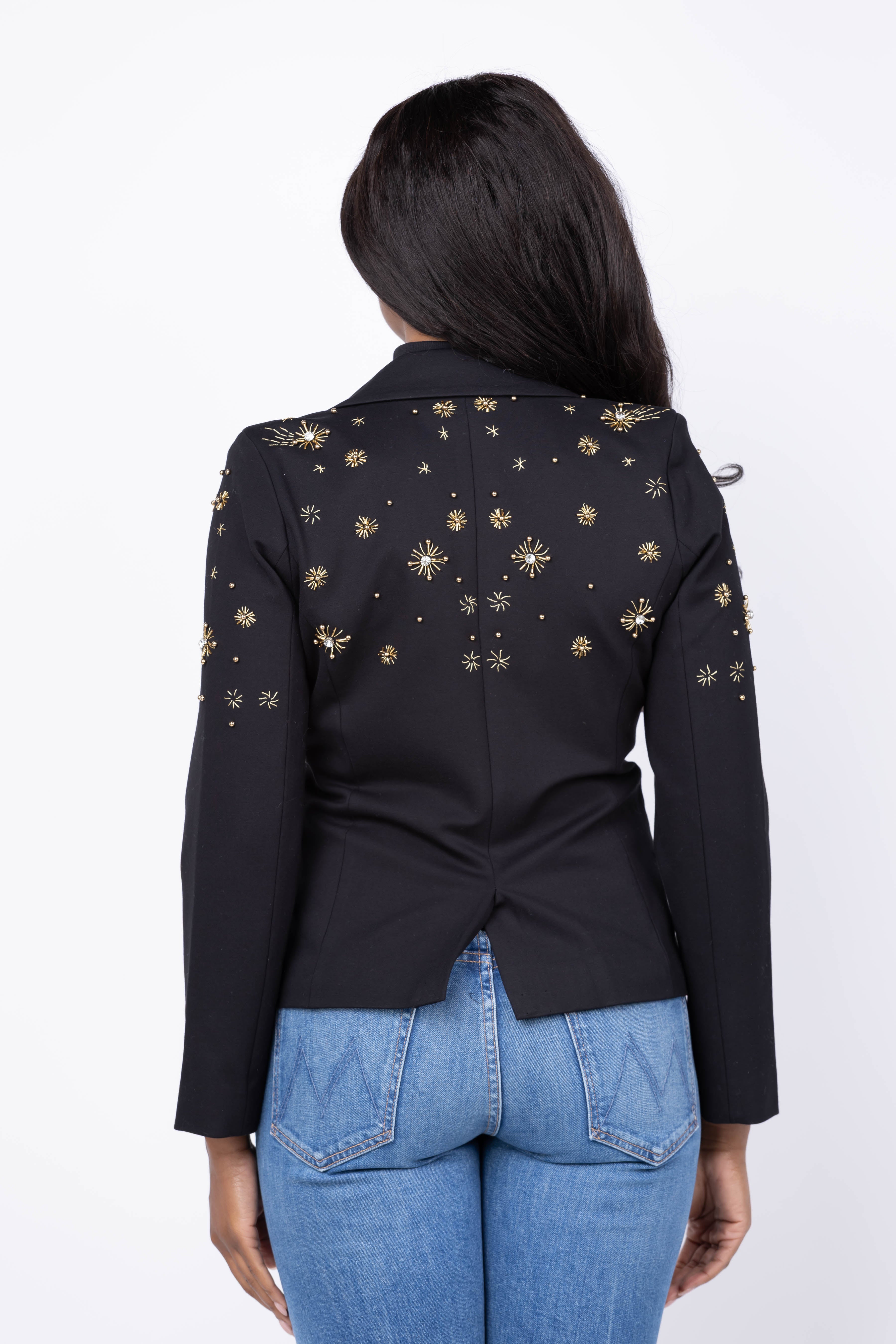 Central Park West Crystal Embellished Tuxedo Jacket in Black