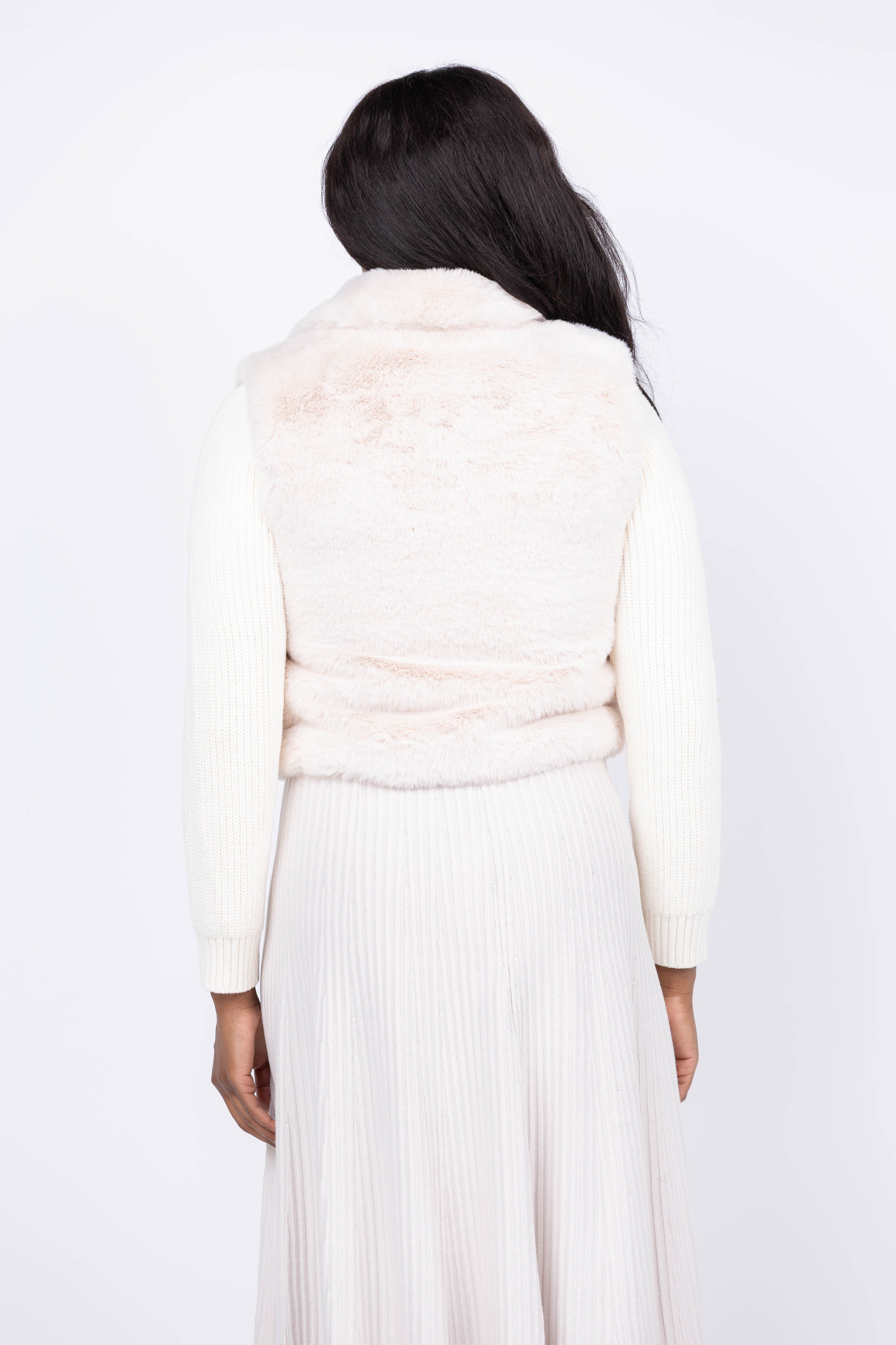 Central Park West Gia Cropped Fur Sweater in Ivory