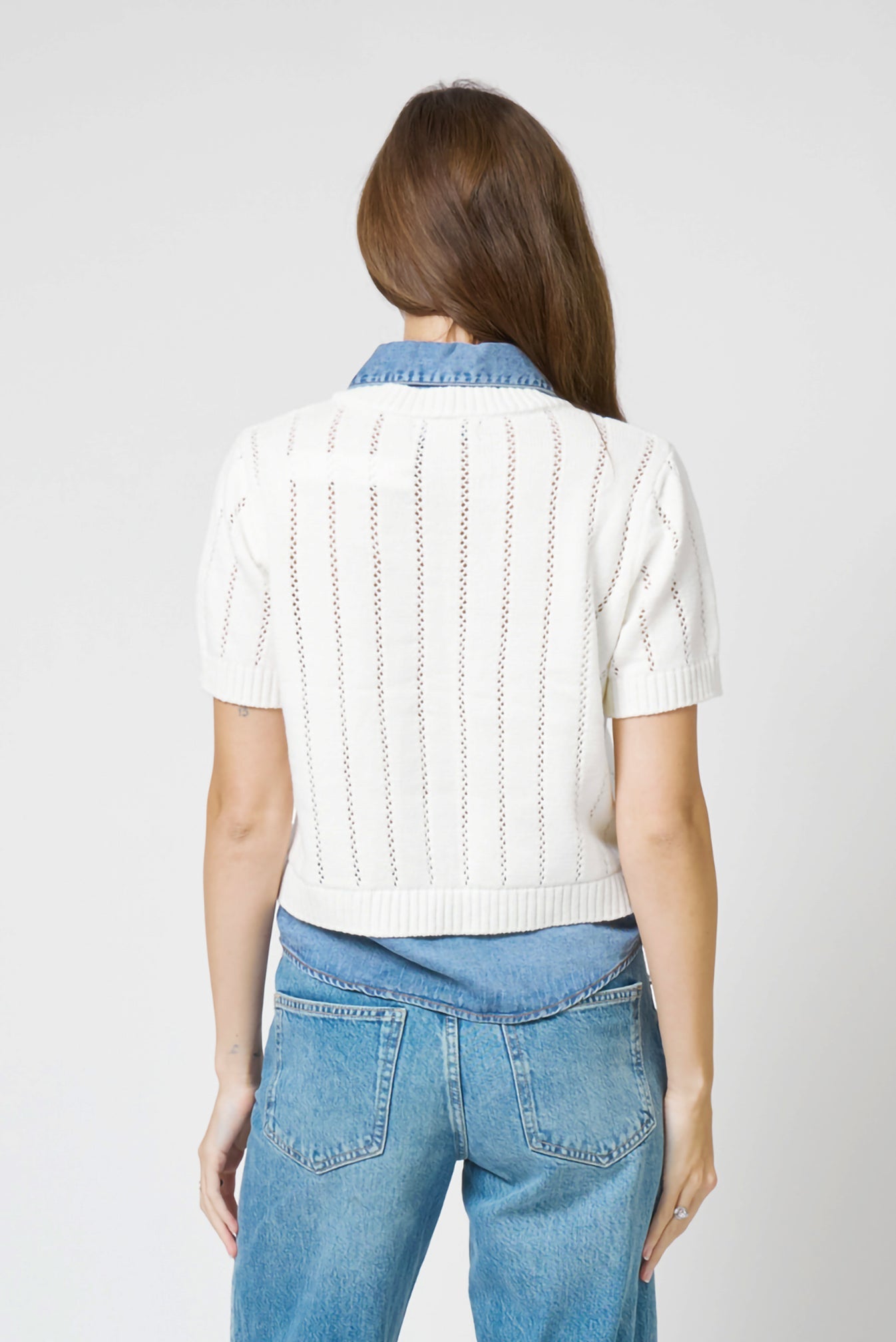 Elevate your everyday wardrobe with this versatile short-sleeve knit top from Central Park West. The delicate pointelle texture adds visual interest while the flattering V-neckline creates a refined silhouette. Crafted from breathable Tencel, this piece offers a soft, lightly tailored fit that works beautifully on its own or layered under jackets and cardigans. The ribbed hem ensures a polished finish that moves seamlessly from season to season. Perfect for those seeking effortless style with understated sophistication.