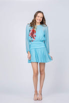The Billie Dress captures an enchanting balance of youthful vitality and romantic elegance. Constructed from luxuriously lightweight 100% silk chiffon, this stunning piece features a softly gathered bodice paired with blouson sleeves that elegantly taper into buttoned cuffs. A strategically placed ruched waistband gently defines your silhouette while the tiered skirt cascades with fluid, graceful movement. The back reveals an exquisite single-button keyhole detail that adds an unexpected touch of sophistication. Perfect for elevated daytime occasions or special celebrations, the Billie Dress delivers effortless charm and refined femininity with every wear.