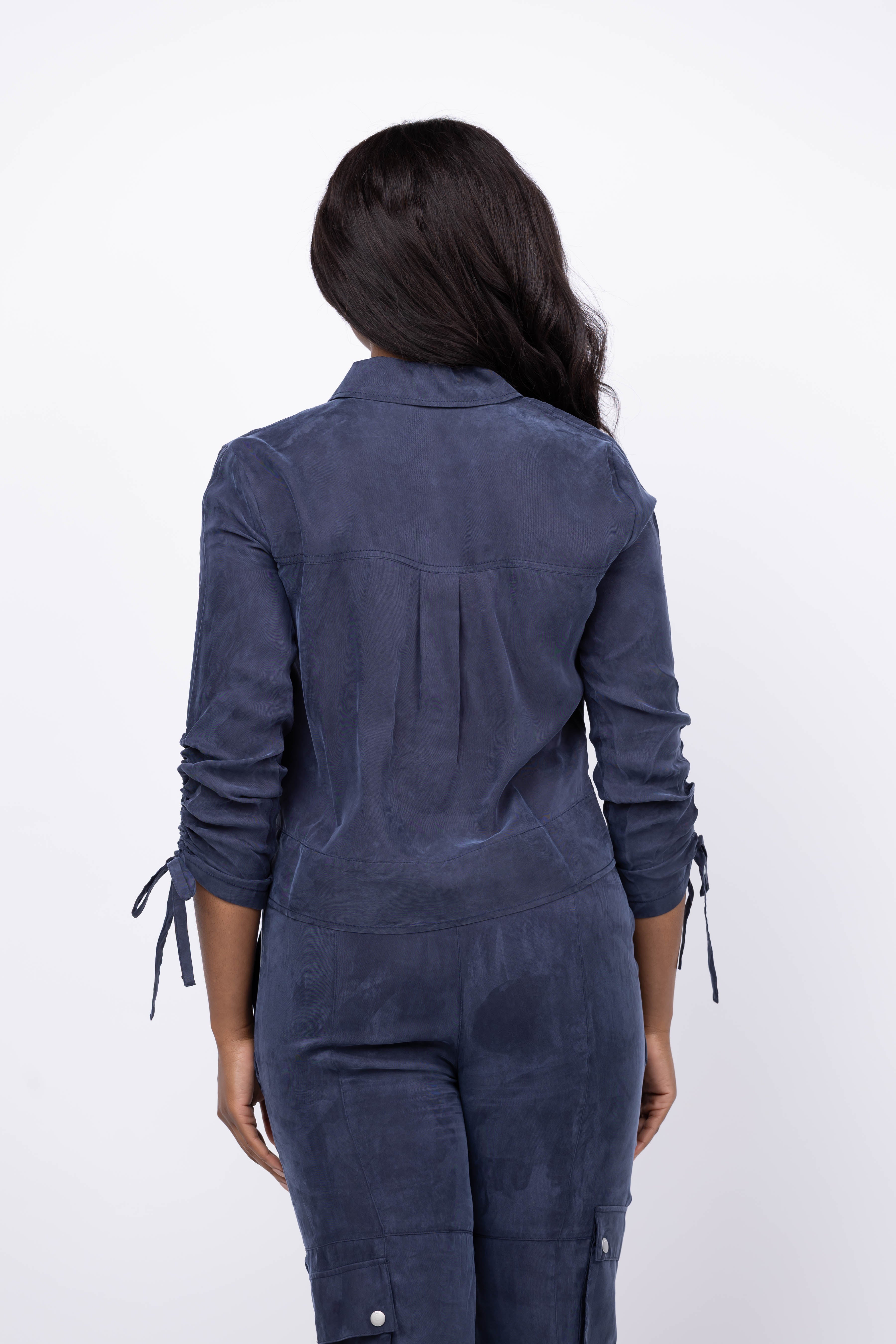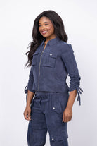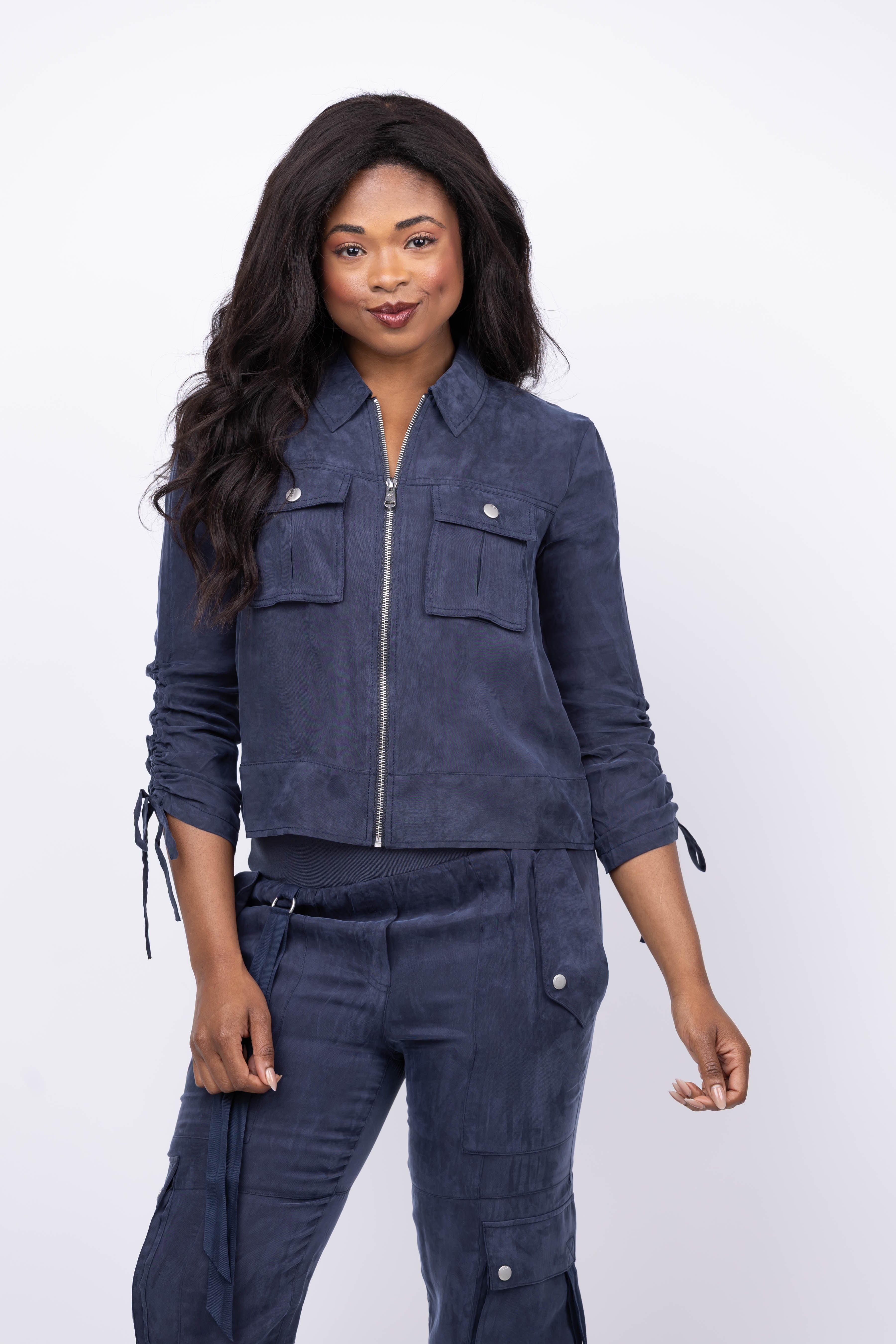 The Cinq à Sept Washed Twill Dale Jacket in Navy offers exceptional softness with its washed fabric, delivering casual comfort and style. Featuring a front zip closure and spread collar, this jacket is detailed with three-quarter sleeves finished with ribbon tie cuffs for a feminine touch. Chest snap-flap patch pockets add practical flair, making it an effortlessly chic layering piece for any season.