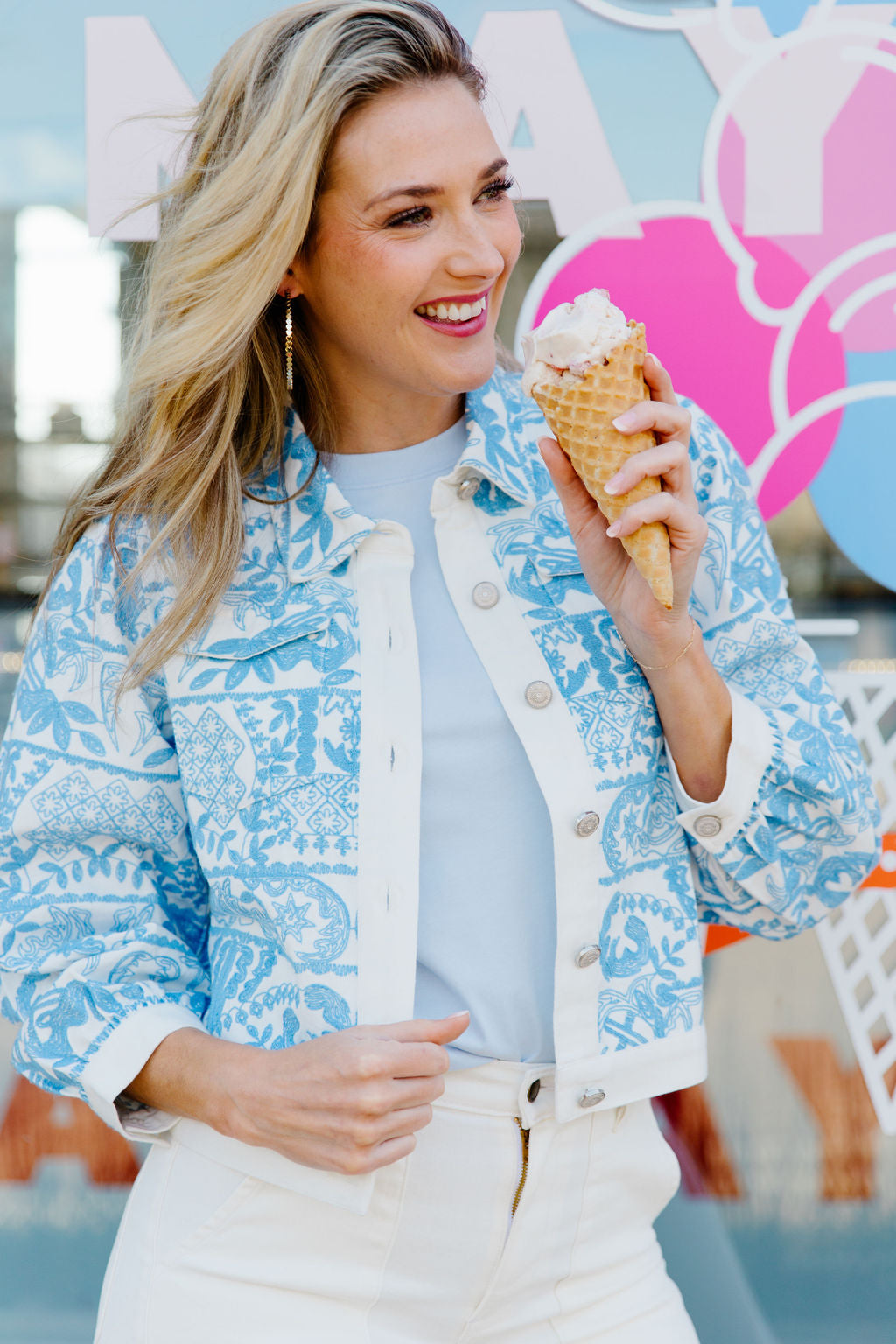 Love The Label Byron Embroidered Jacket inIvory/Blue