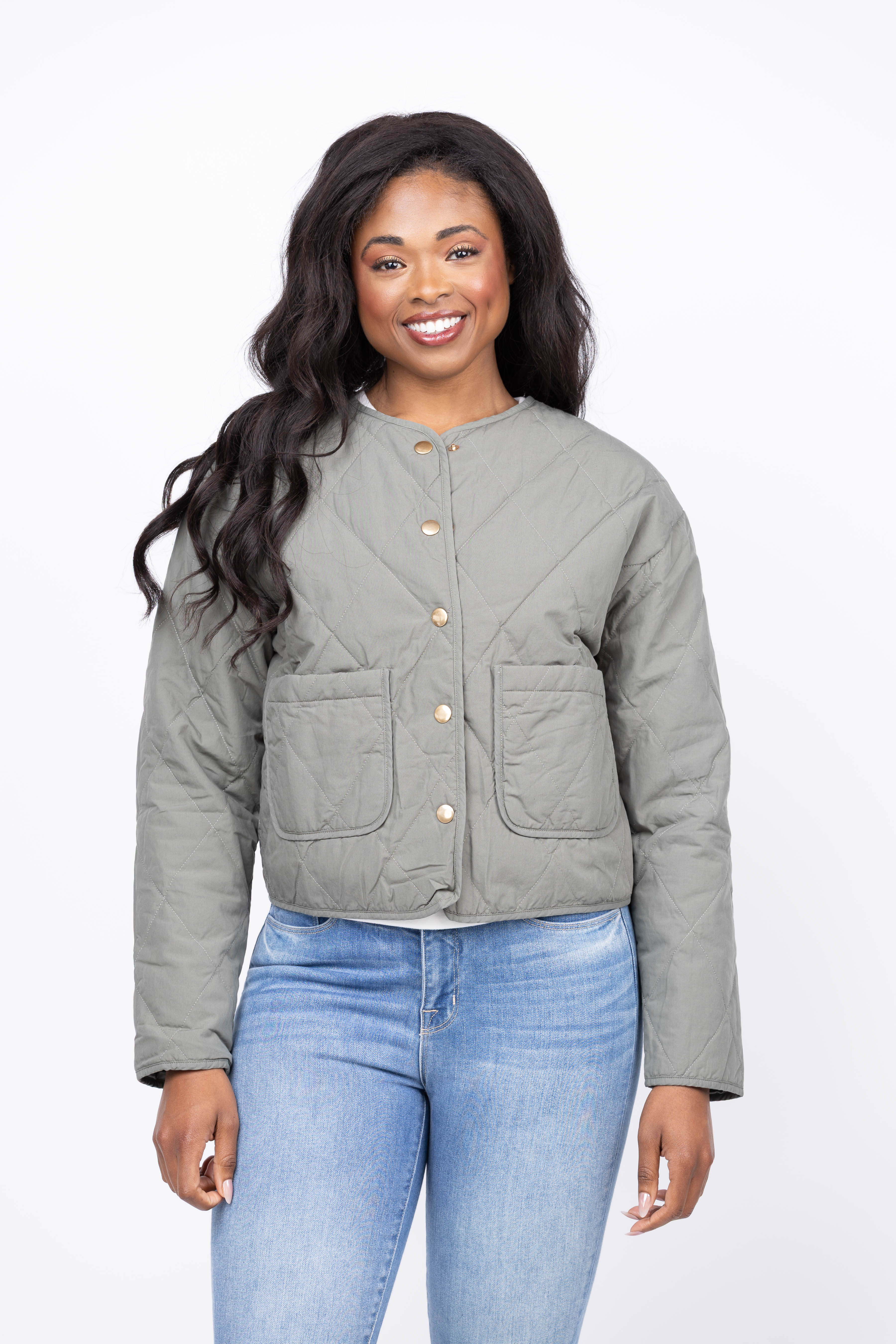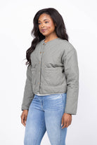 The NATION LOS ANGELES Aspen Quilted Jacket in Castor Grey is your go-to layer for crisp, breezy days. Crafted from 100% cotton, this jacket features a boxy, cropped fit that pairs effortlessly with any outfit. With convenient pockets and button snaps down the center, it combines practical details with timeless style, making it an essential addition to your wardrobe.