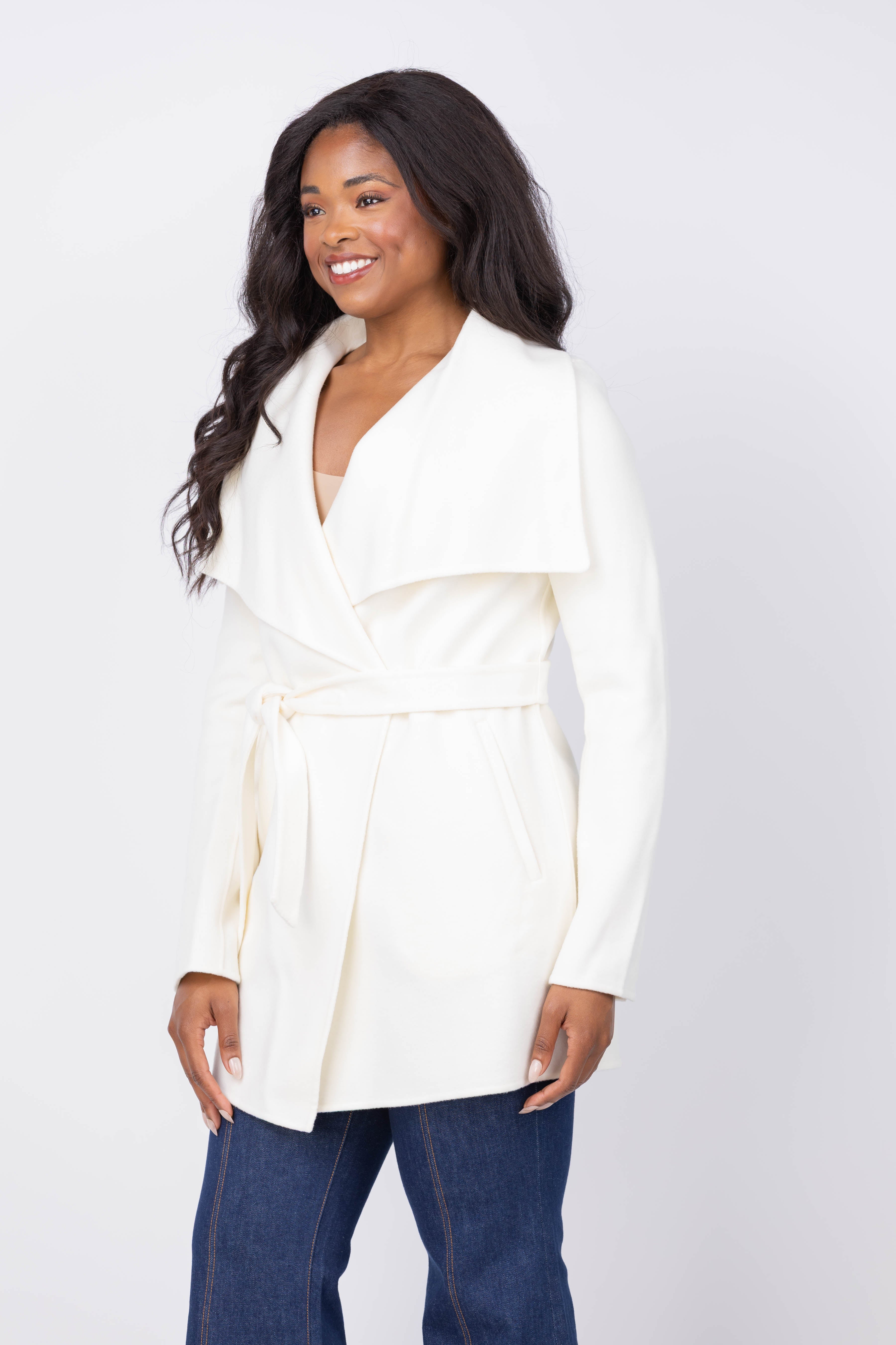 SOIA & KYO Bridgette-U Double Face Wool Wrap Coat in Powder