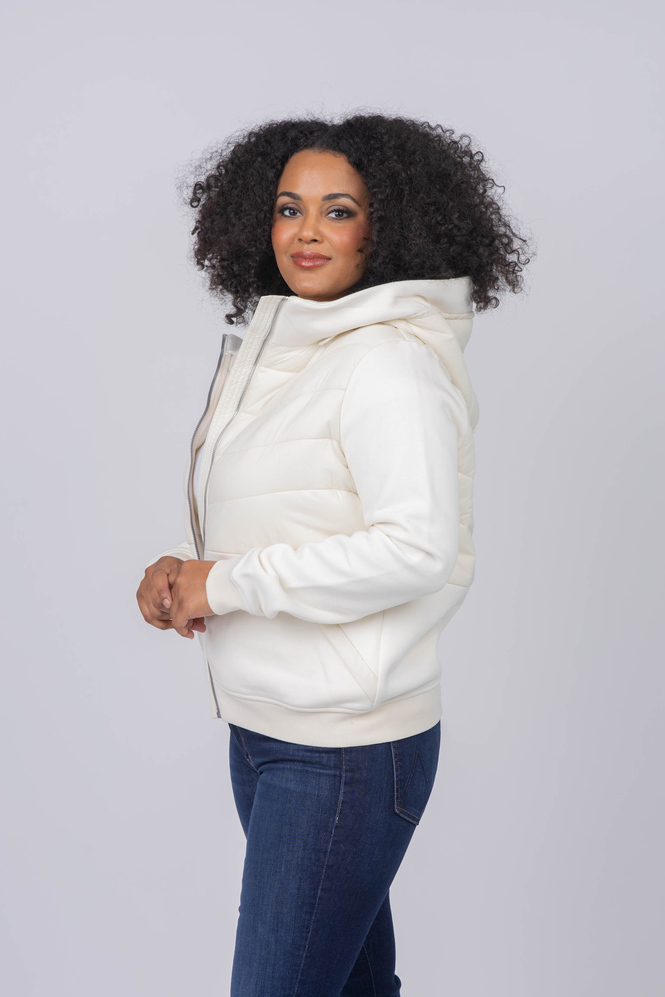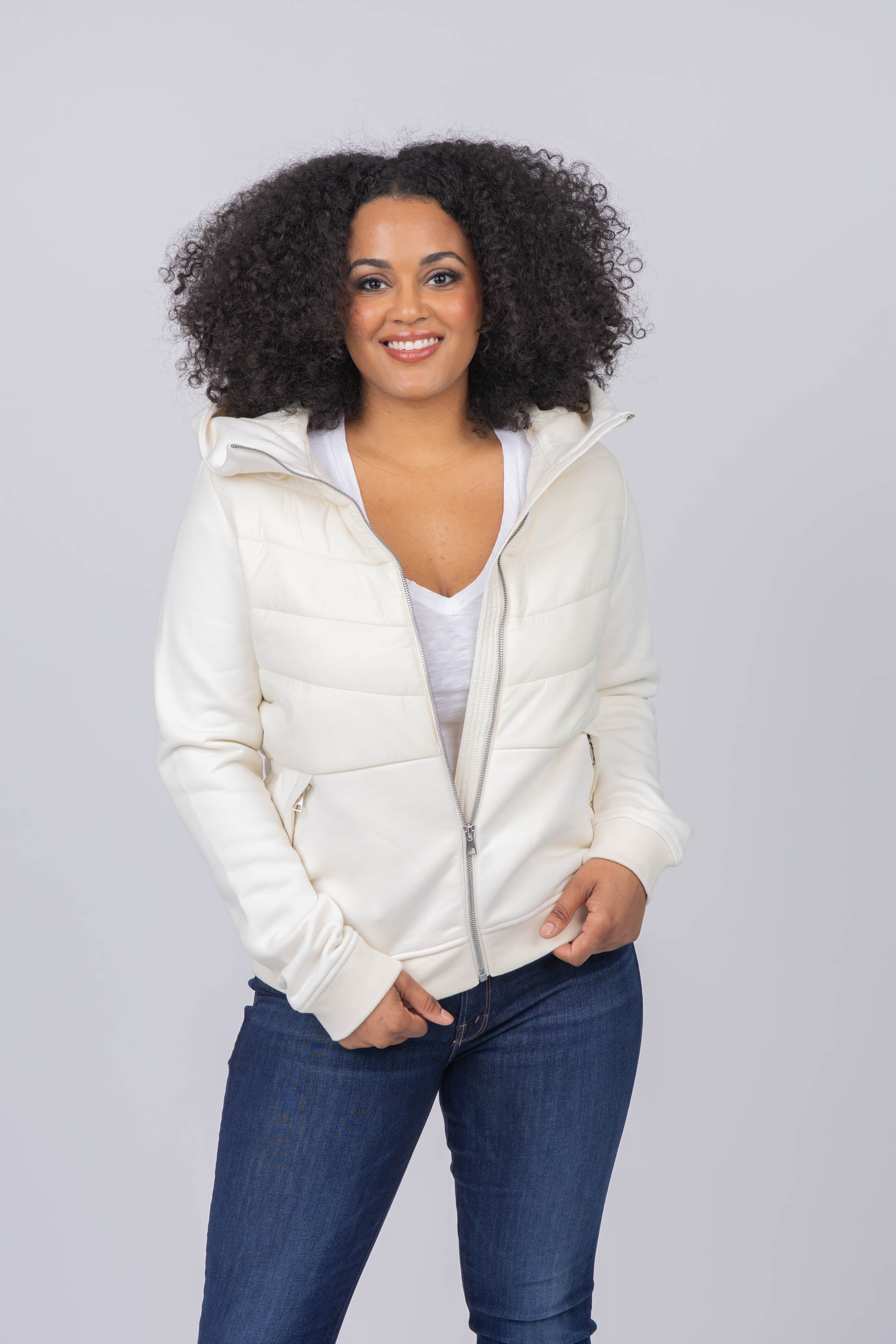 The SARA by SOIA & KYO is not your average bomber. Featuring a nylon puffer upper body with a fleece lower body + sleeves, this hybrid jacket was born for shoulder weather. Plus, it has an added a hood with storm visor for extra protection on blustery days.