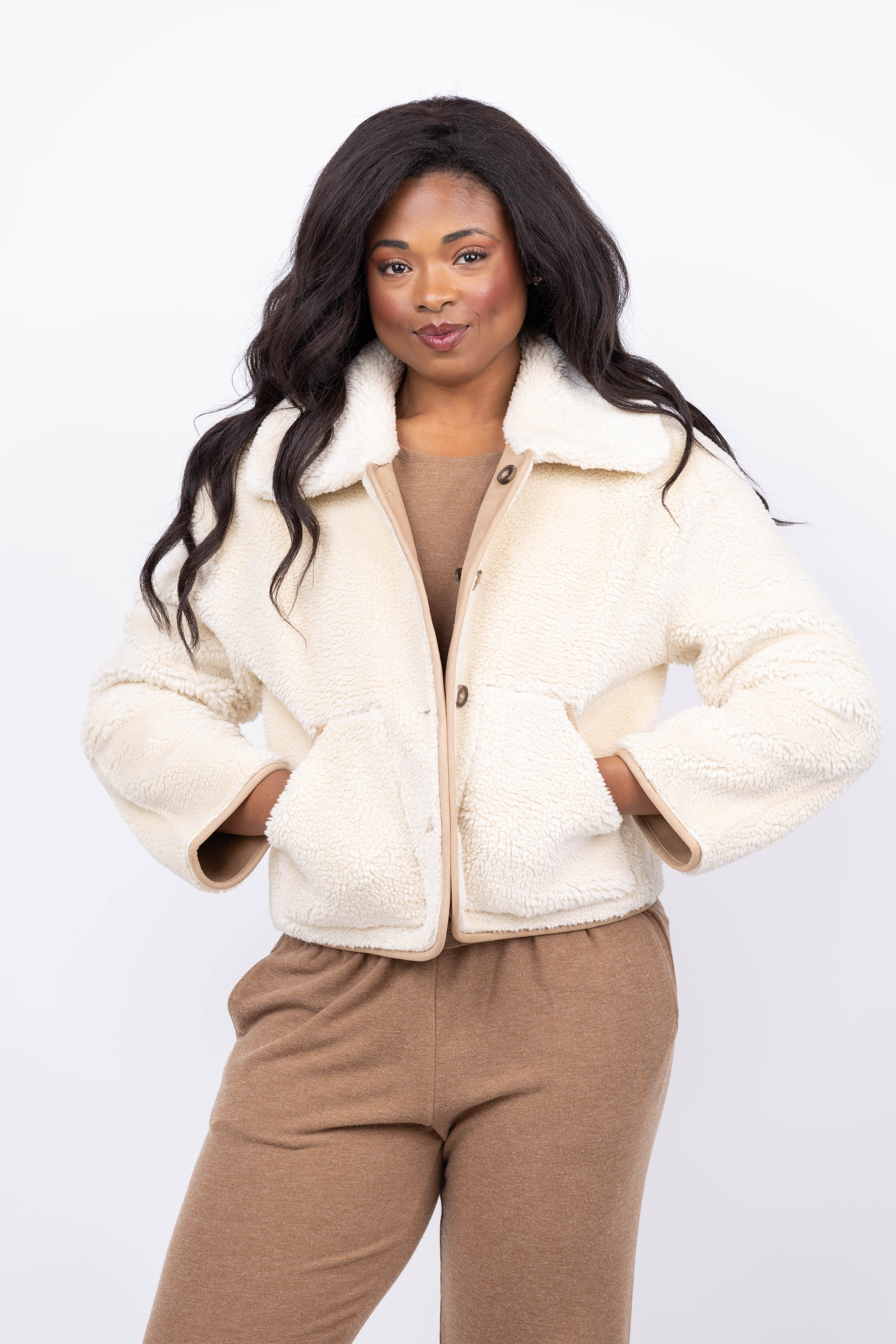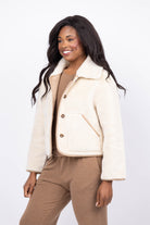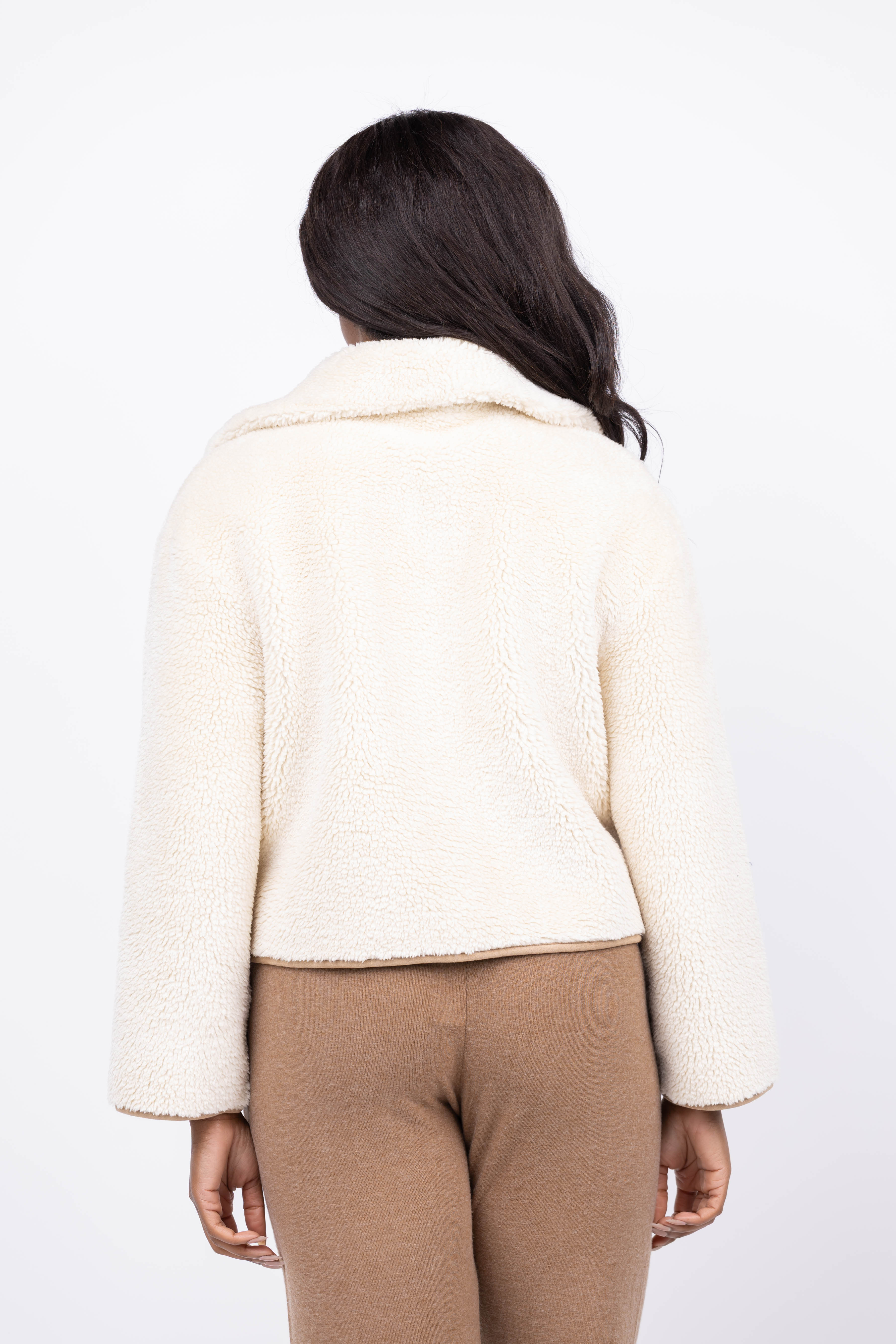 This Velvet by Graham & Spencer Amara Jacket in Sand is a stylish and adaptable layering essential. Its reversible design offers two looks in one: plush faux sherpa for warmth and softness, and sleek faux suede for a polished finish. Featuring convenient front pouch pockets on both sides, it blends practicality with effortless comfort. Perfect for elevating any outfit while keeping you cozy, this slightly cropped jacket is a versatile addition to your wardrobe.
