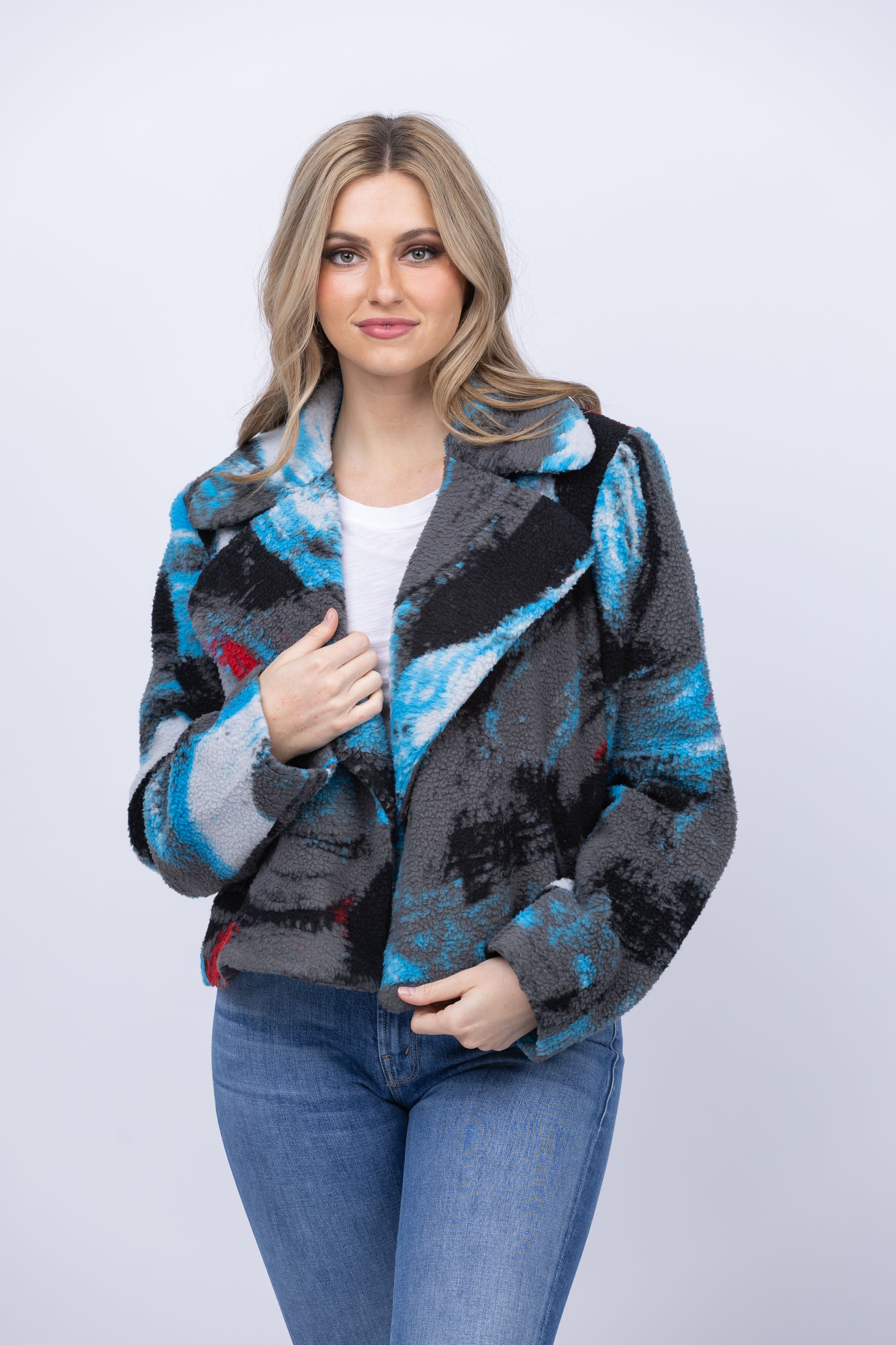 Make a statement in the Ruthina Knit Jacquard Coat! Bold and boxy, this fleece jacquard coat has an oversized collar, a slightly cropped length, and can be worn open or closed. Like a modern work of art, this coat will leave you feeling enthusiastic and inspired!