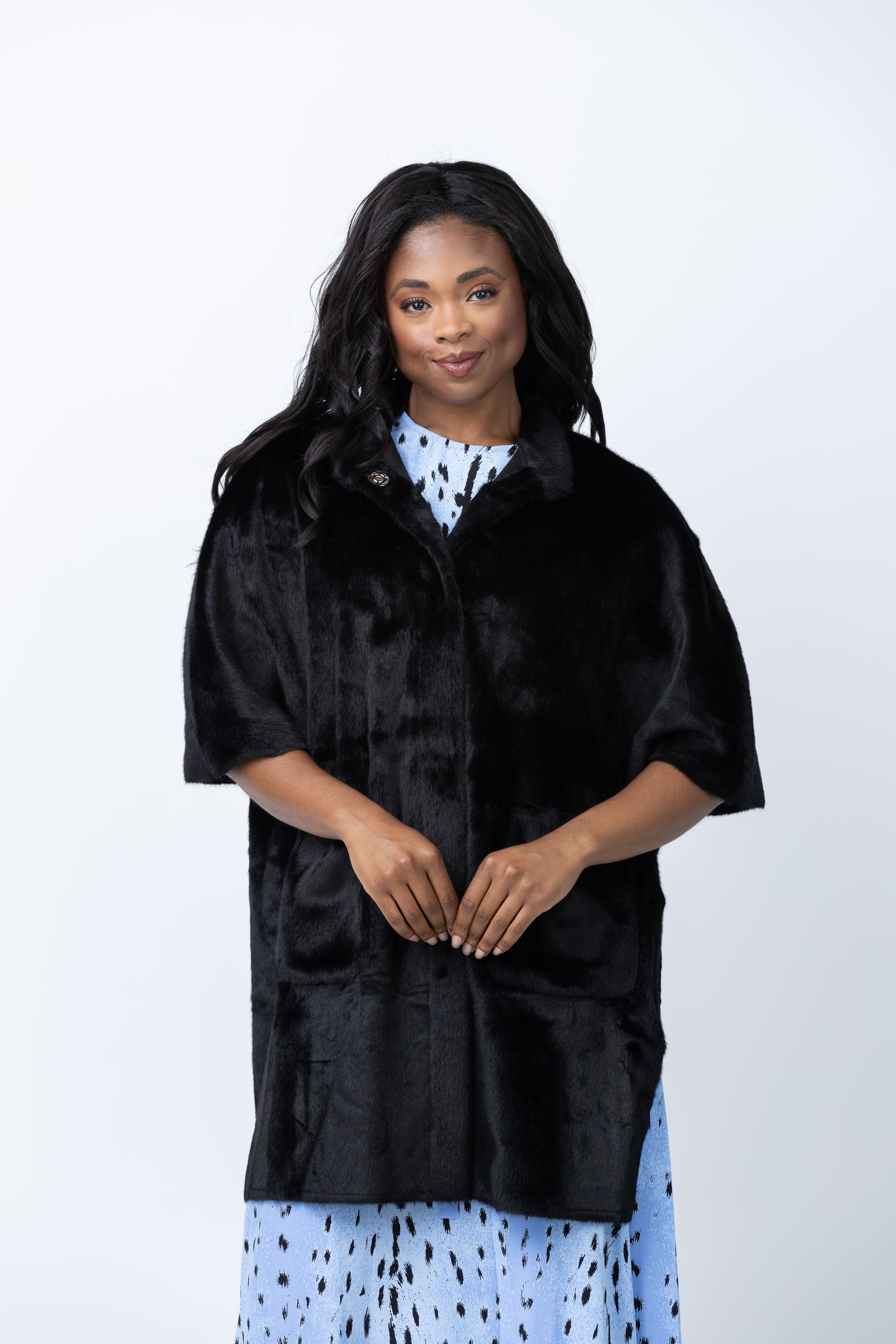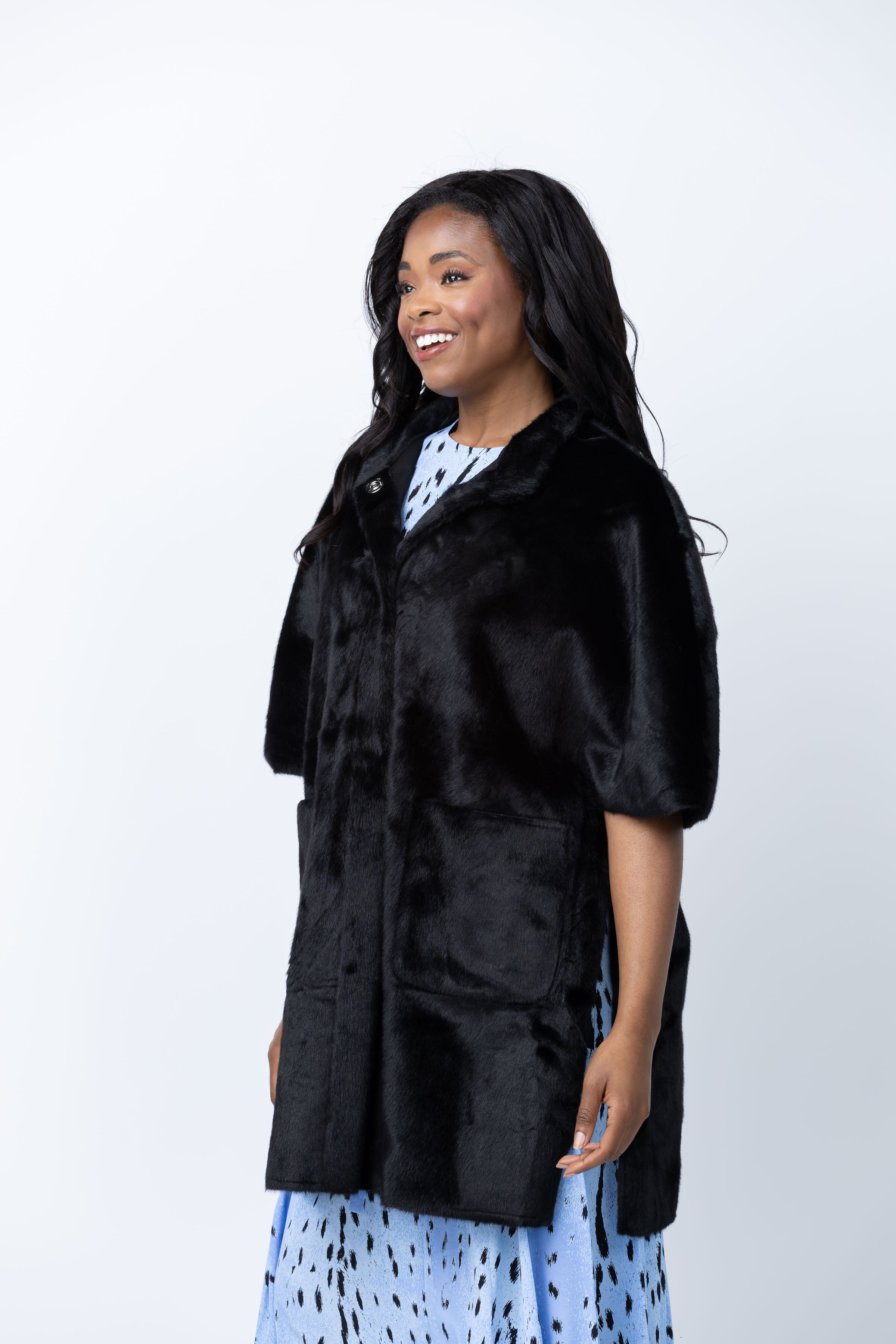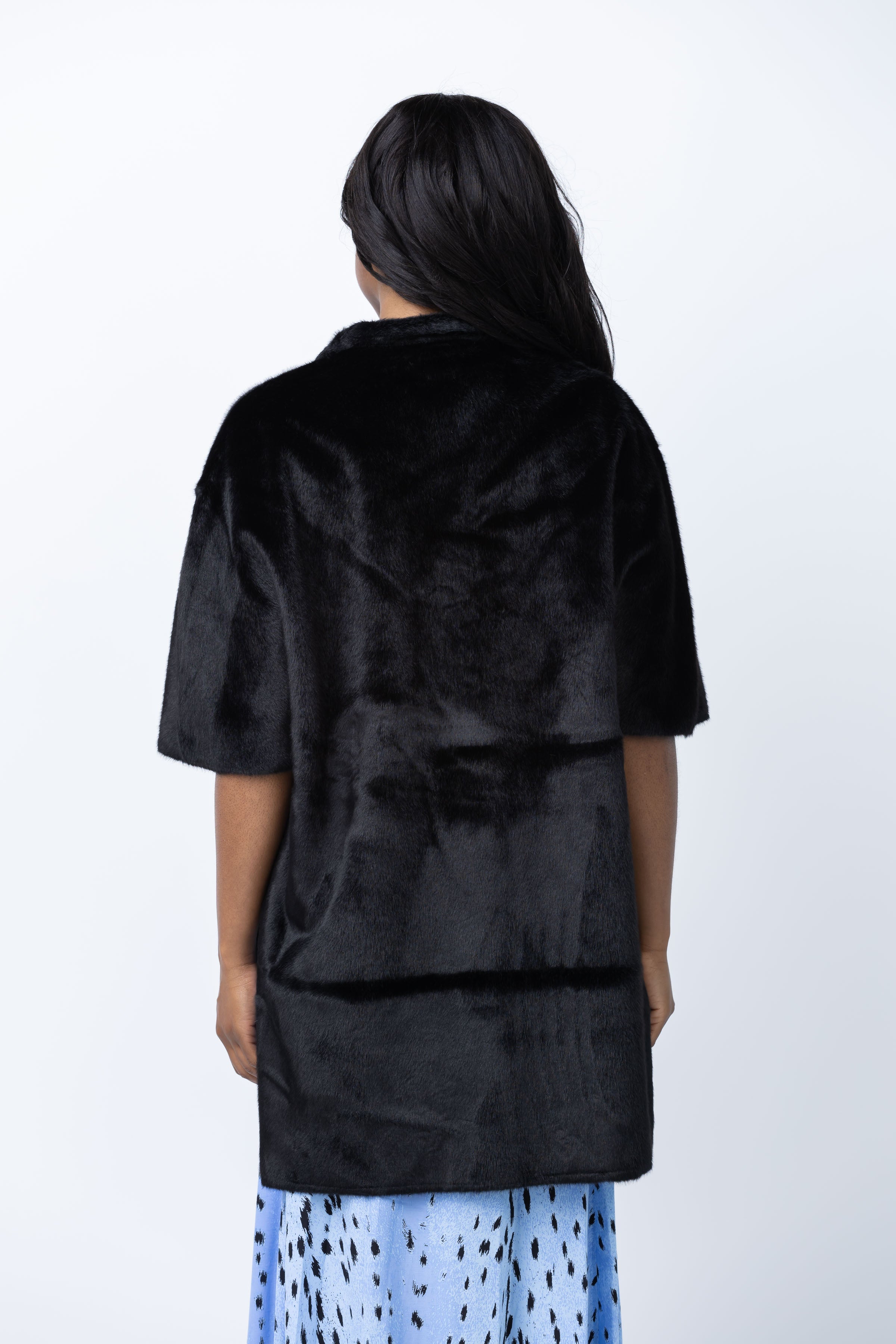 Experience the ultimate luxury and warmth with the Love Token Nia Coat in Black! Made with faux fur and featuring short sleeves, snap closure, and a lightweight design, this coat will keep you stylishly cozy all season long. Say goodbye to bulky coats and hello to effortless elegance.